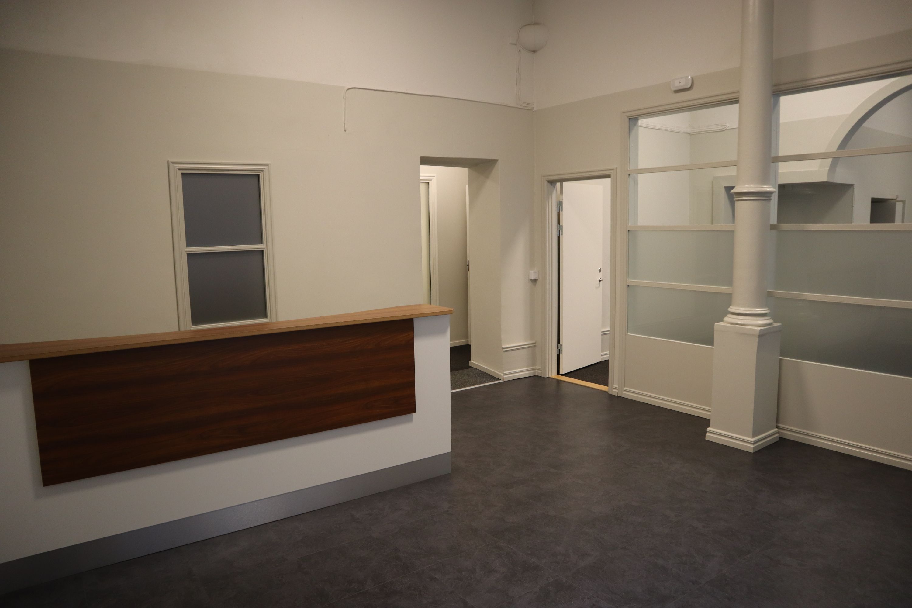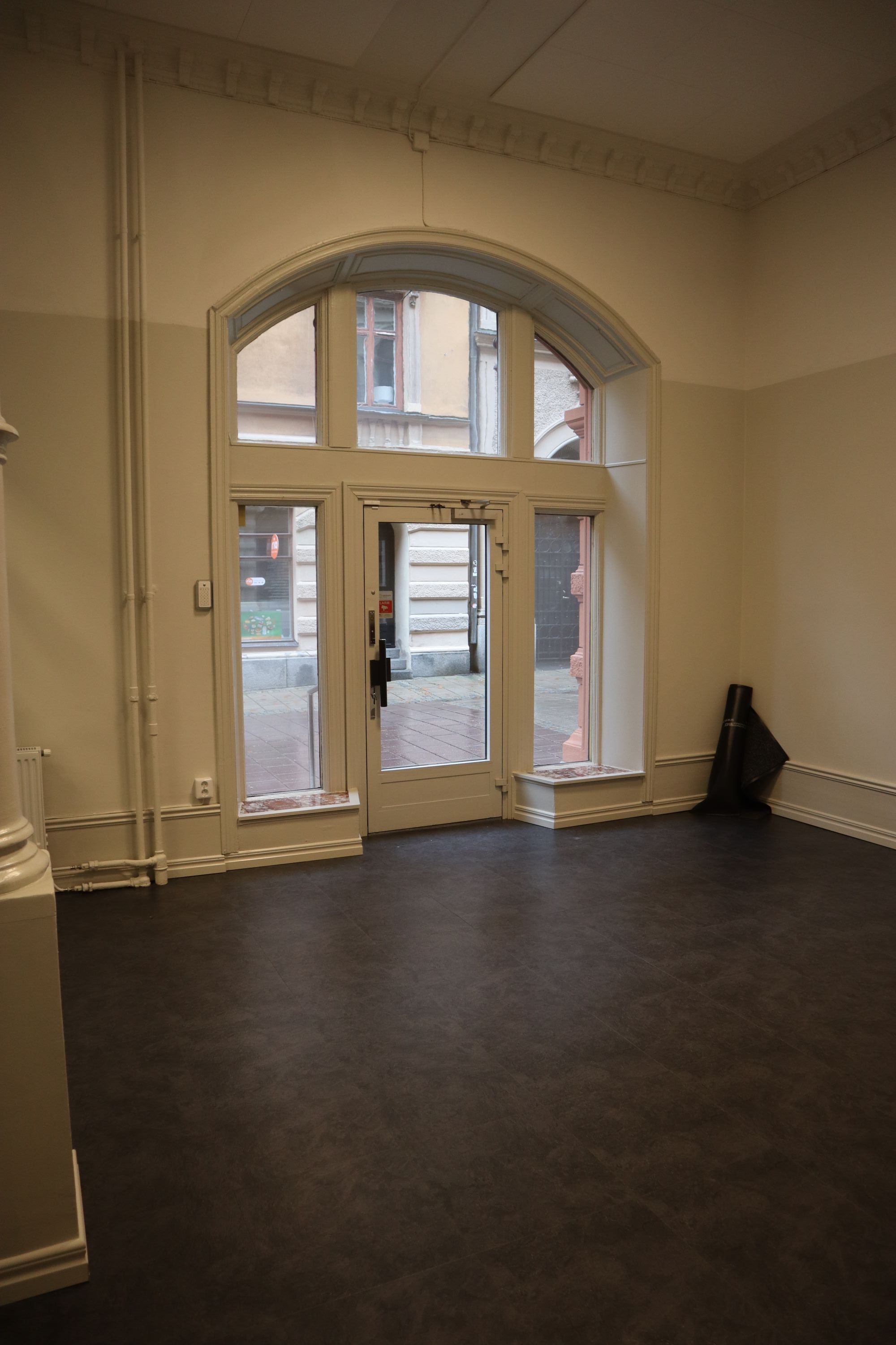 Lokalen som ligger i markplan har stora, vackra fönster som ger ett fantastiskt ljusinsläpp. Den har 96 kvm som fördelas på tre rum, ett personalutrymme samt en inbjudande foajé.