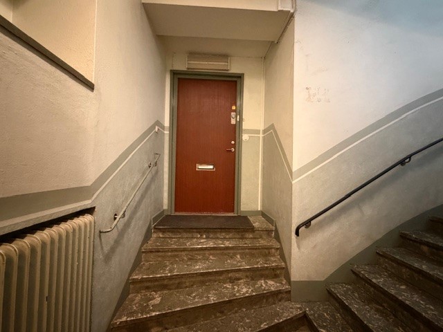 Lokalen ligger en trappa upp i huset, hiss saknas.