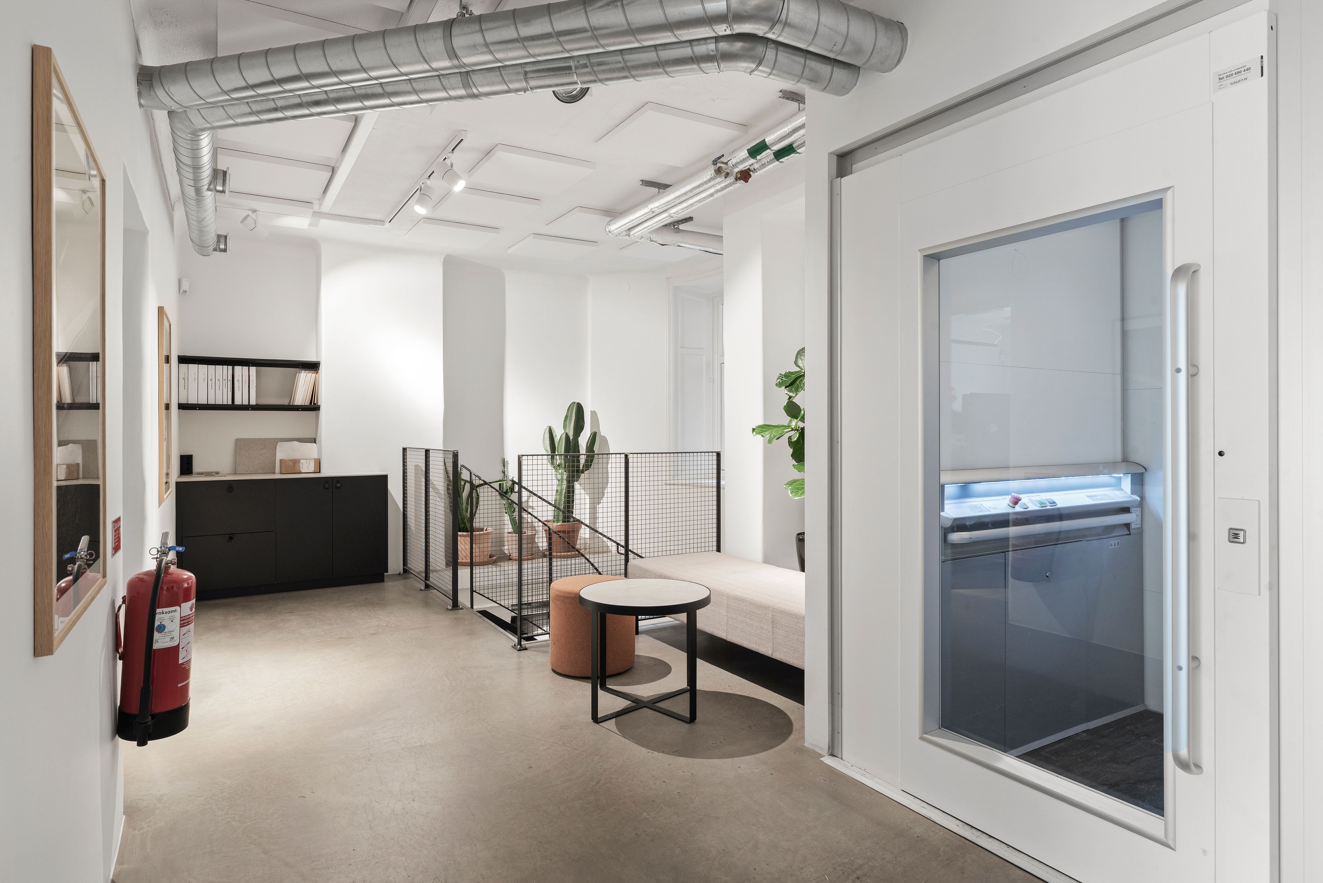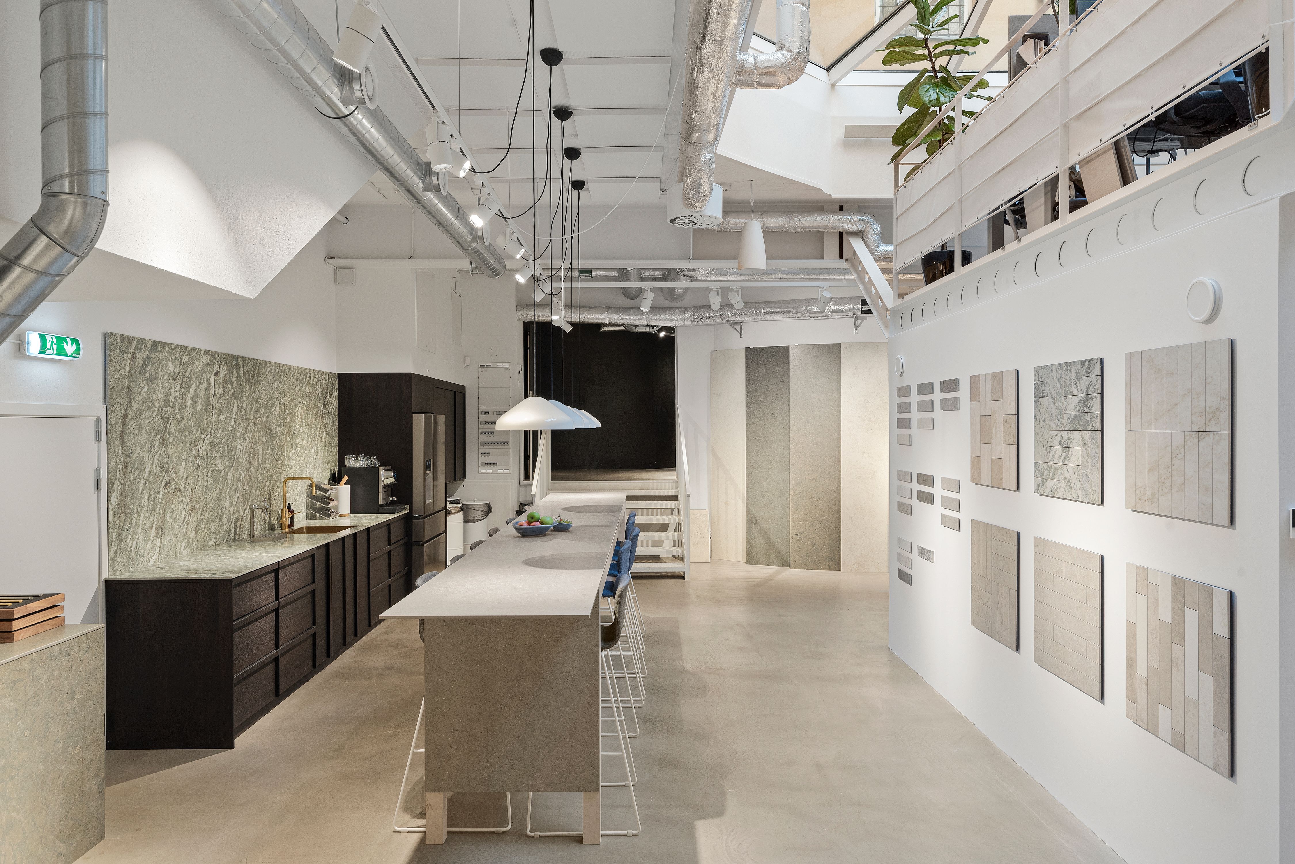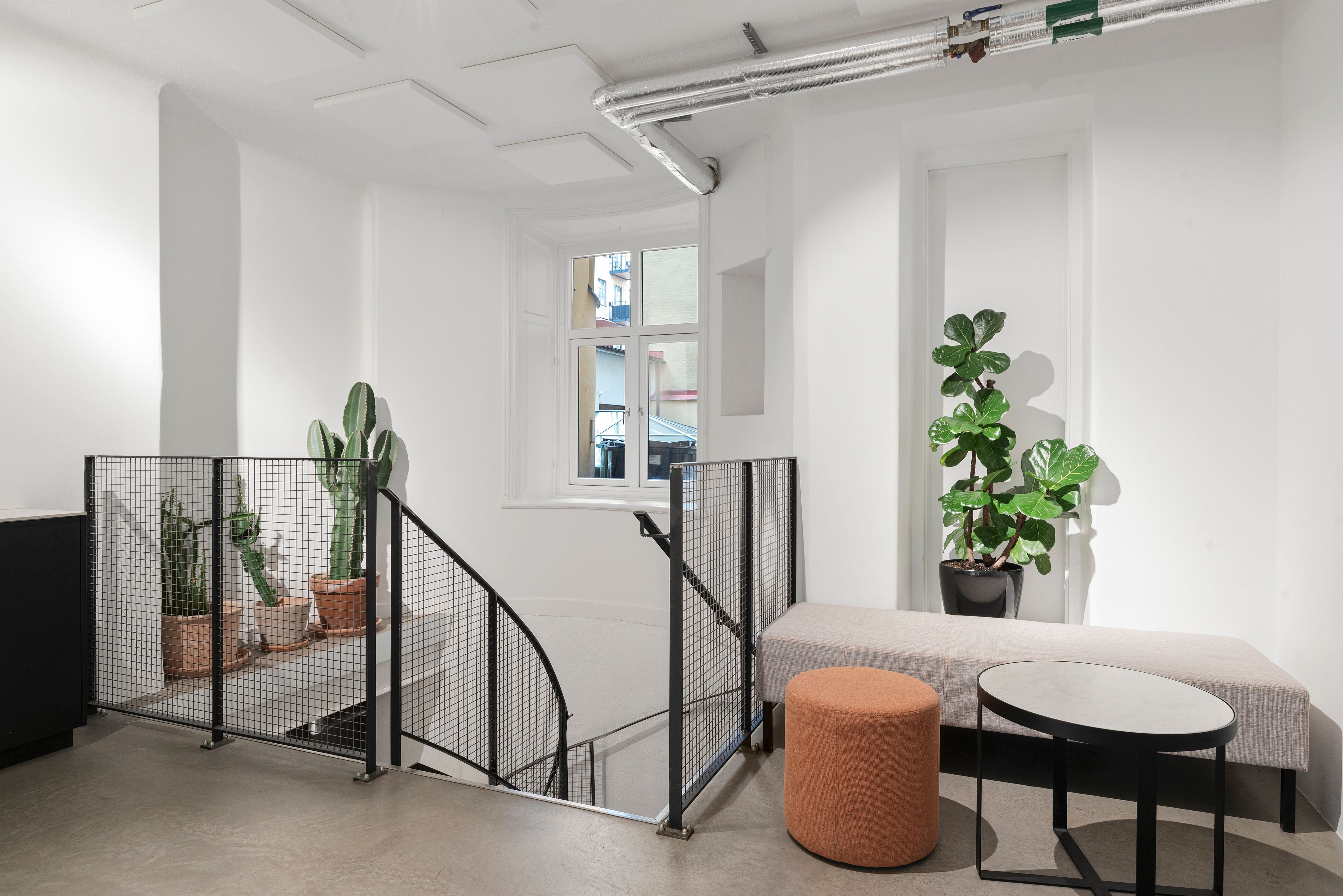 Via lokalens interntrappa nås det nedre planet som kröns av en spektakulär showroomyta. Med en takhöjd på ca 4,5 meter och naturligt ljusinsläpp från takfönster skapas en atmosfär som är perfekt för exponering och kreativa möten. Här finns även praktiska utrymmen för möten, umgänge och förvaring. Här finns även ett platsbygg kök och badrum med hög kvalitet.