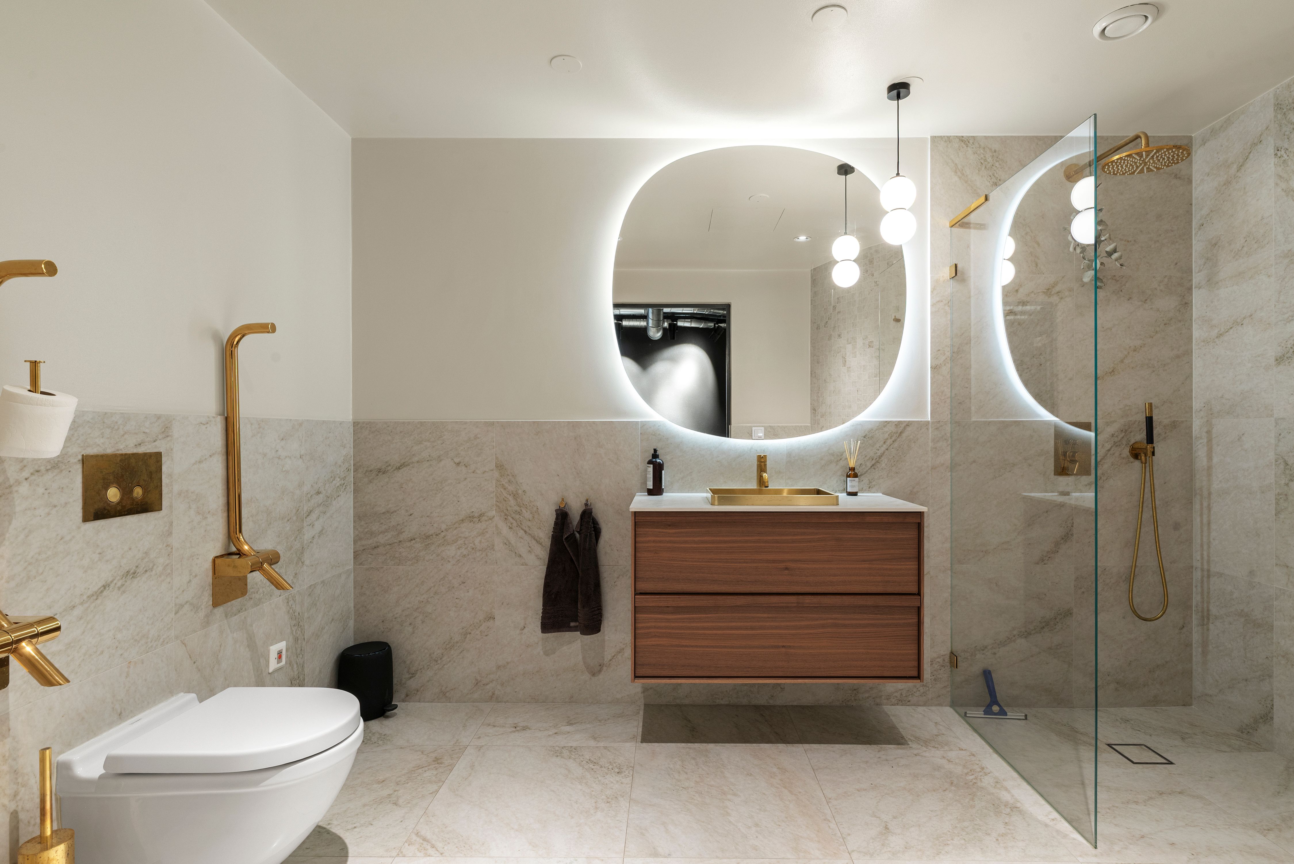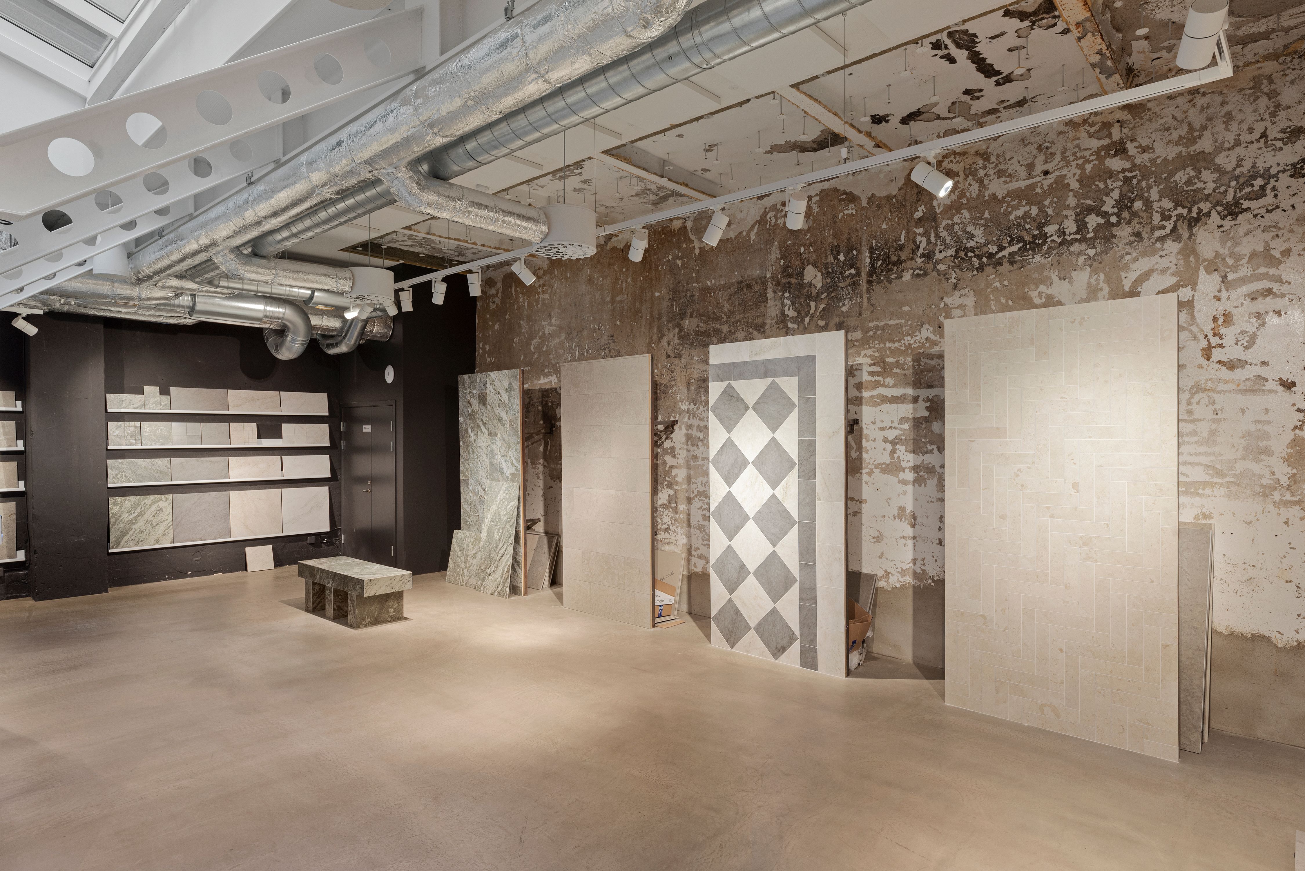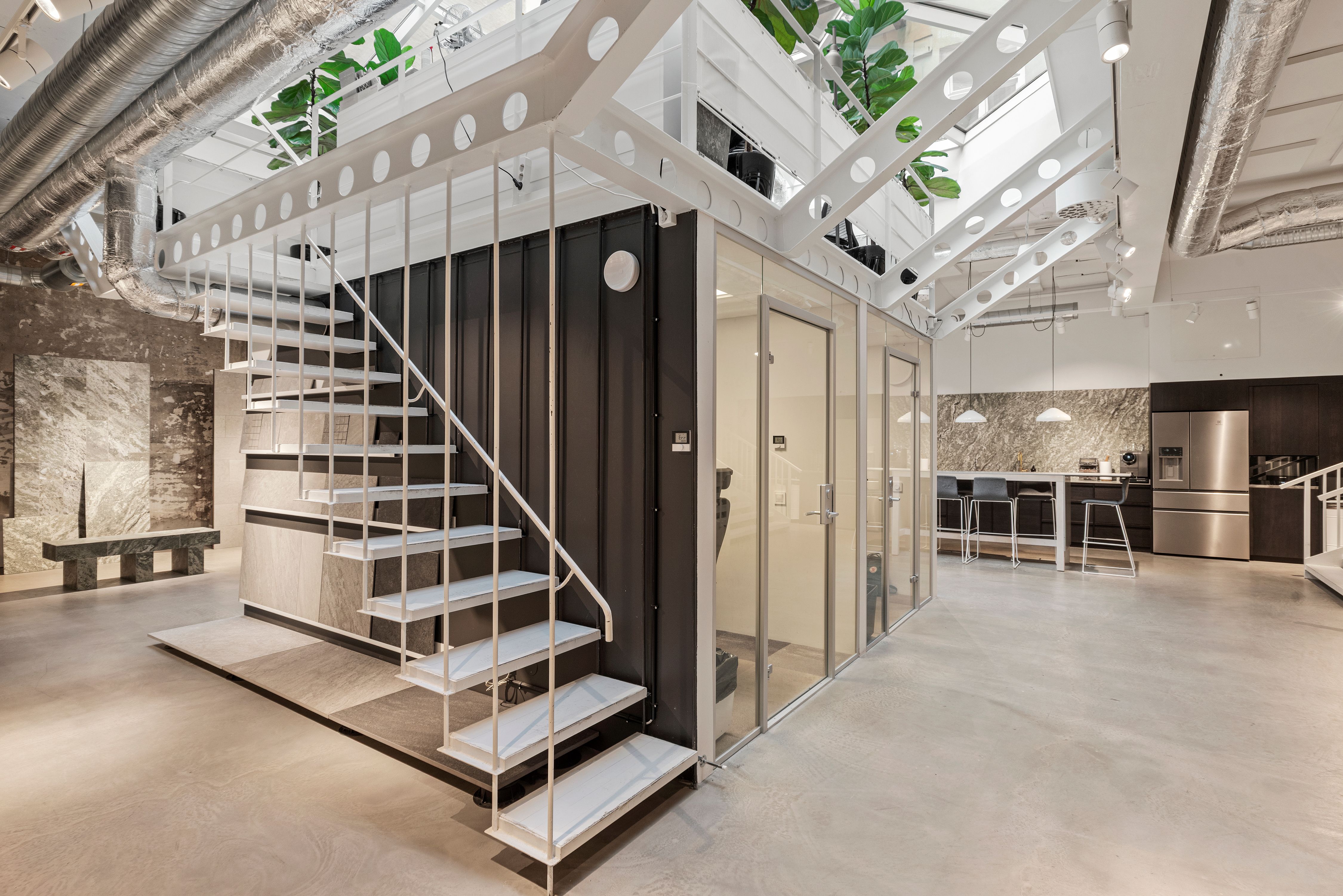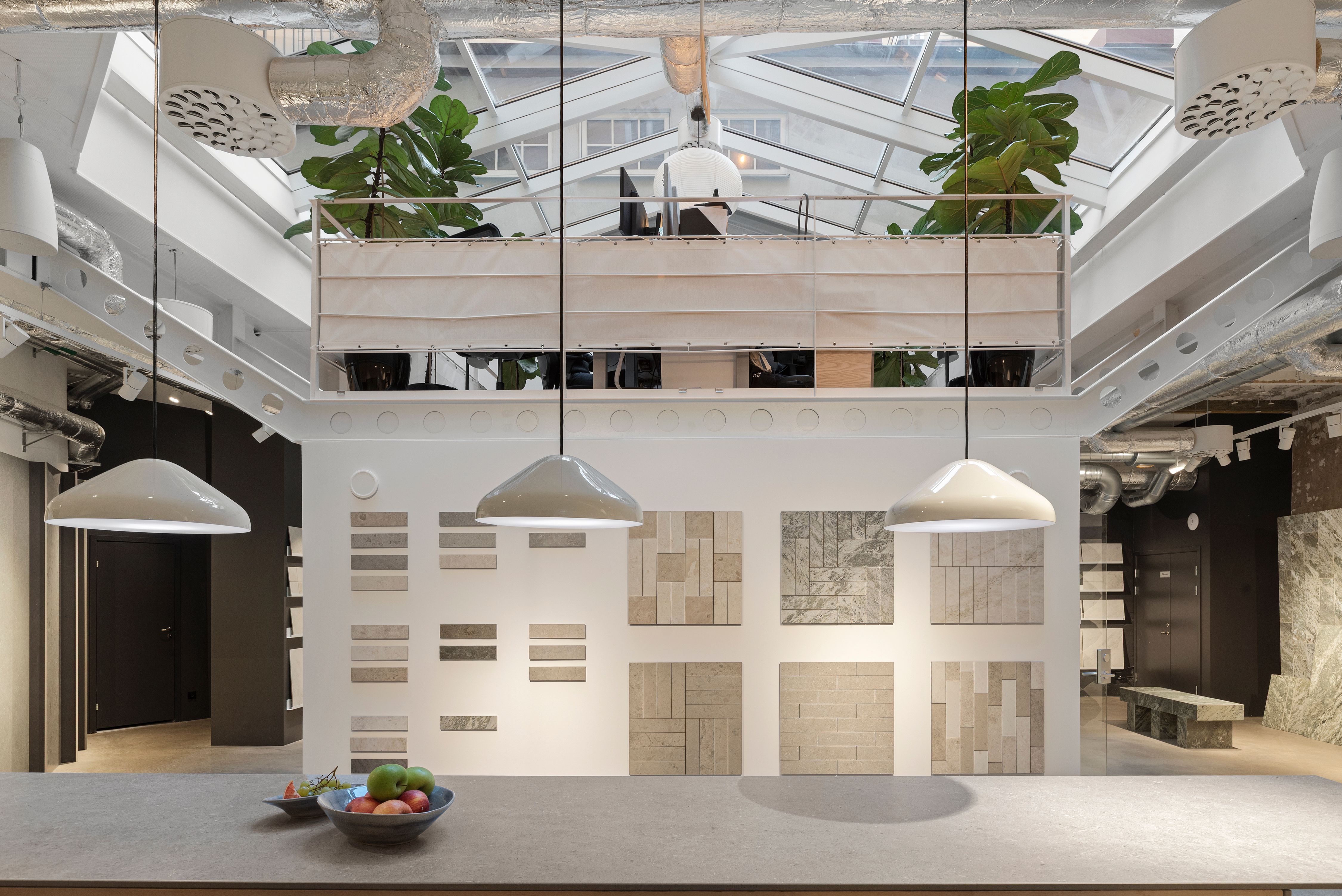 Via lokalens interntrappa nås det nedre planet som kröns av en spektakulär showroomyta. Med en takhöjd på ca 4,5 meter och naturligt ljusinsläpp från takfönster skapas en atmosfär som är perfekt för exponering och kreativa möten. Här finns även praktiska utrymmen för möten, umgänge och förvaring. Här finns även ett platsbygg kök och badrum med hög kvalitet.