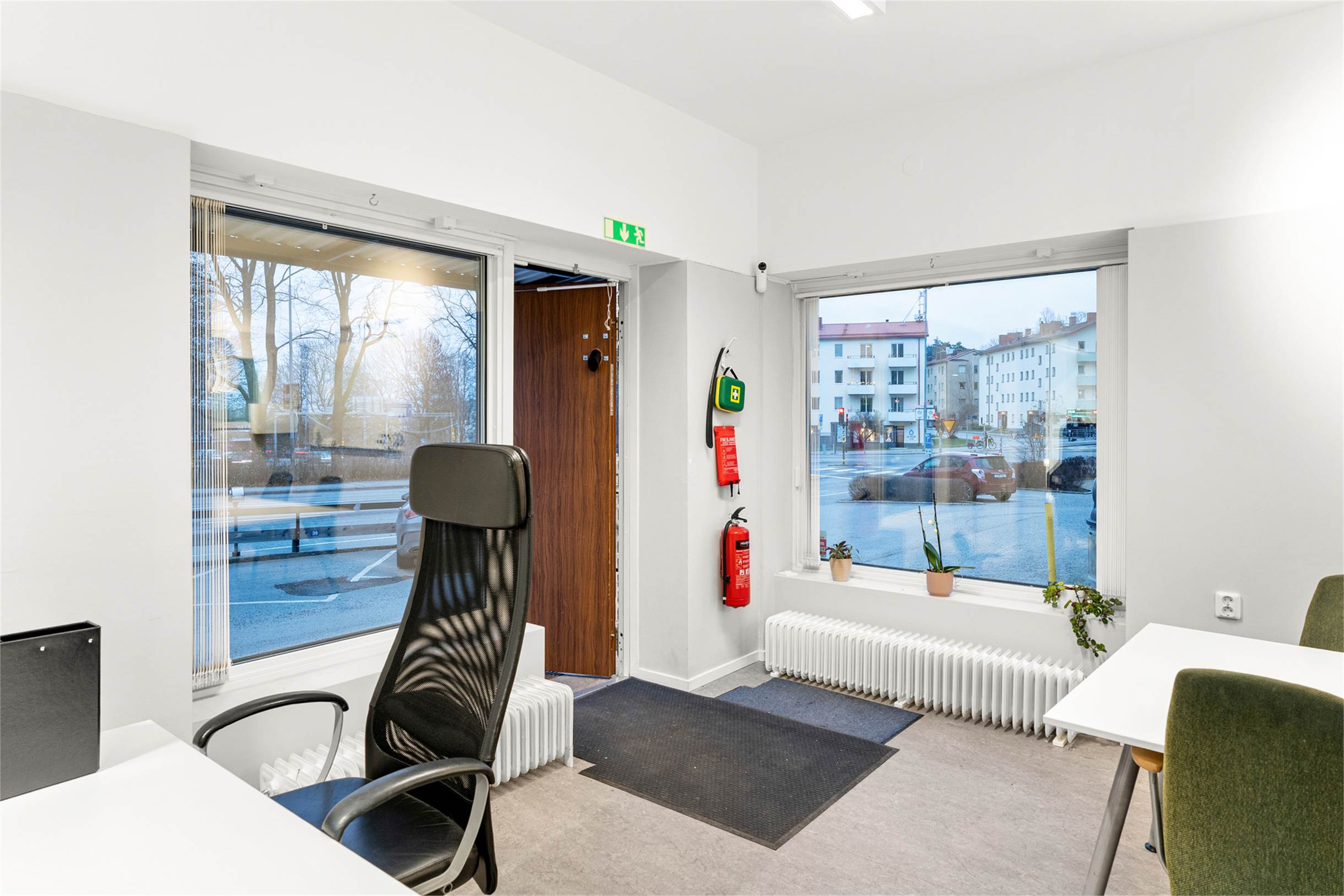 De stora fönsterpartierna i två väderstreck ger lokalen ett fantastiskt ljusflöde och optimal exponering mot gatan. Interiört erbjuder lokalen en flexibel och trivsam planlösning med generösa arbetsytor, mötesrum, stort kök/pentry, wc samt två entréer som underlättar logistik och kundflöden. Lokalen har en fräsch och modern känsla med vitmålade väggar, bra belysning och öppna ytor som passar många typer av verksamheter.