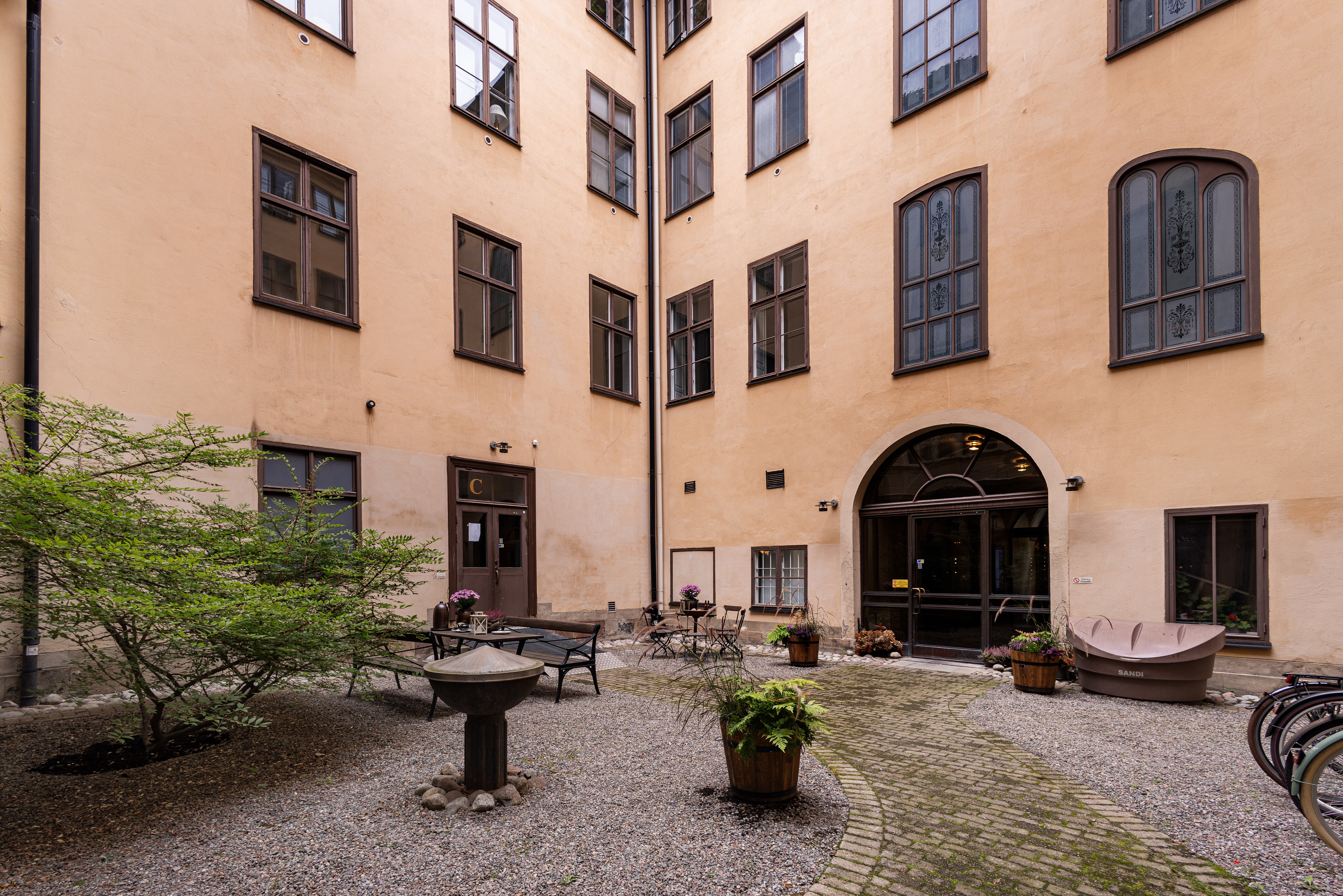 Materialvalen är genomtänkta och högkvalitativa, vilket ger lokalen en modern och representativ känsla. Den charmiga innergården kan nyttjas för events, mingel eller lunchpauser, och är en extra tillgång som höjer lokalens attraktionskraft ytterligare.