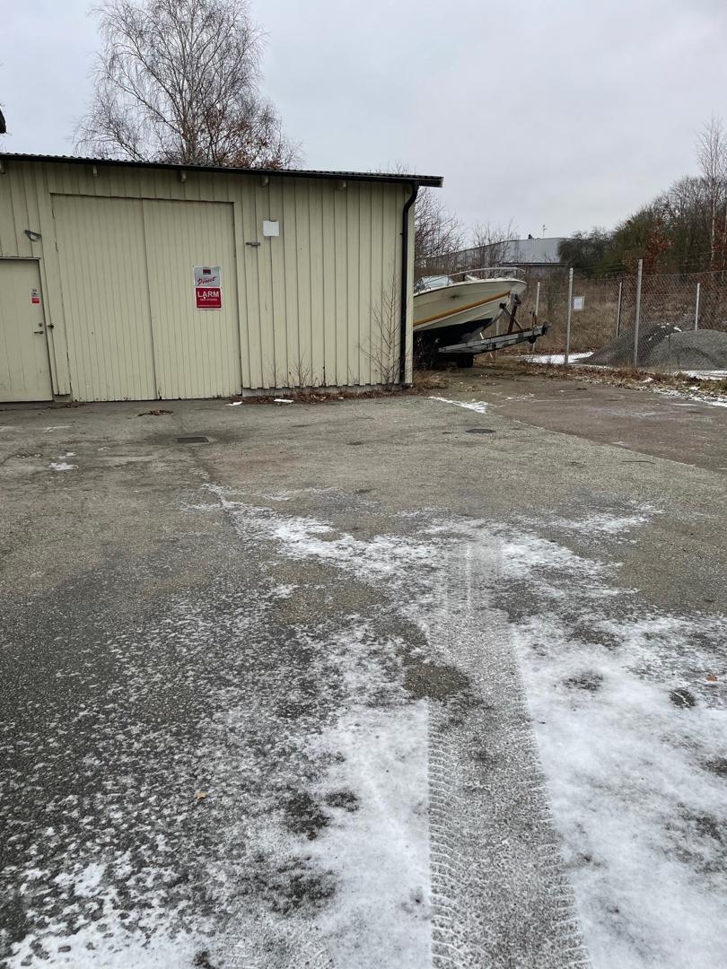Till lokalen hör generösa utvändiga ytor framför och vid sidan av byggnaden, vilket skapar goda möjligheter för uppställning, lastning och logistik. Intill lagerdelen finns dessutom ett mindre förråd/verkstadsutrymme.