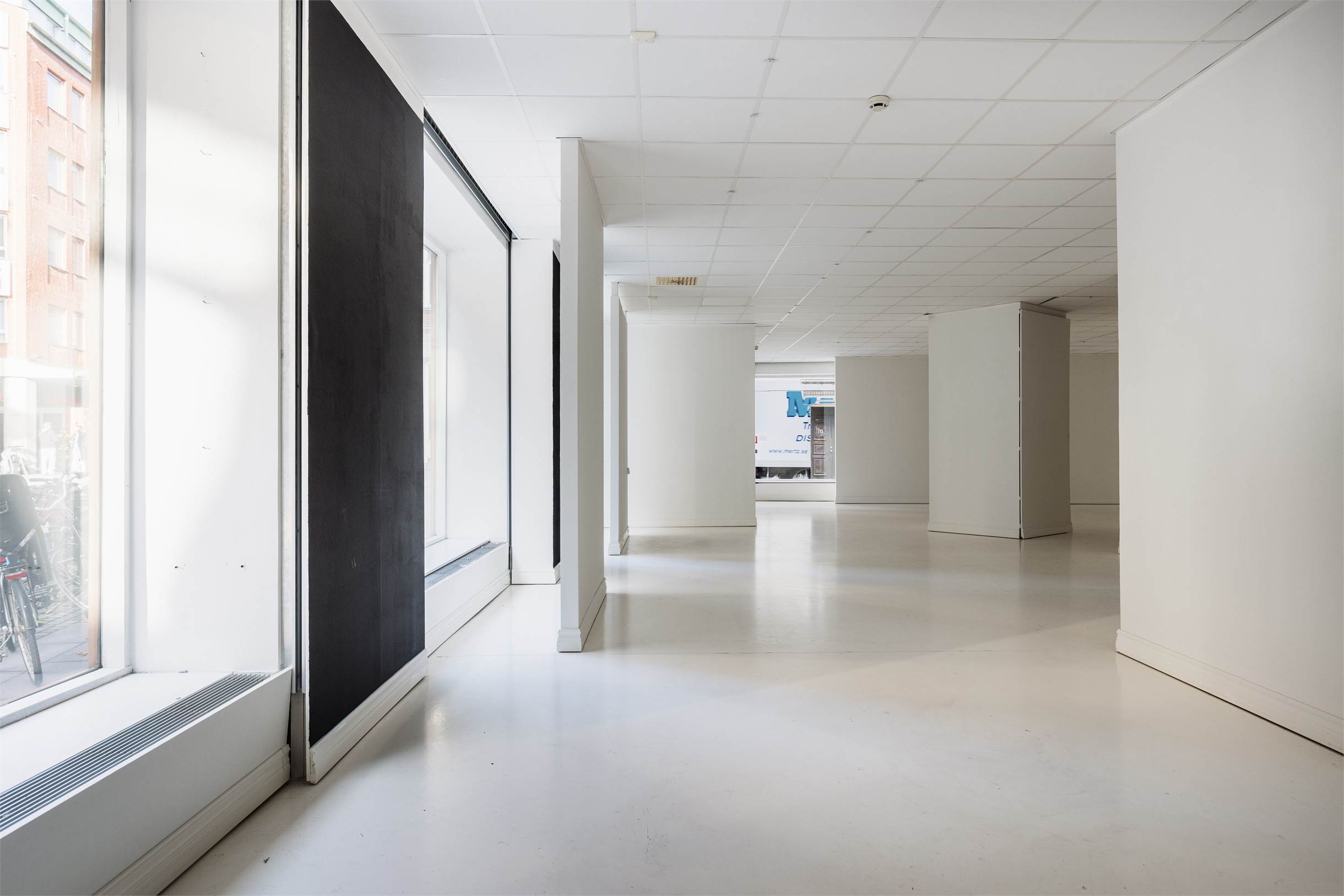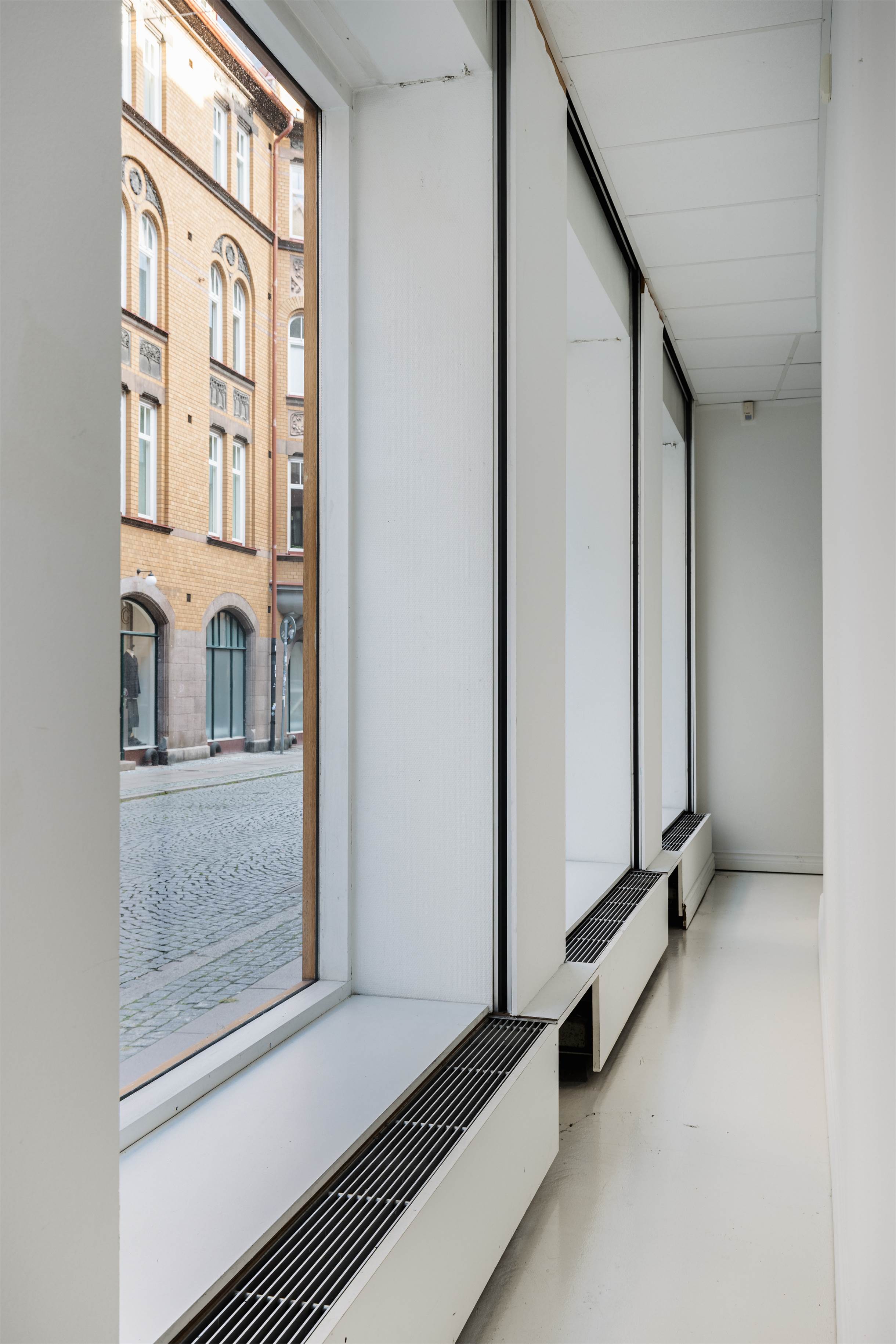Per Wejersgatan 12 omfattar 212 kvm lokalyta med tidigare användning som galleri, vilket ger platsen en ren och stilmässigt neutral grund att bygga vidare på. De stora fönsterpartierna löper längs två fasader tack vare hörnläget och ger ett tydligt skyltläge ut mot gatan samt ett jämnt dagsljusinsläpp som lyfter rummet.