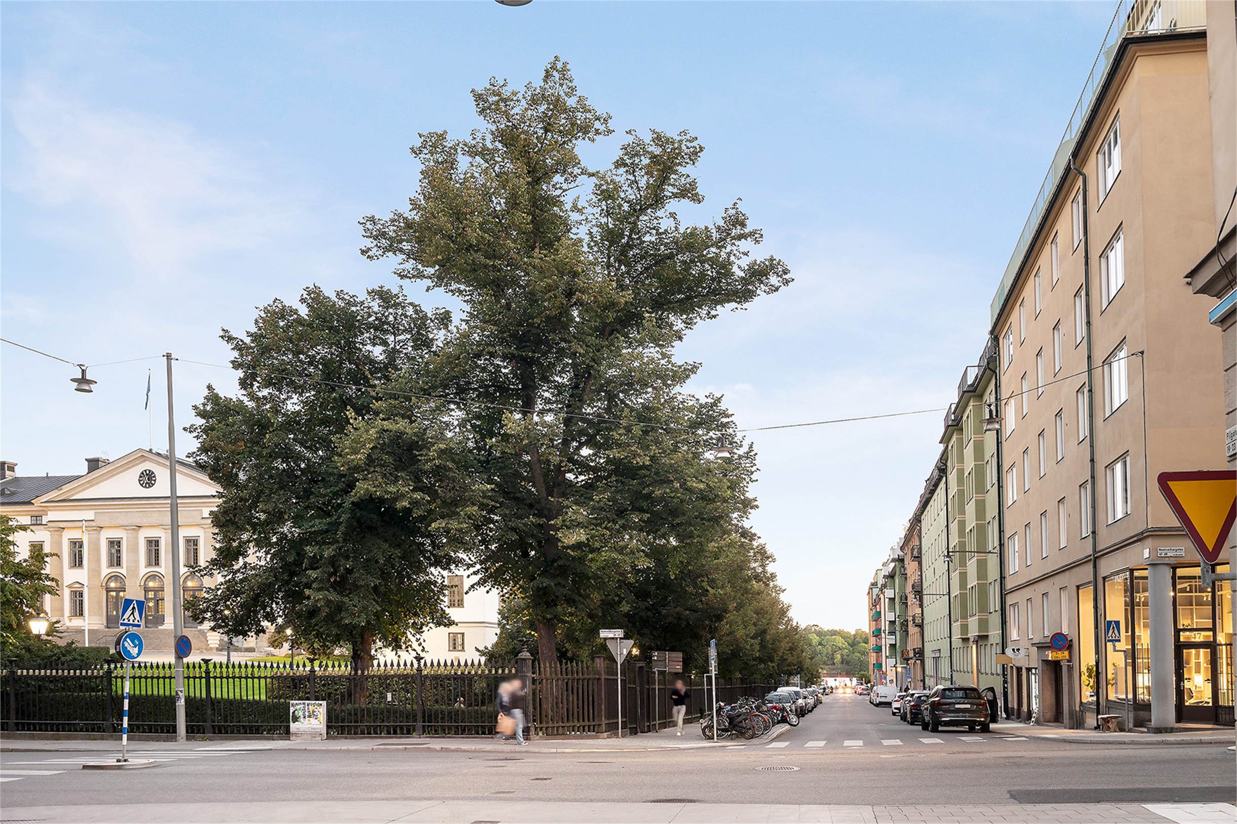 Längre ned på gatan ligger Norr Mälarstrand med många restauranger. Uppför gatan ligger Polishusparken och Kronobergsparken.