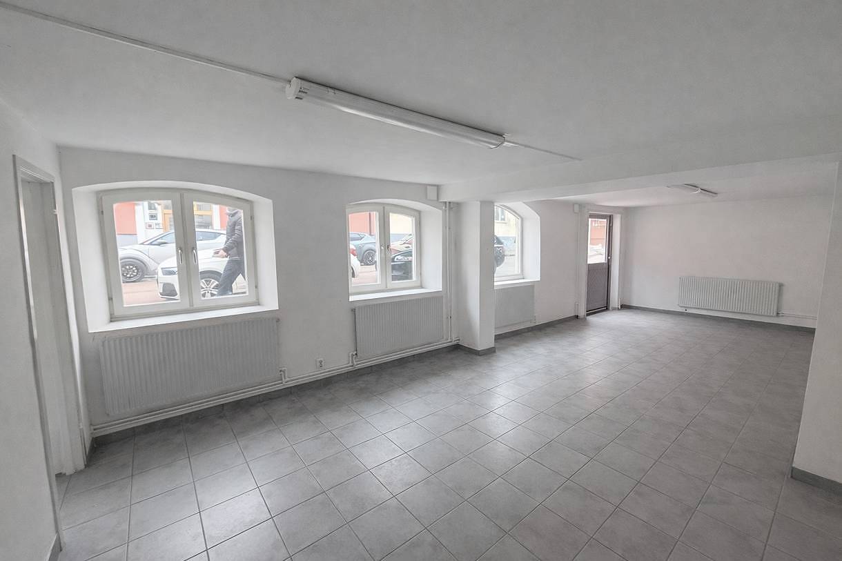 Lokalen har stora fönster mot gatan, vilka fungerar bra som skyltfönster.