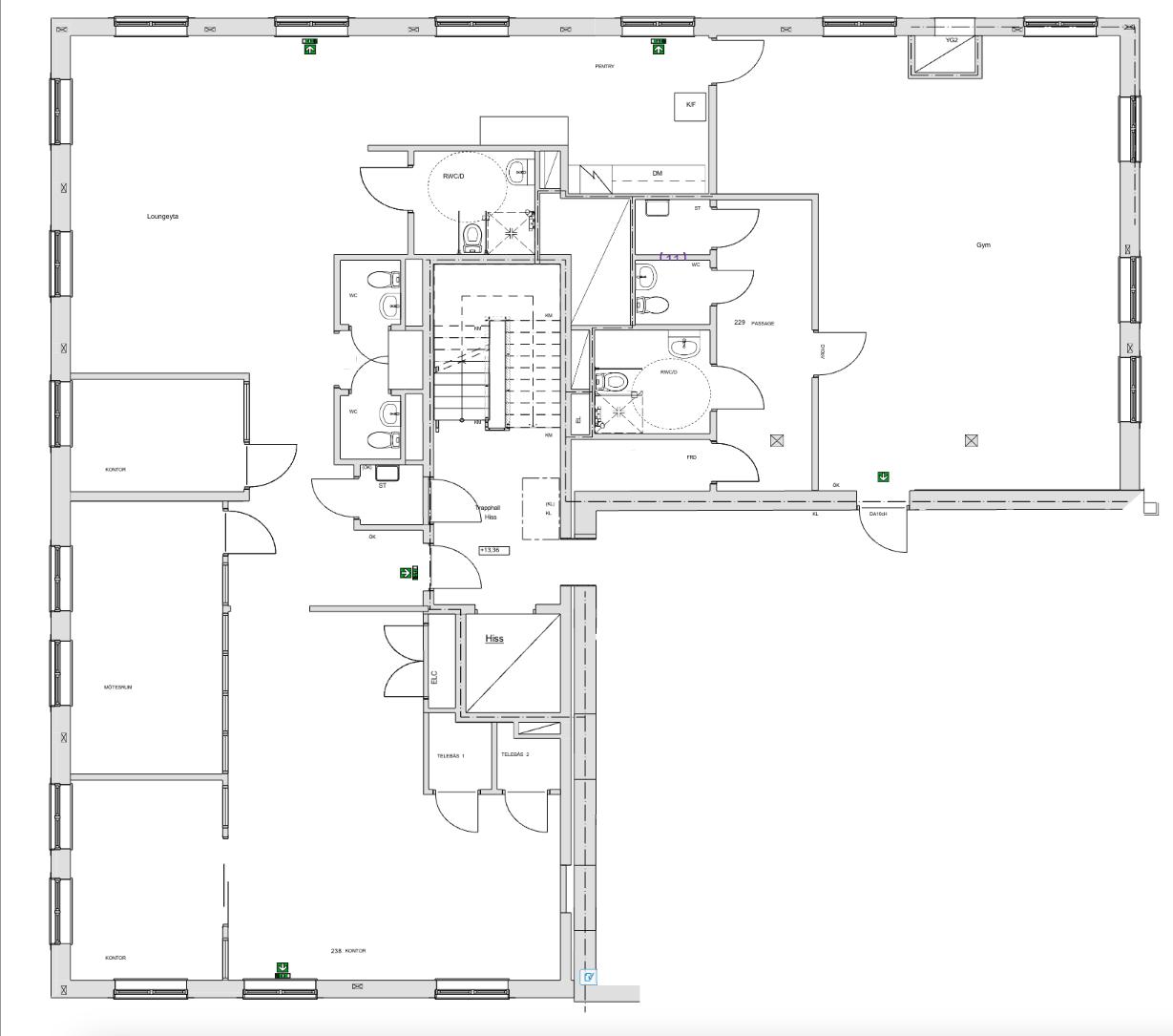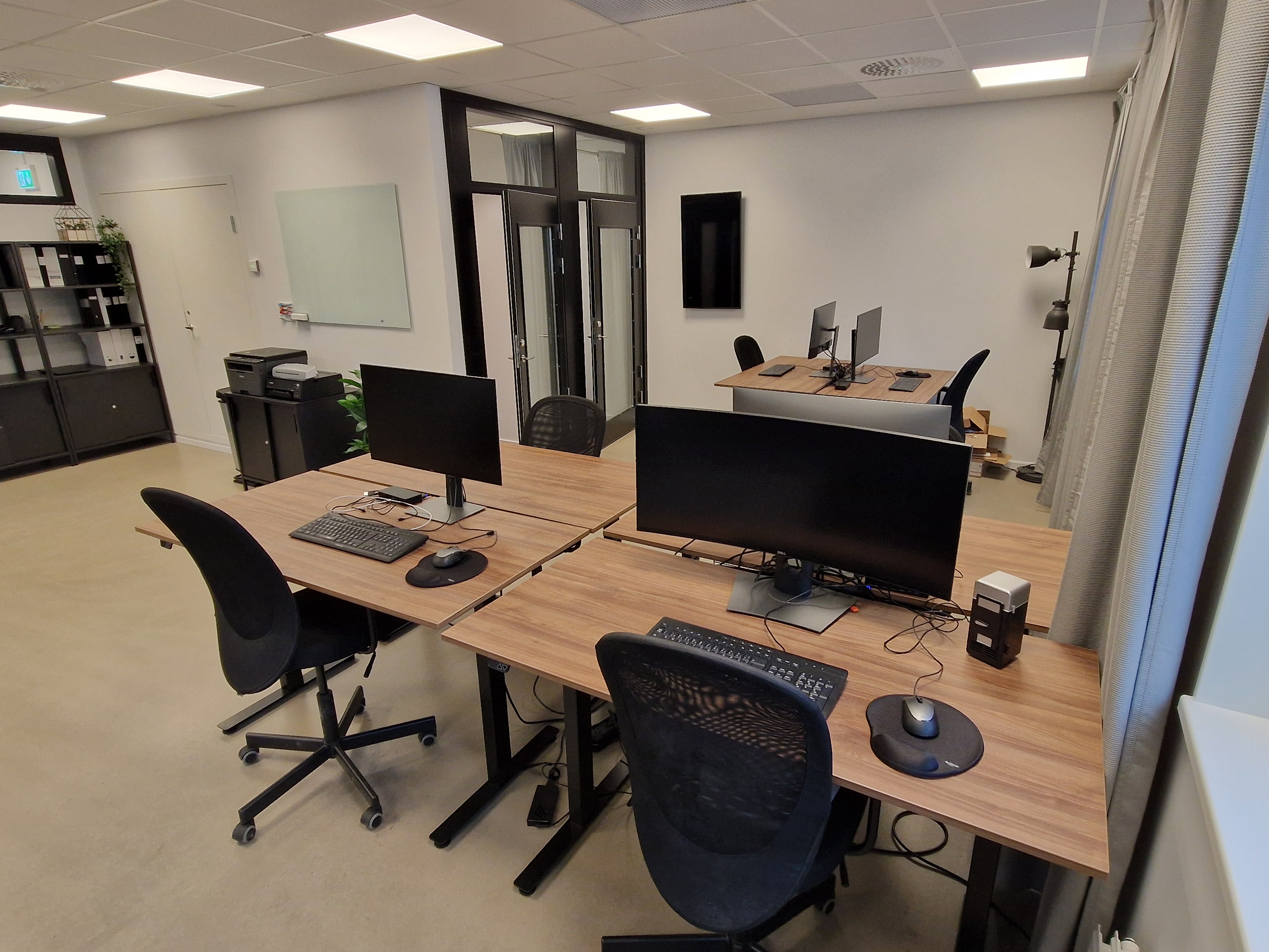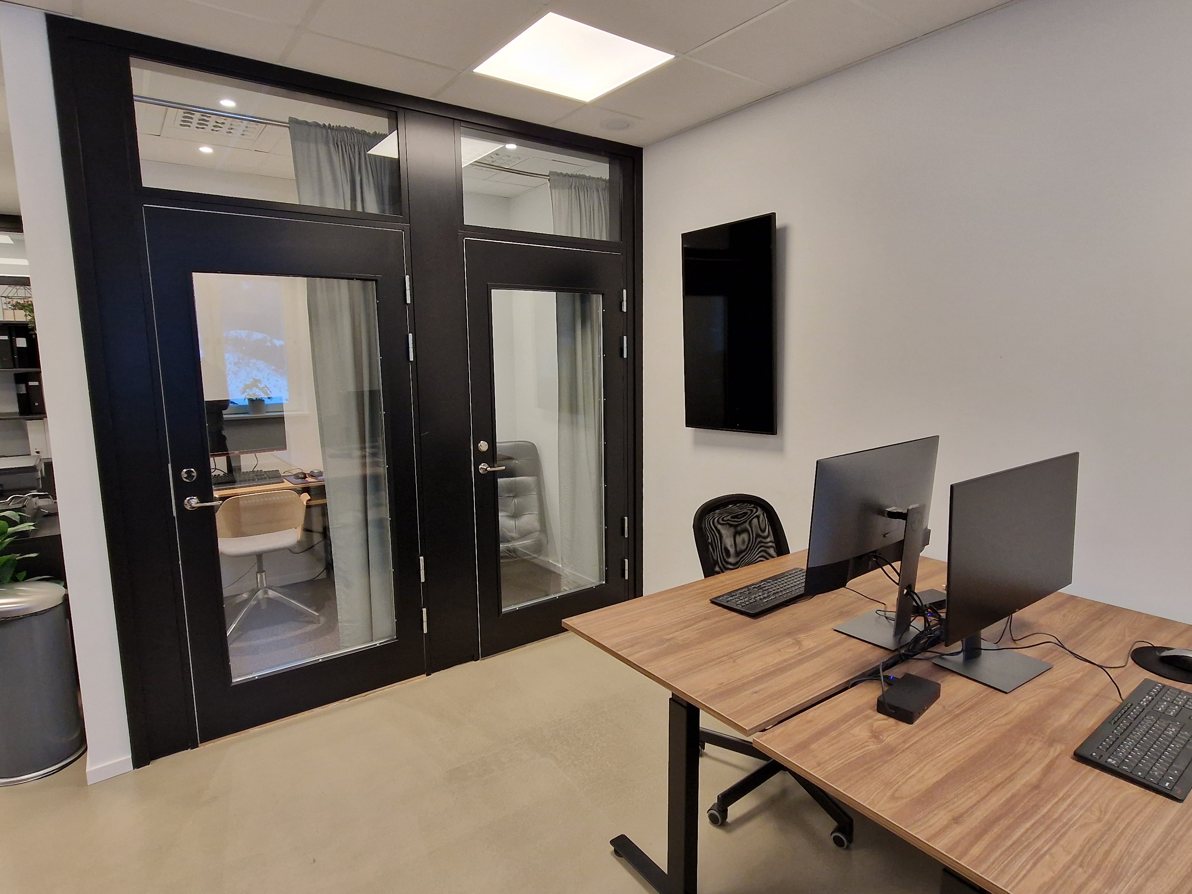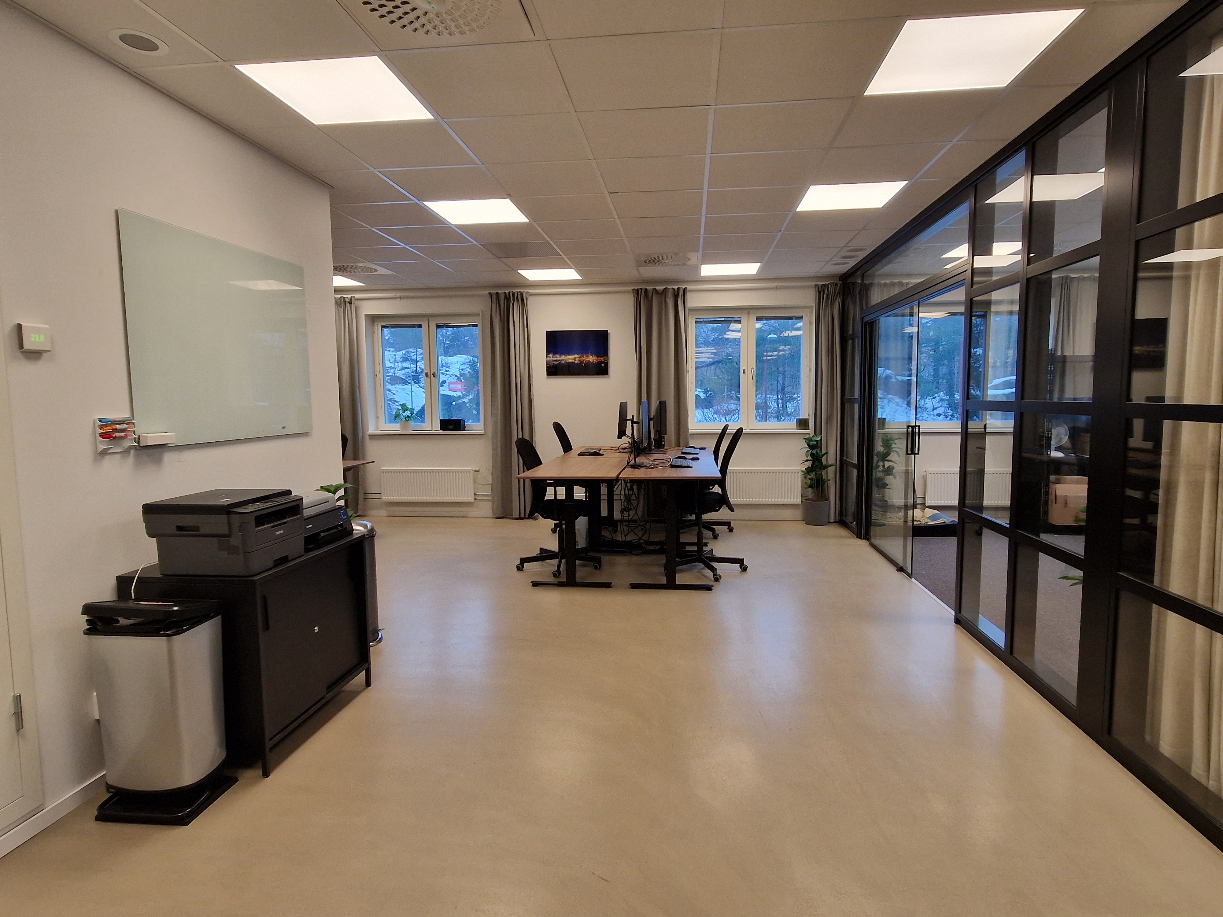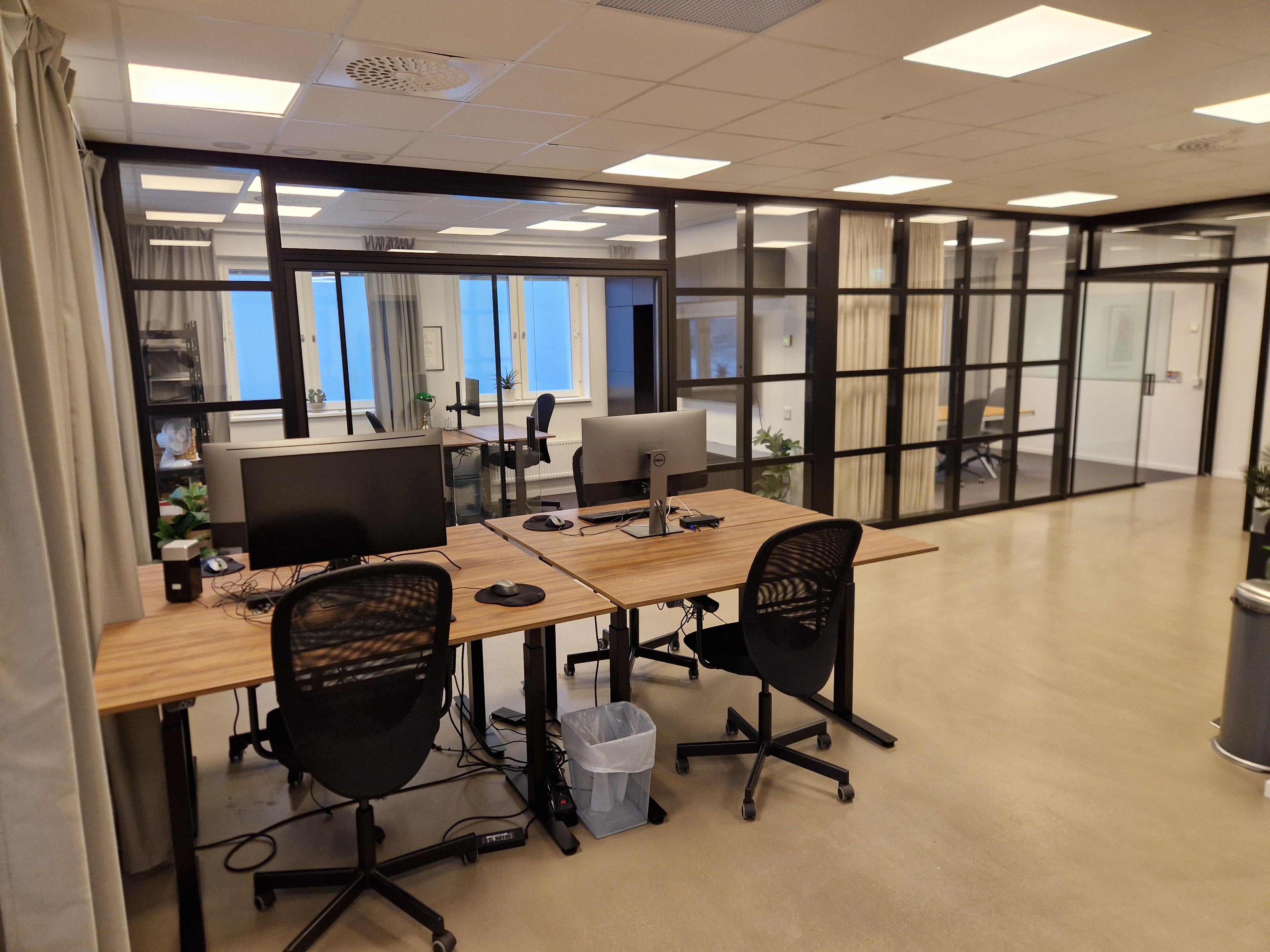 - Möblerat för 10 idag (inkl. skärmar och IT) – kan enkelt skalas till ca 20 arbetsplatser, (~40 platser om gymmet görs om till kontor).