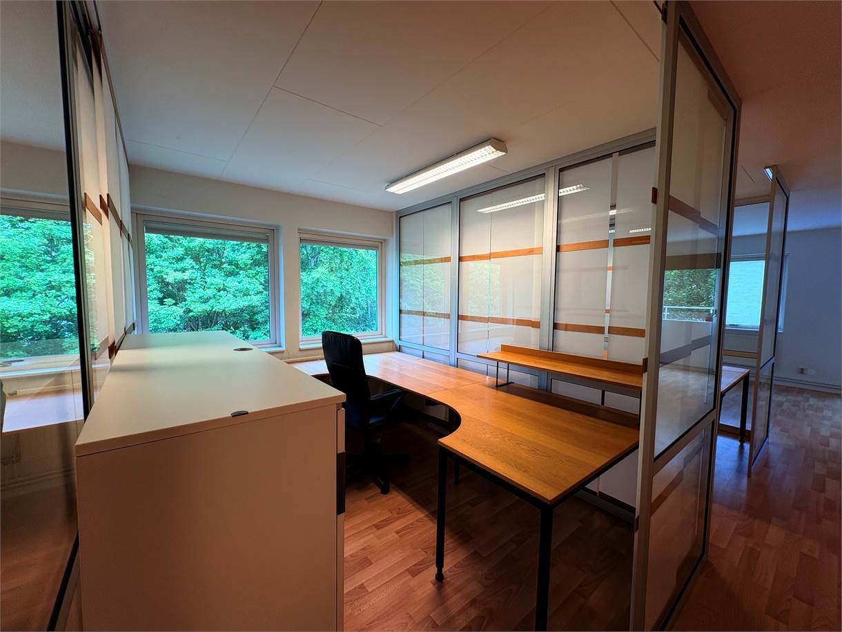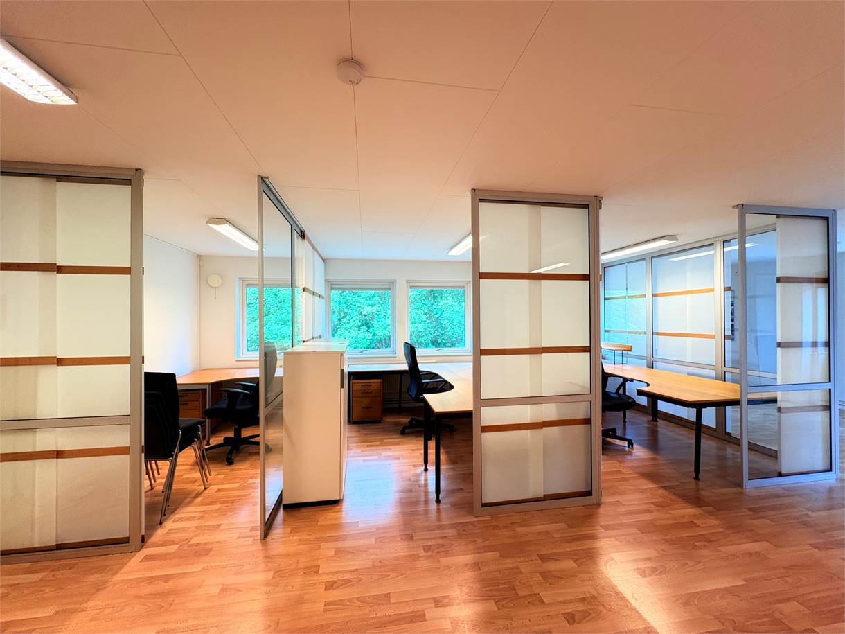 Tre glasade kontors- eller mötesrum med generöst ljusinsläpp