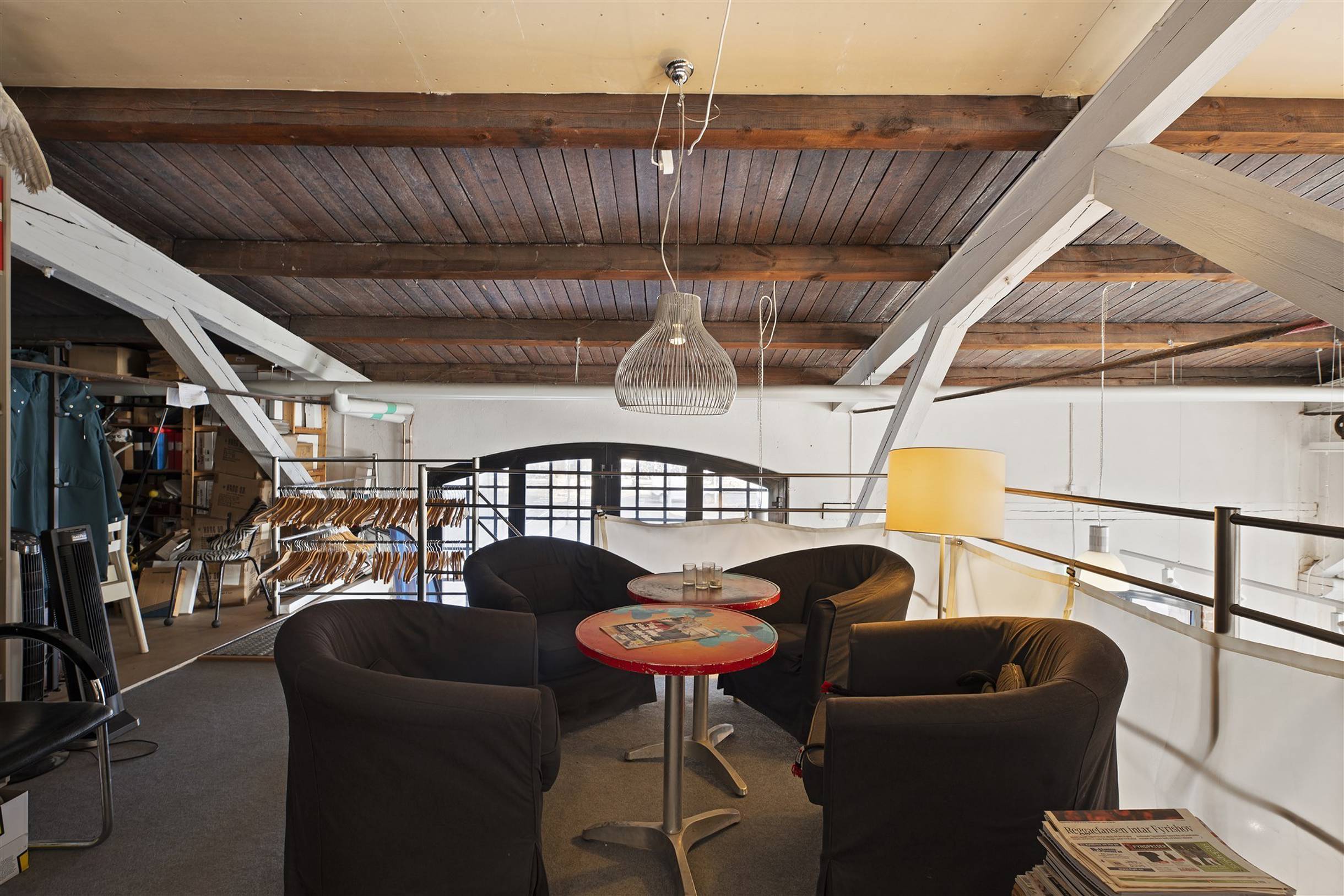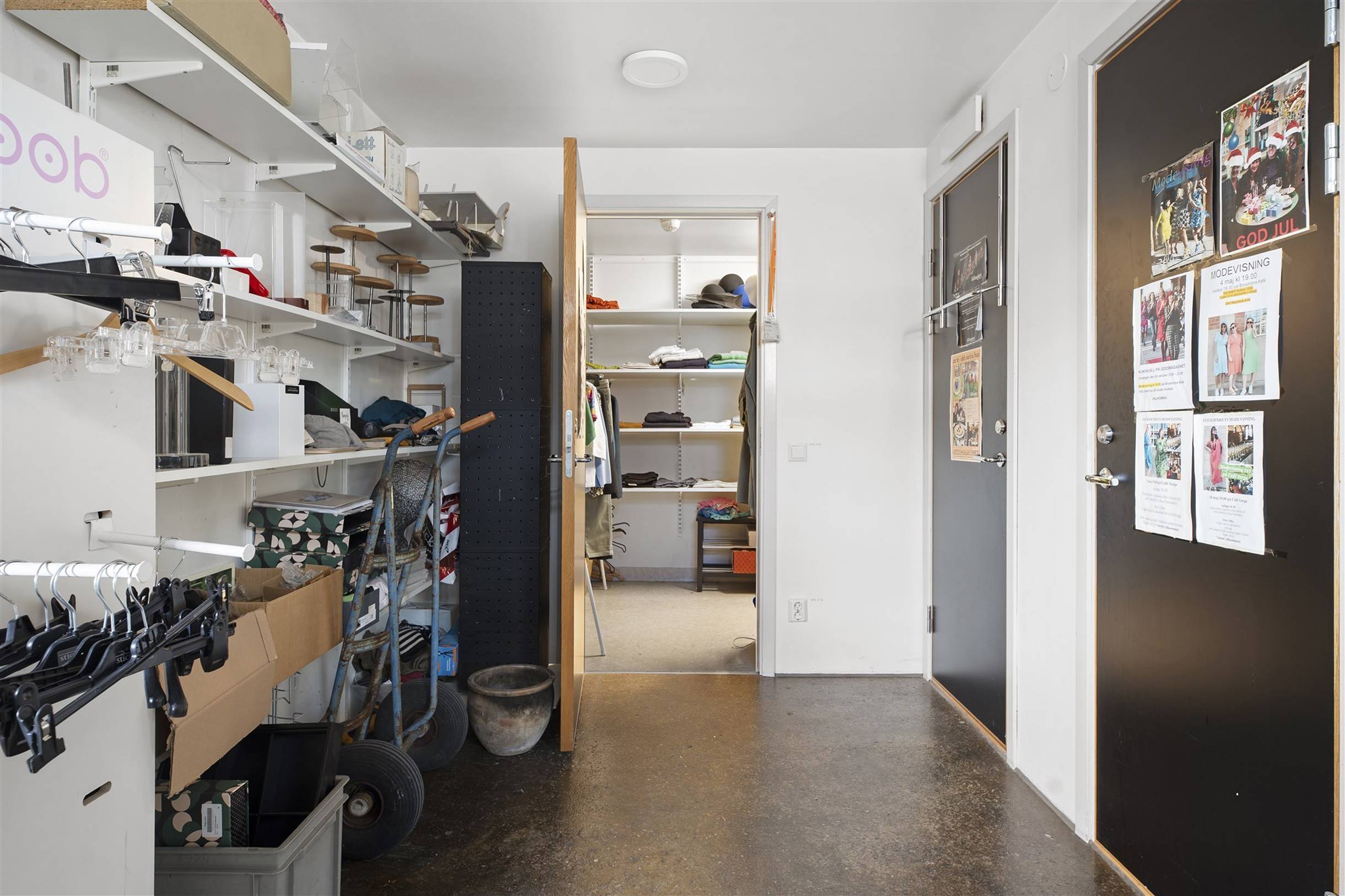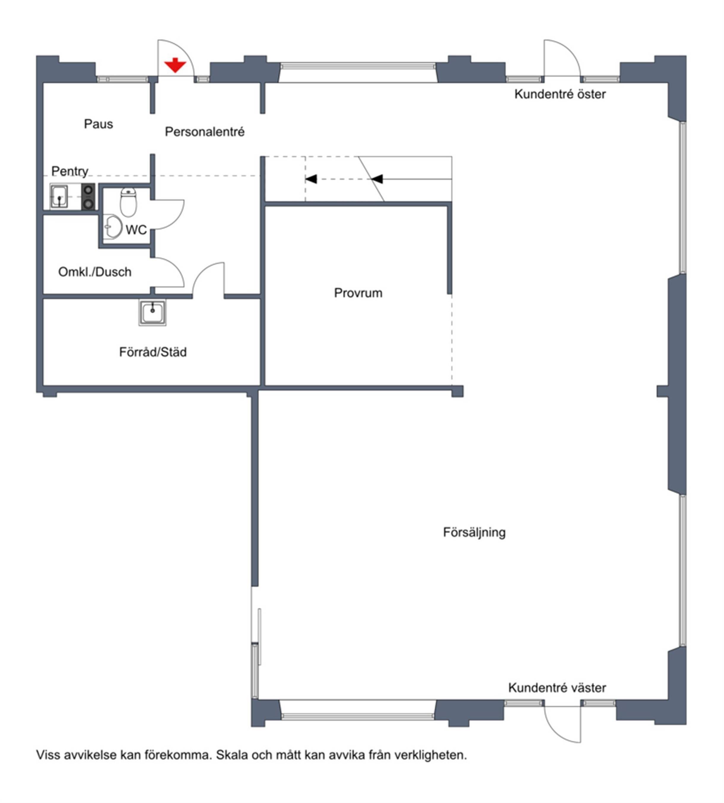 I lokalen finns även ett provrum med tre provhytter, personalrum med pentry och personalentré, omklädningsrum med dusch, separat WC samt ett förråd. Därutöver finns ett entresolplan som idag nyttjas som kontor och lager.