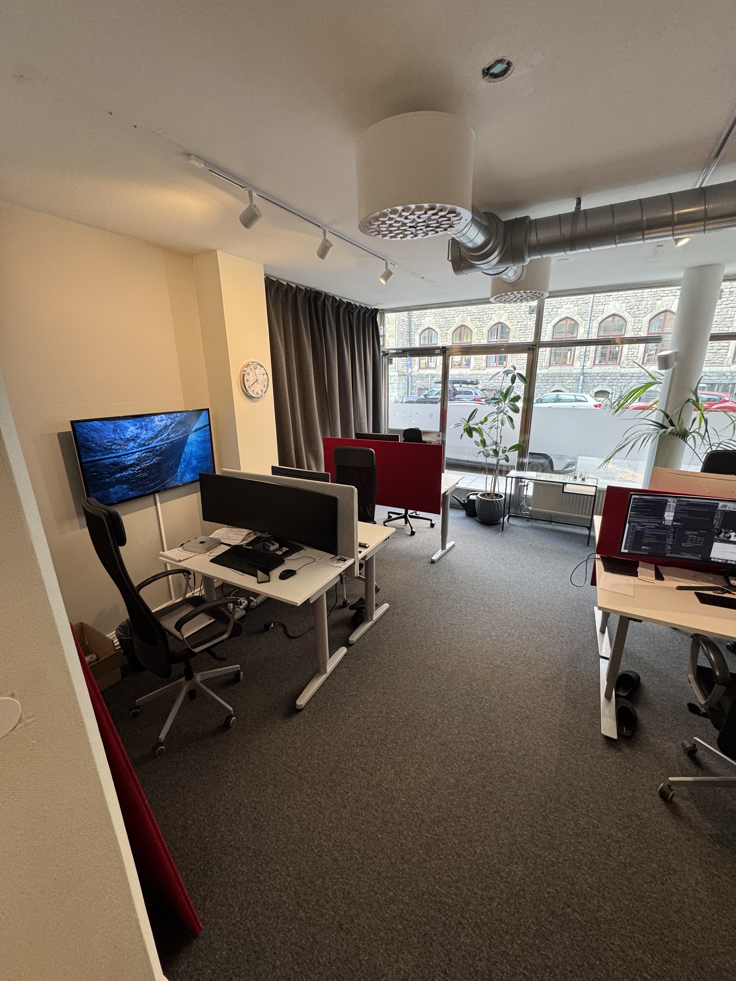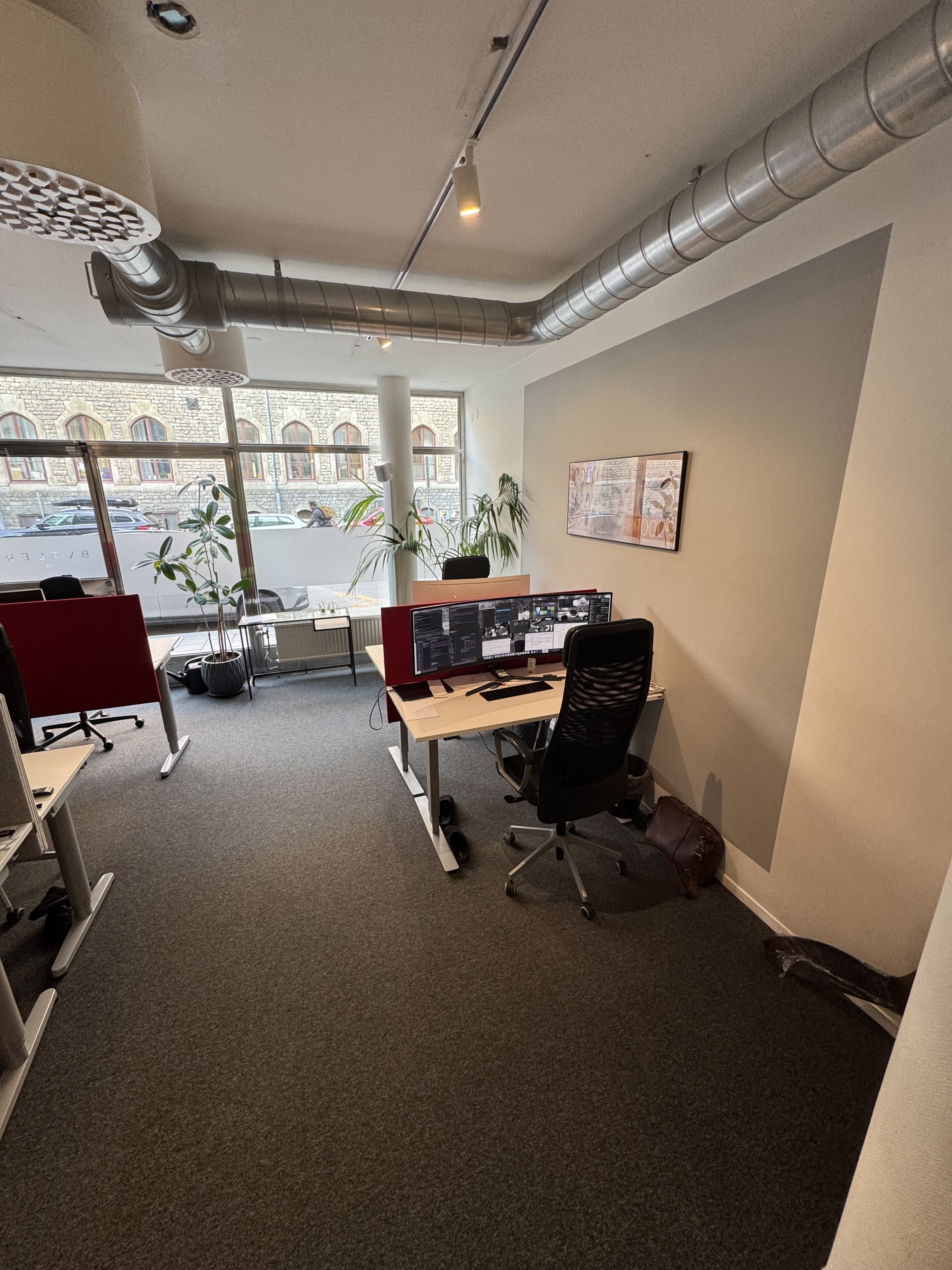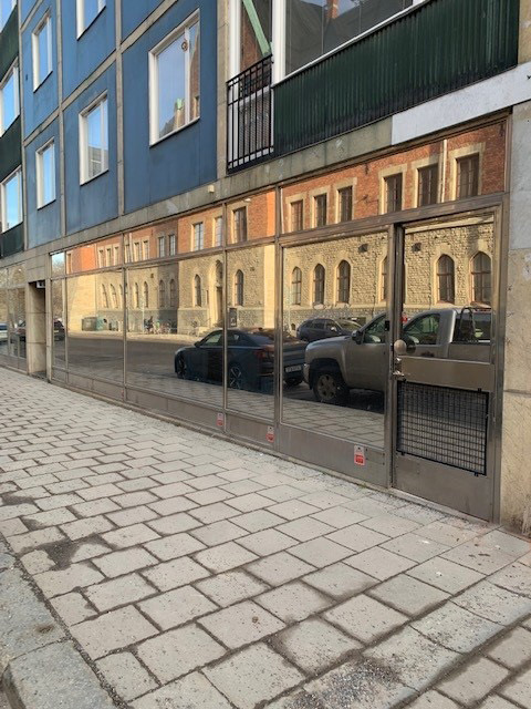 Lokal vätter mot gatan. Stora fönster.