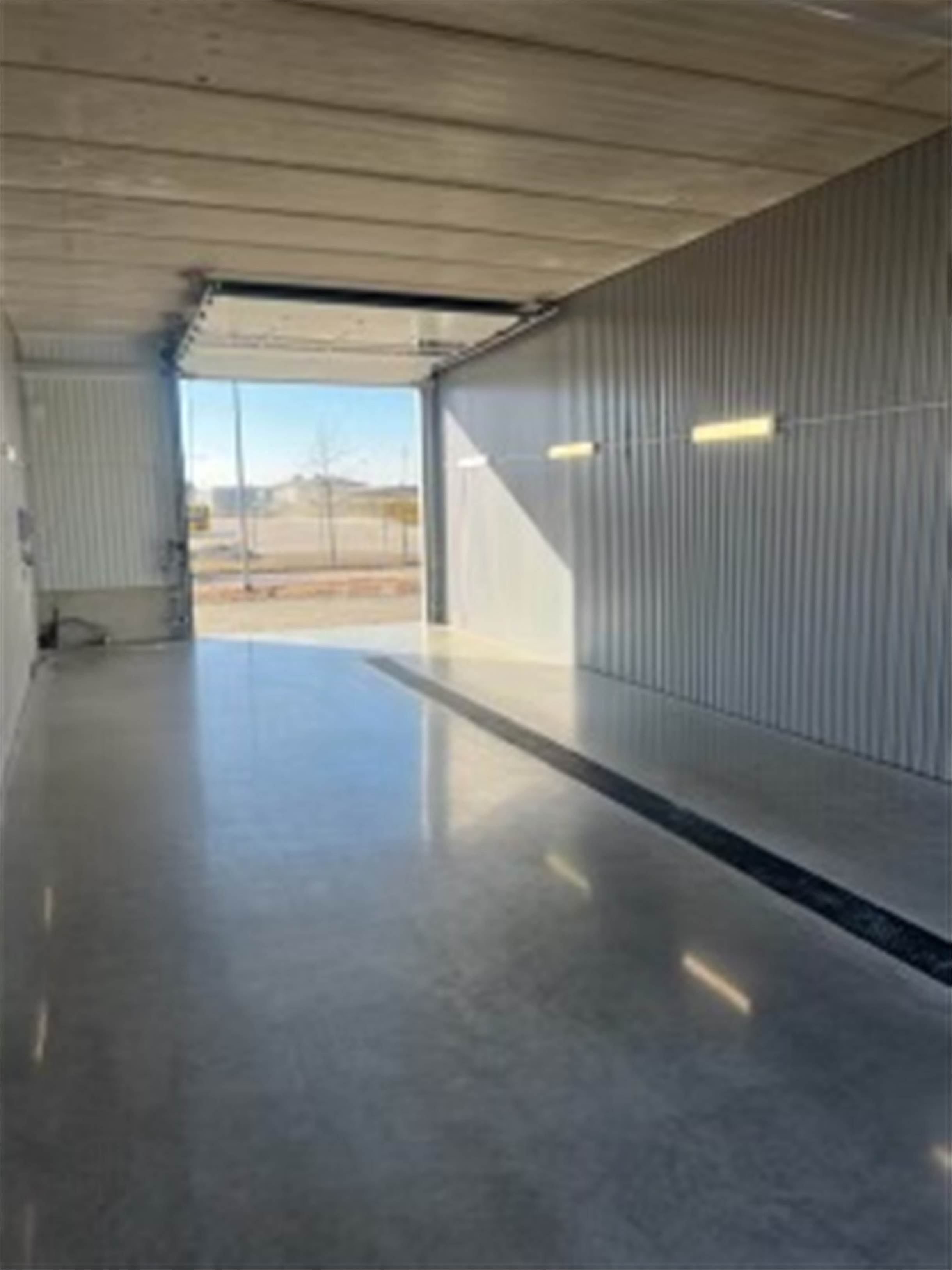 Lokalen har en vikport för enkel access till och från lokalen. Innanför porten finns installerade spolrännor och lokalen är ansluten till, en för fastigheten, gemensam oljeavskiljare. I lokalen finns en WC och möjlighet till dusch. För dig som behöver mer yta så finns möjlighet att bygga ett entresolplan.