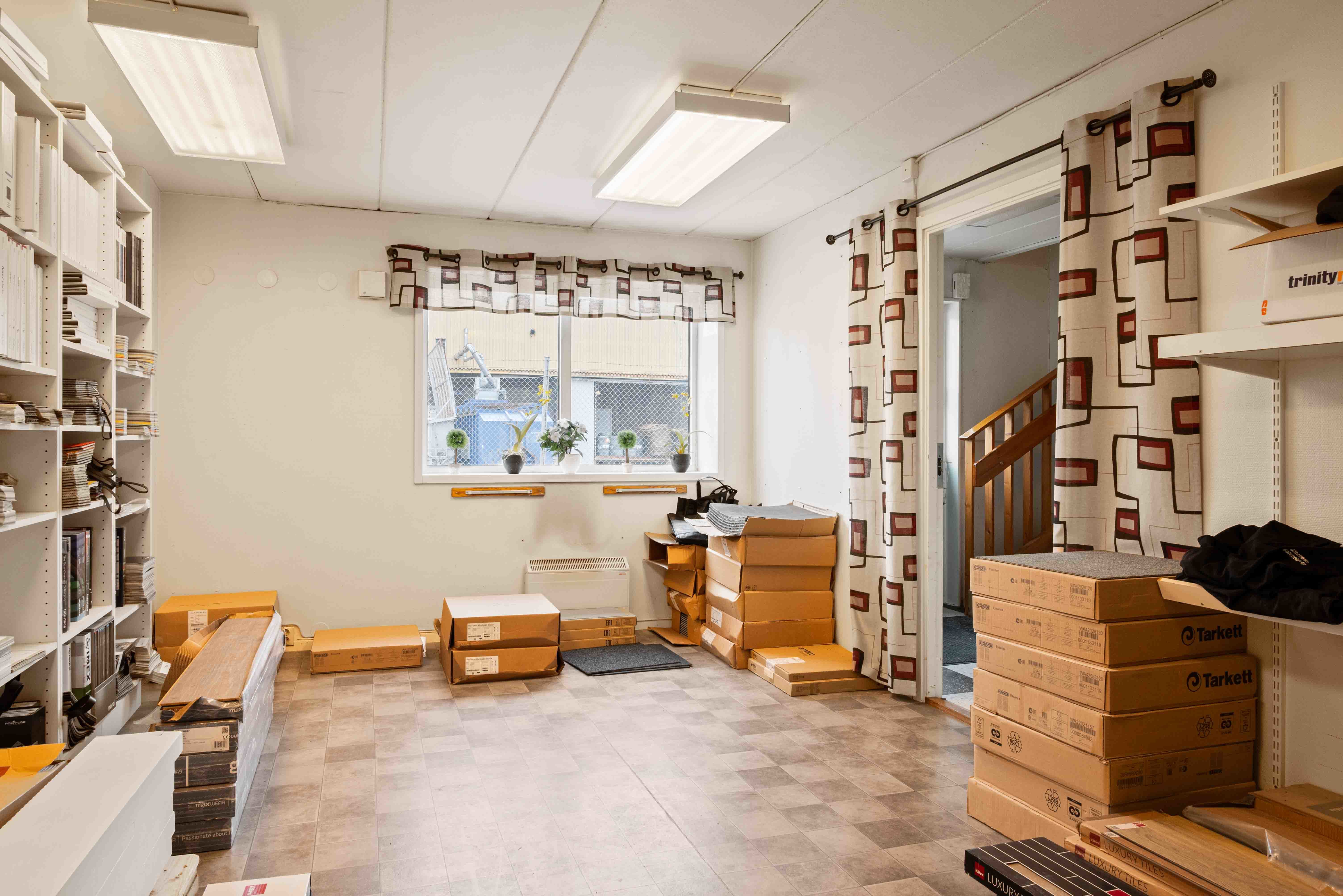 På entréplan möts du av rymliga lagerytor med generös takhöjd, egen entrédörr samt markport. Lokalen lämpar sig väl för logistik, produktion, e-handel, hantverksföretag eller annan verksamhet med behov av både lager och kontor.