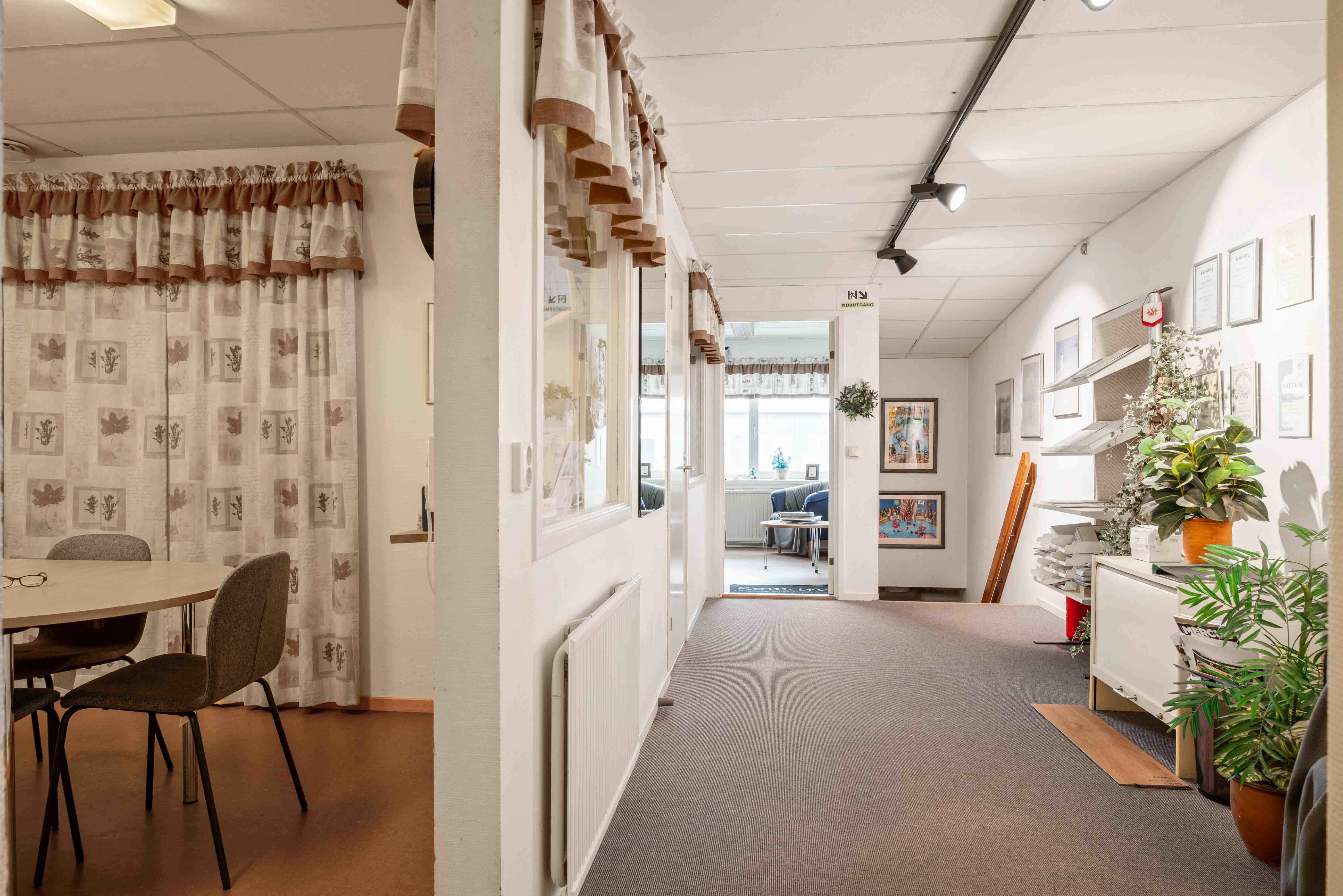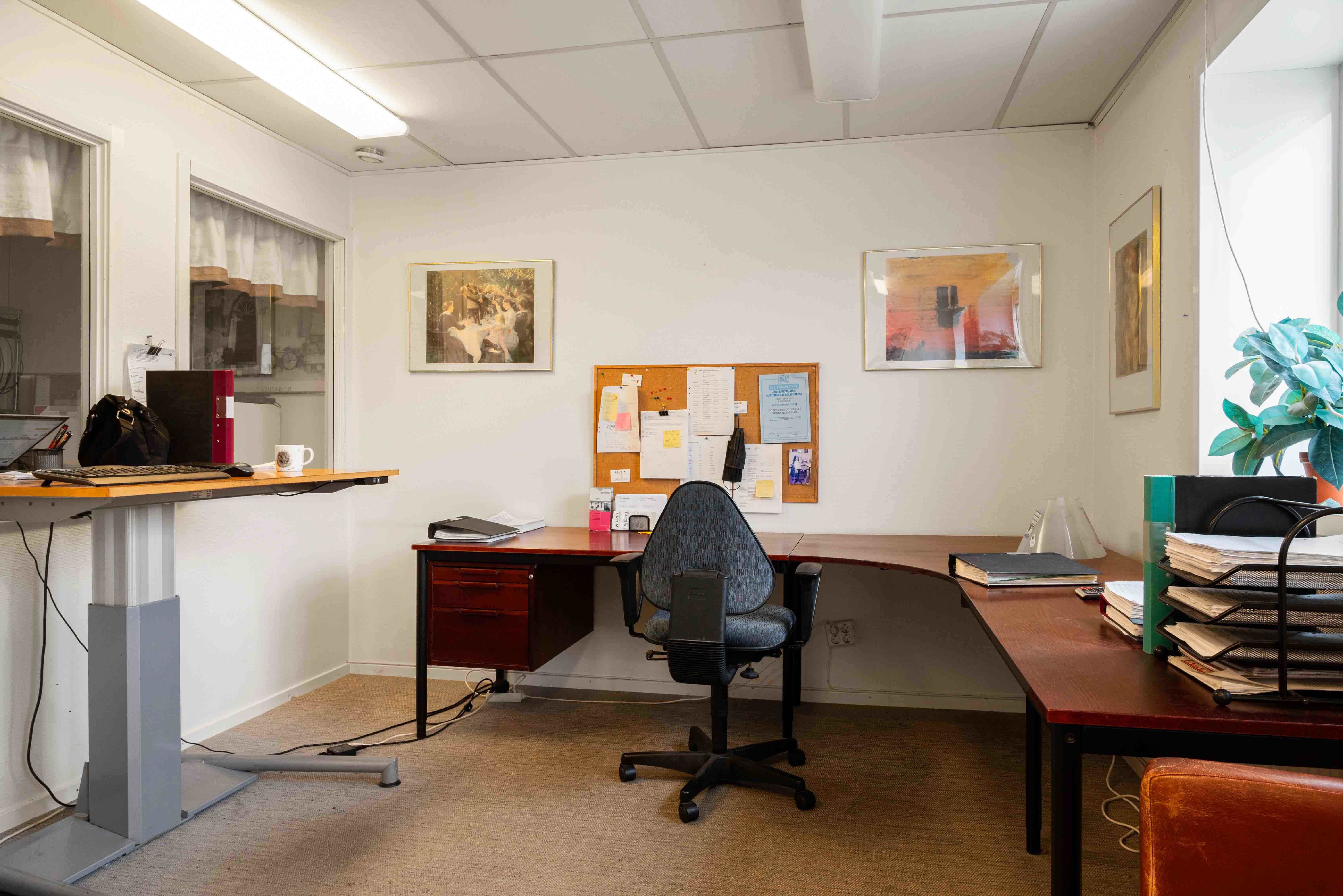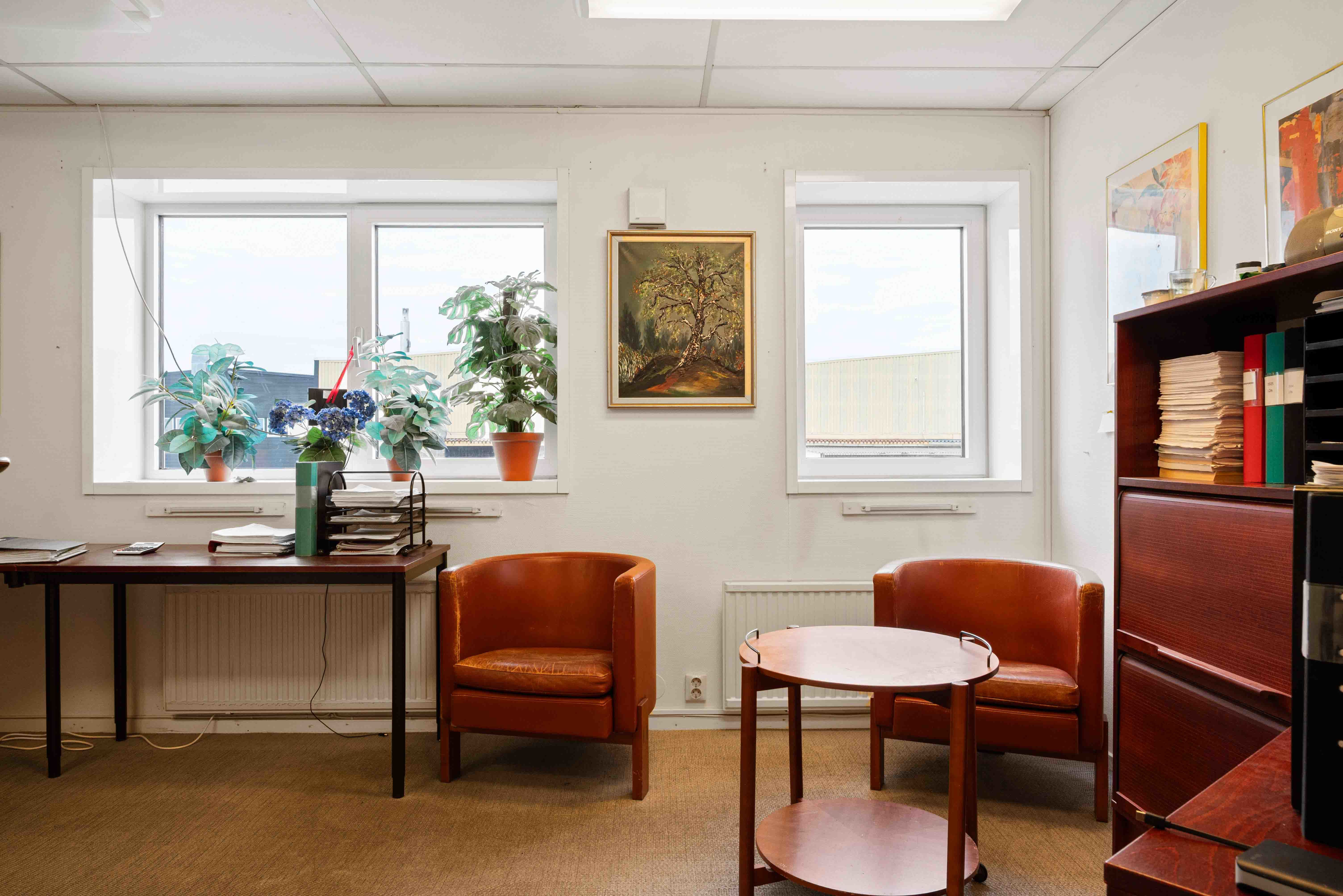 En intern trappa leder dig upp till den ljusa och trivsamma kontorsdelen som erbjuder flera kontorsrum, ett väl tilltaget konferensrum, kök med matplats samt toalett. Här finns gott om plats för både arbete, möten och paus.