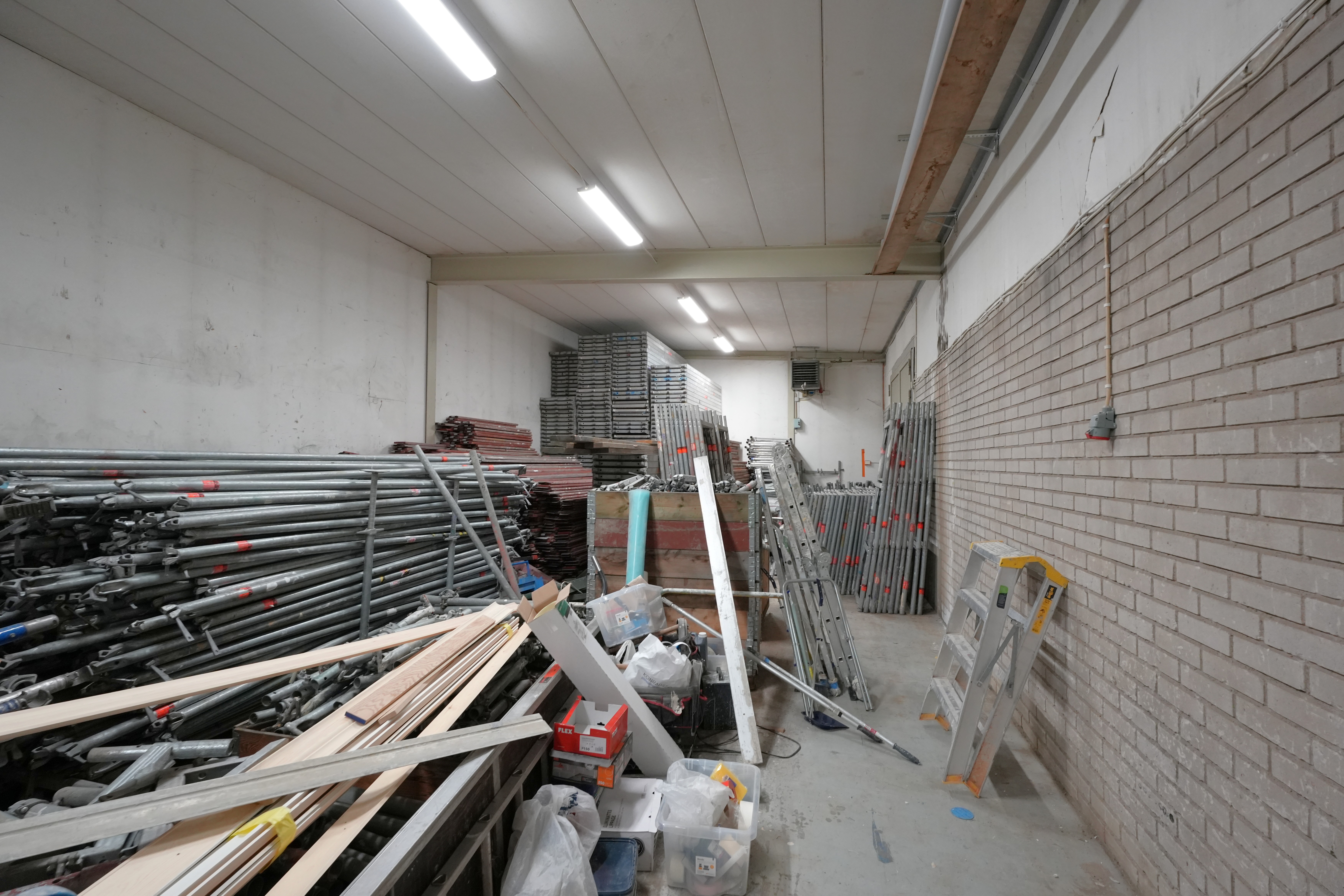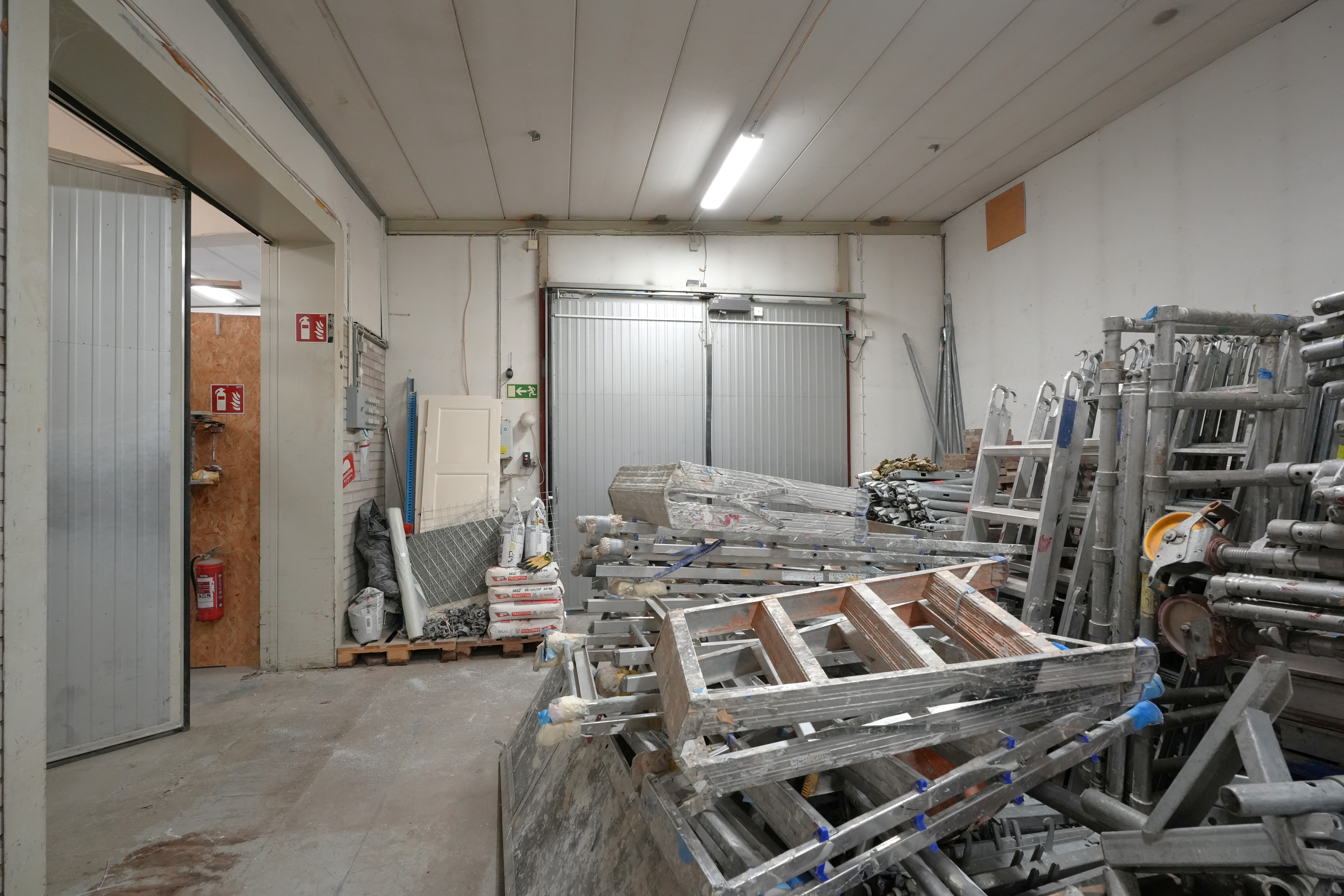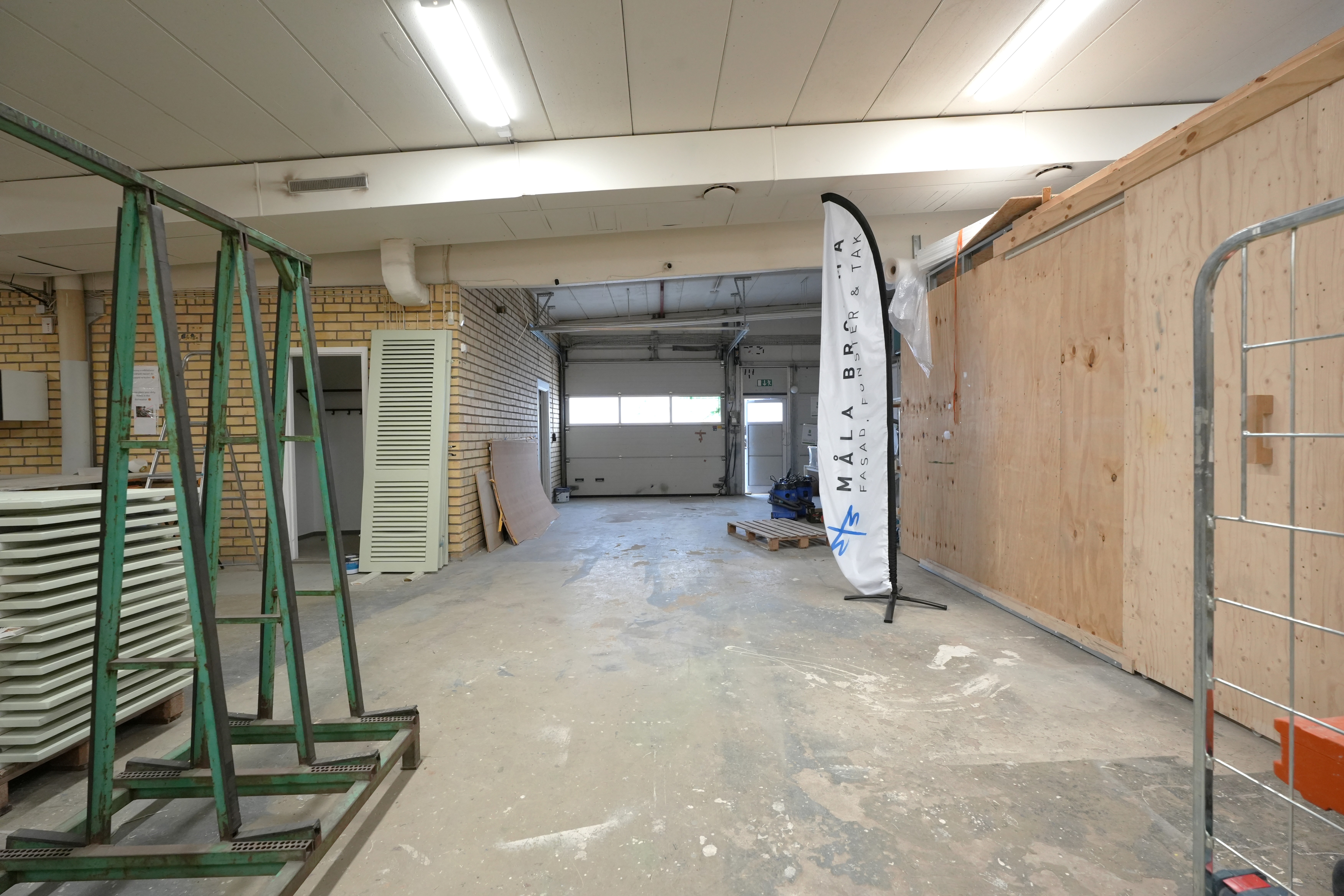 Resterande yta lager, verkstad och kallager. Portar in till lagerytan och till kallager (kallagret är placerat längst till vänster i fastigheten och har högre takhöjd och högre port än lager/verkstadsytan). Ca 400 kvm egen inhägnad gård för parkering och lastning.