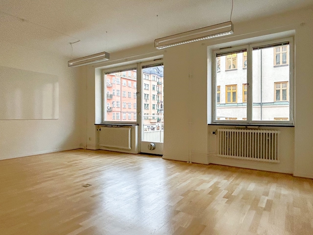 Lokalen har en genuint trevlig atmosfär tack vare de vackra trägolven, ett stort burspråk, samt två balkonger som bjuder in ljuset och skapar en öppen känsla. Härifrån kan du njuta av vyer ner mot Sankt Göransgatan och Sankt Eriksgatan en perfekt plats för den som vill ha stadens liv och rörelse som bakgrund utan att behöva lämna kontoret.