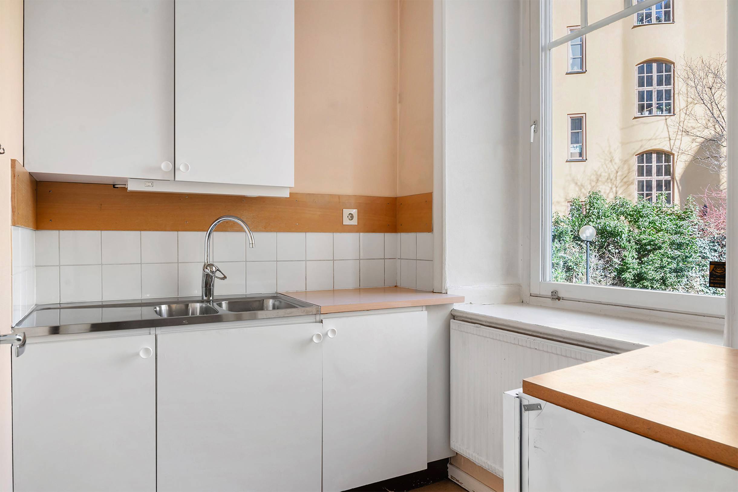 Ytorna utgörs av ett rum i entrén med stort fönster mot gatan, här är det högt i tak och det finns även ett mindre förrådsutrymme till denna del. Några trappsteg upp finns både dusch och toalett innan man kommer till ett rymligt bakrum med fönster mot innergården. Längst in i lokalen finns ett pentry som även har fönster mot gården.
