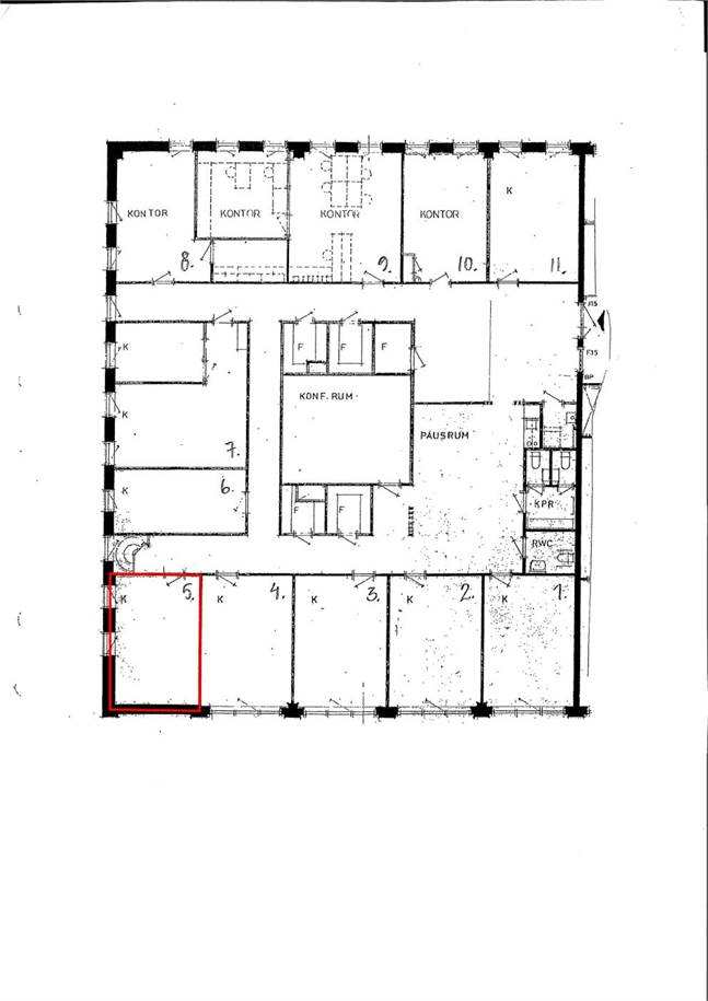 Ytan består av kontorsrum 22 kvm och 12 kvm delade gemensamma ytor.