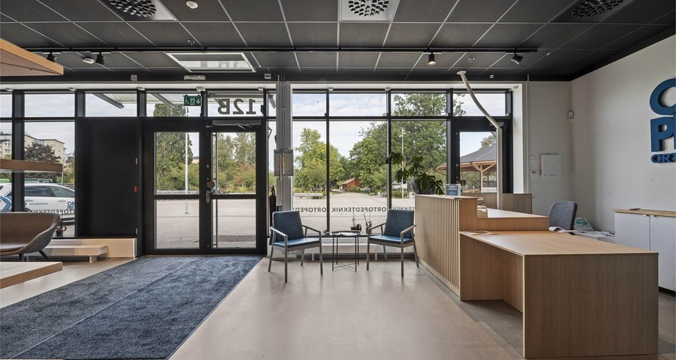 Varmt välkommen till Sjukhusvägen 12 B och denna unika butikslokal om 393 kvm, belägen ut mot stadsparken och under norra läktaren på Studenternas. Läget är unikt och här passerar hundratals människor dagligen vilket innebär att lokalerna med dess stora skyltfönster bjuder på ett mycket bra skyltläge. Genomgående är lokalen modern med detaljer såsom platsbyggd förvaring i blå nyans, stora fönsterpartier samt rymliga kontorsrum förberett med vatten. Lokalen erbjuder två delar, en stor butiuksdel och här finns det även flera kontorsrum, full utrustat kök samt RWC. Den andra delen av lokalen är en verkstadsdelen, idag är den tilltänkt för en ortopedteknik.