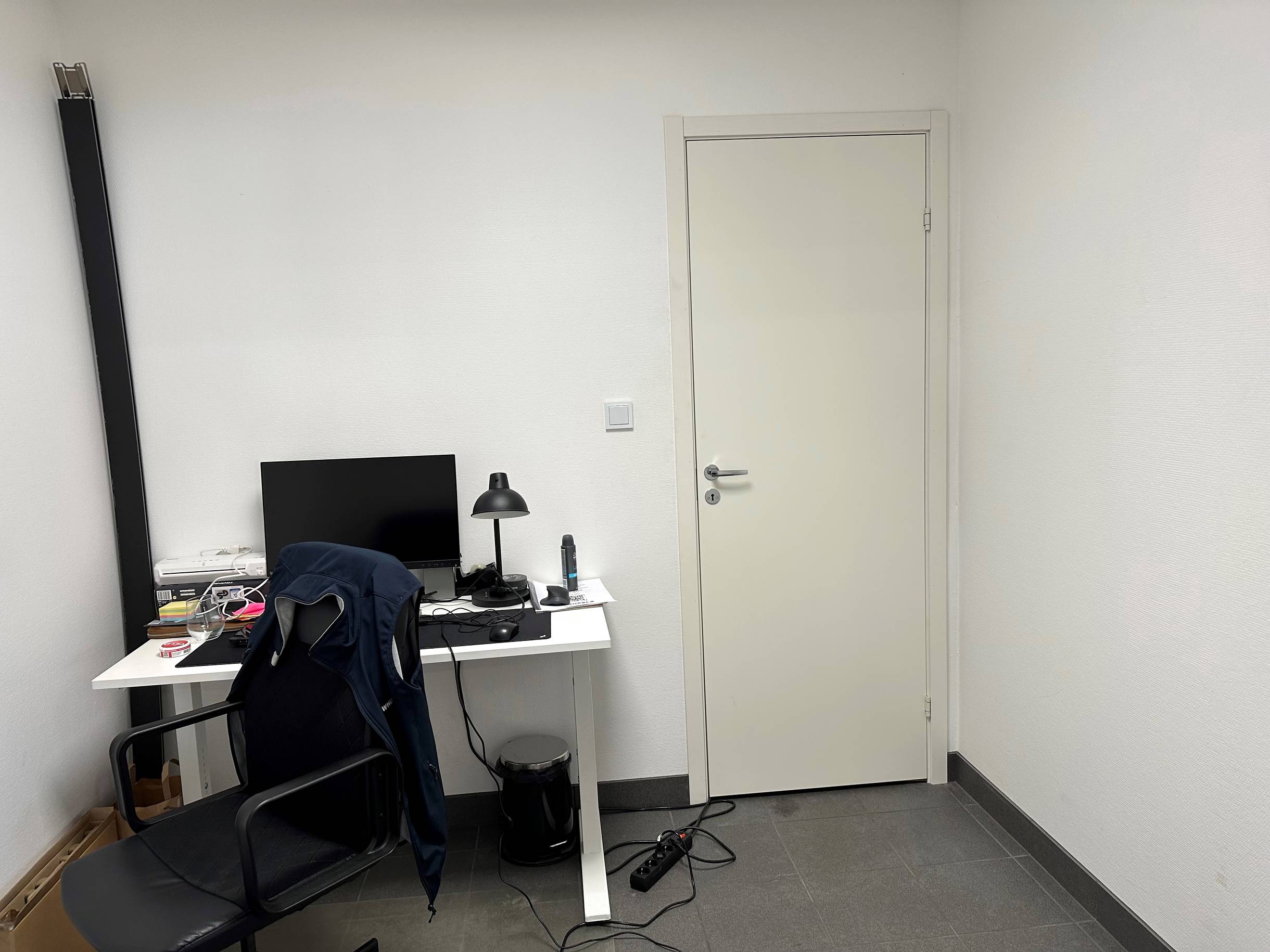 Ljus lokal med stora öppna ytor. Entrén i hörnan med en loungedel kan användas för såväl kunder som personal. Lokalens bakre utrymme består idag av lagerytor.