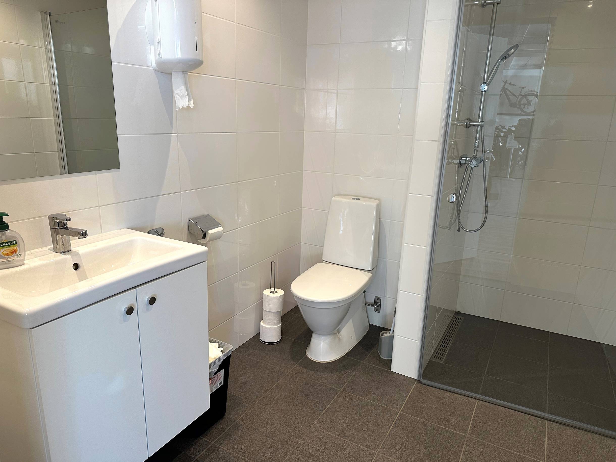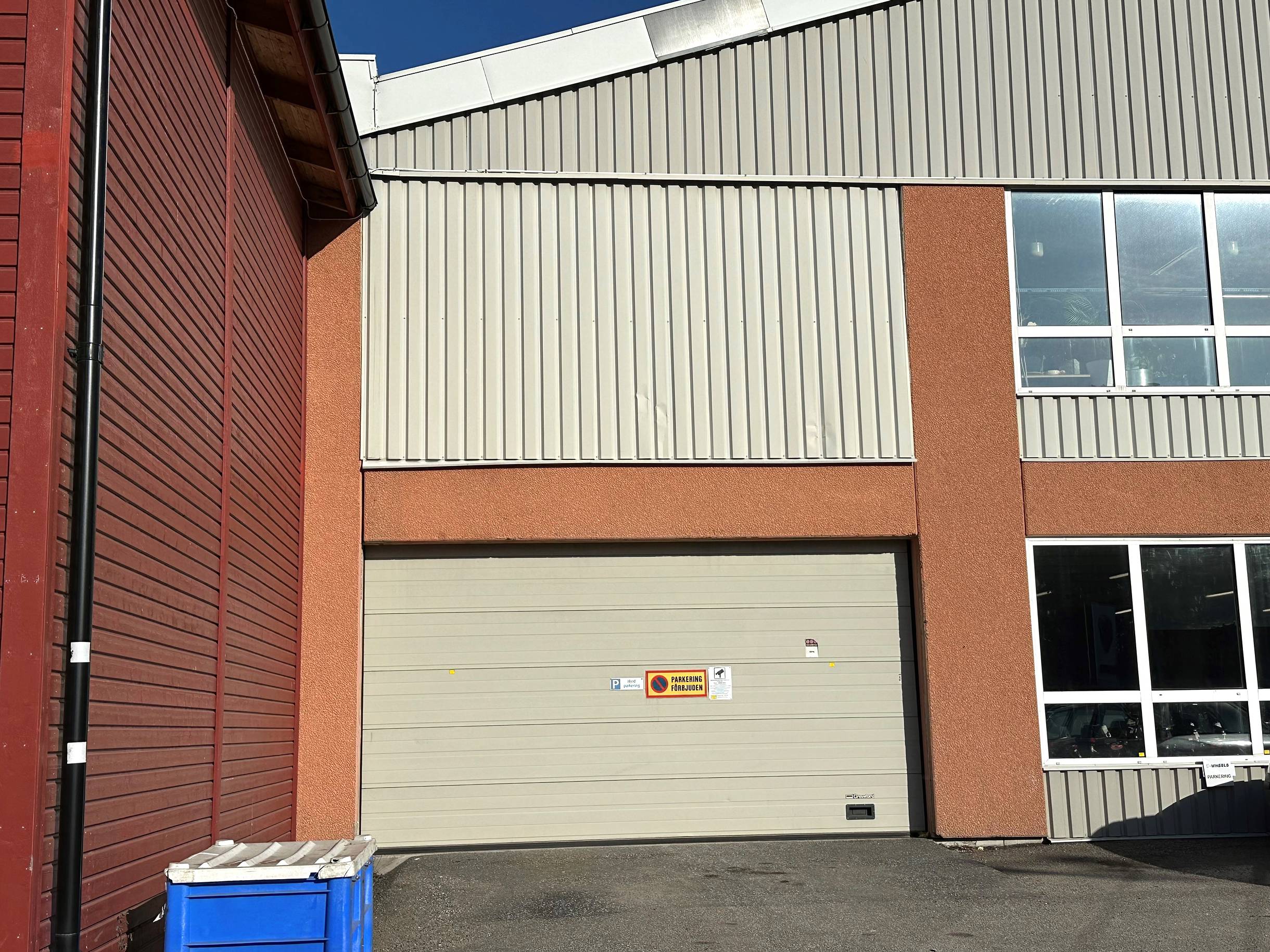 Parkering utanför lokalen plus längs stängsel. Totalt sett upp till 8 parkeringsplatser.