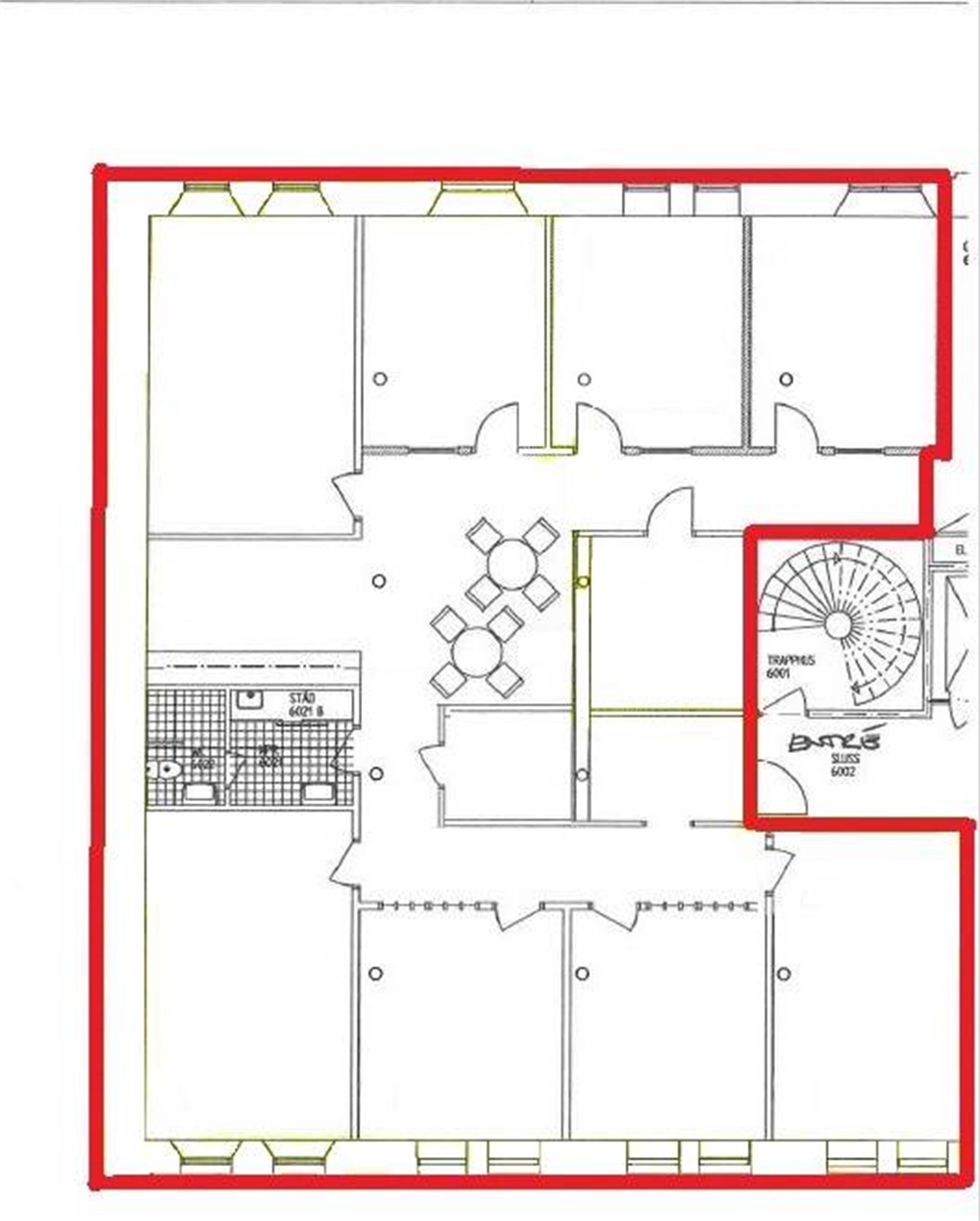 Lokalen är fördelad på flera kontorsrum och mötesrum med god flexibilitet för olika typer av arbetsplatser. I mitten av lokalen finns en trevlig gemensamhetsyta med pentry, som skapar en naturlig samlingspunkt för både personal och besökare. Fönster i två väderstreck ger ett fantastiskt ljusinsläpp och erbjuder utsikt över Kalmarsund och stadens takåsar.