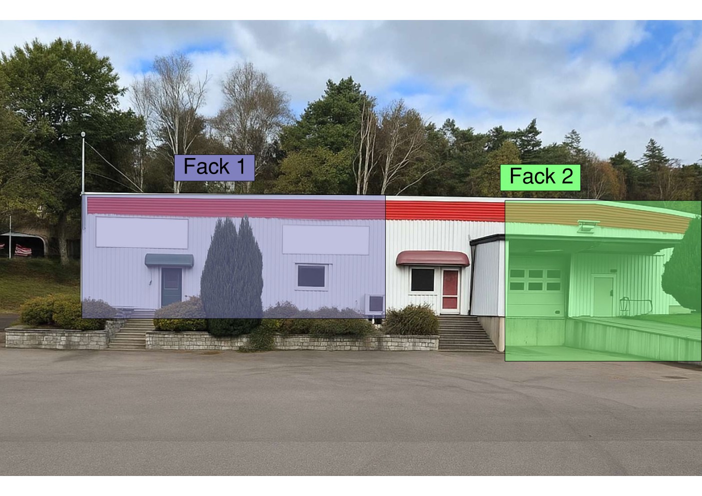 Fack 1 erbjuder en stor lagerdel med port, tillhörande kontorsrum och personalytor.