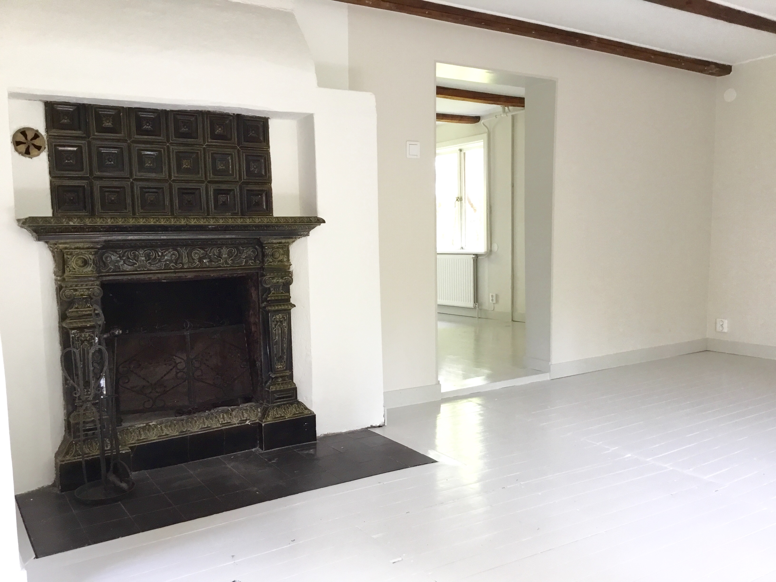 Byggnaden erbjuder en charmfull och representativ miljö med flera kakelugnar, målade trägolv och ett fräscht kök, vilket skapar en trivsam helhet lämpad för såväl kontor, konsultverksamhet som företagsbostad.