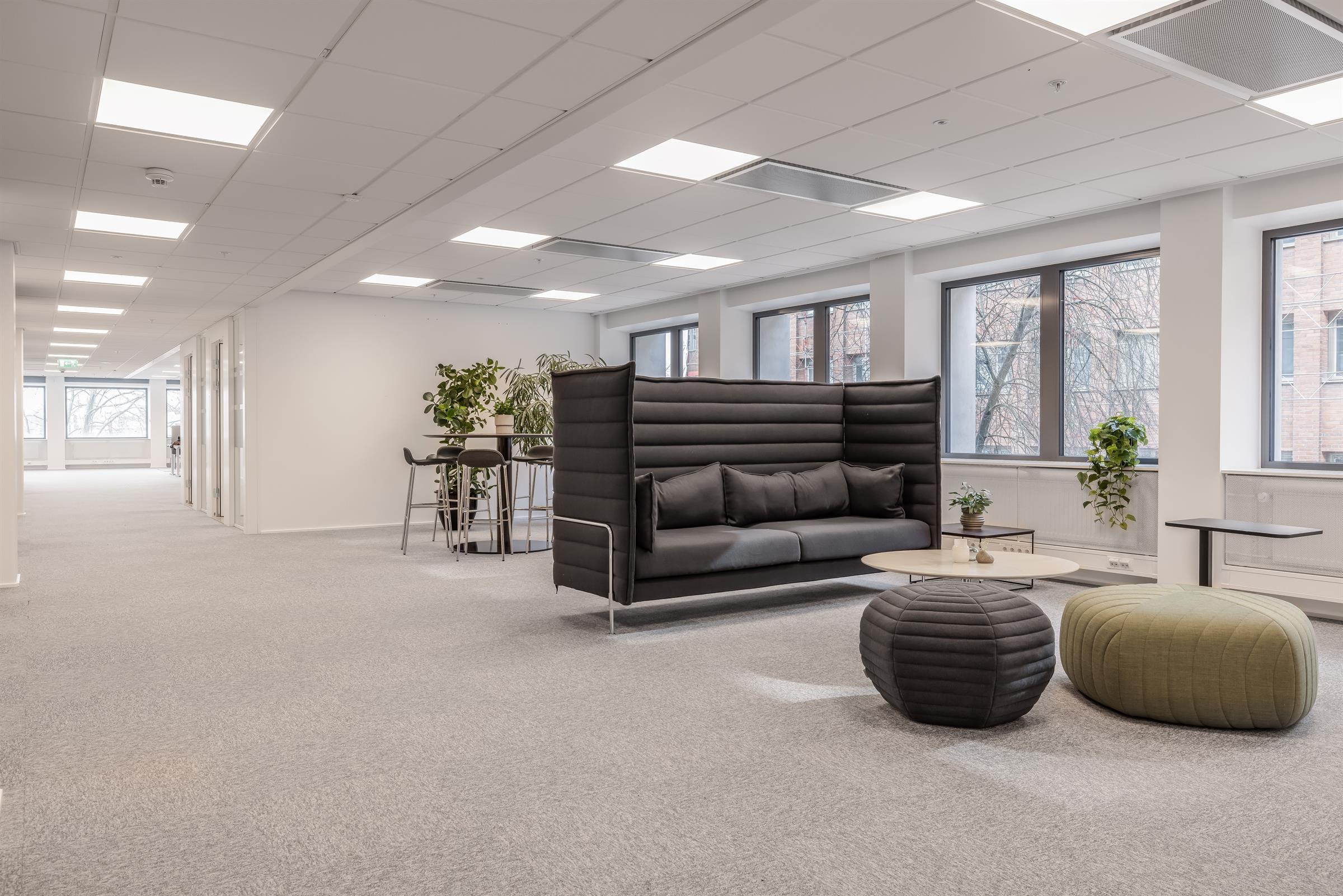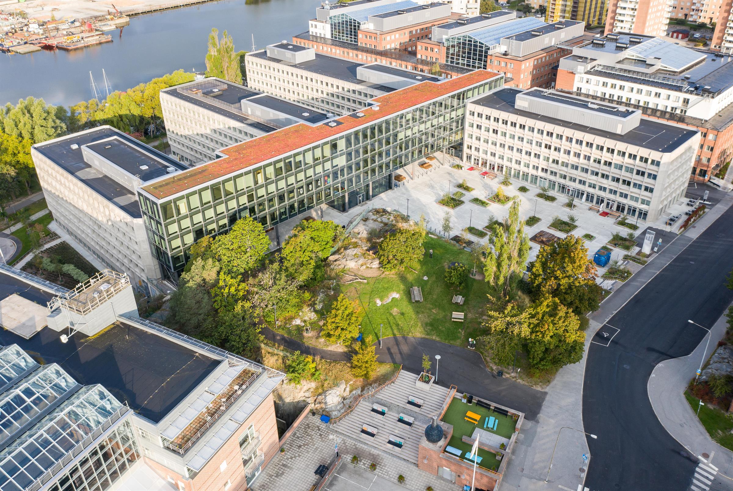 Kontorsfastighet i Solna Strand med modern fasad och grön innergård. Referensbild Öppen kontorsyta med loungekänsla, soffgrupp och plats för informella möten. Referensbild Ljust öppet kontorslandskap med pelare, heltäckningsmatta och stora fönster. Flygbild över kontorsfastigheten i Solna Strand med närhet till vatten och grönska. Referensbild Rymlig kontorsyta med öppna arbetsplatser och informella sittzoner. Referensbild Modernt pentry i kontorsmiljö med bord, stolar och plats för pauser. Vasakronan Solna Strand Referensbild Gemensam mat- och pausyta i kontoret med bord och stolar.Vasakronan Solna Strand Flygbild över kontorsområde i Solna Strand med omgivande bebyggelse. Entré till kontorsfastighet med glasfasad och planteringar.