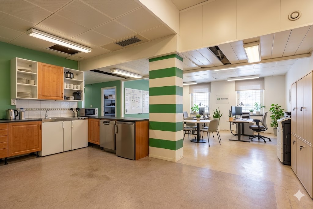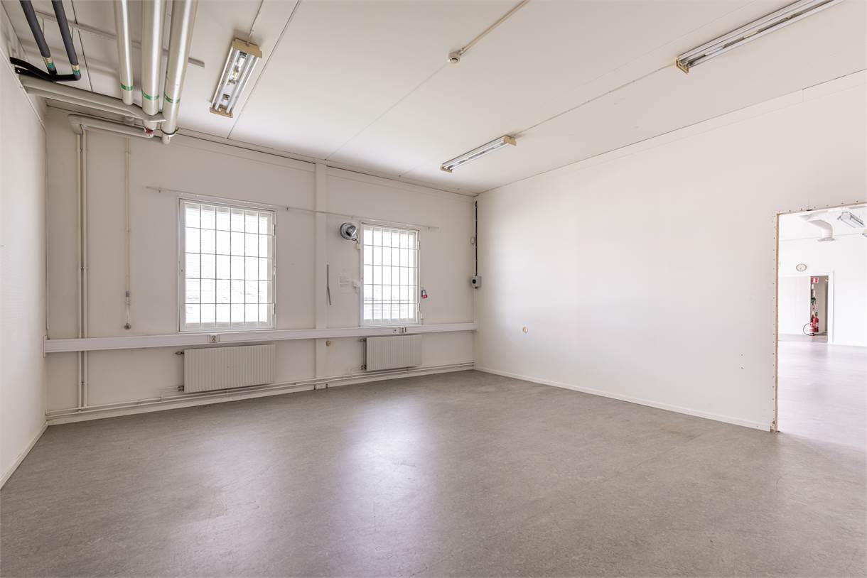 Ytan är fördelad på lagerdel, produktionsyta och kontorsdel samt våtutrymmen och pentry/kök.