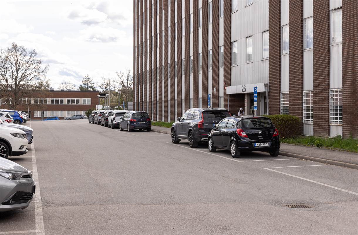 Parkeringsmöjligheter: I anslutning till byggnaden finns gott om avgiftsbelagda bilparkeringar och besöks parkering kan anordnas på mark utanför lokalerna. Parkering på gatan är också möjlig i mån om plats dagtid.