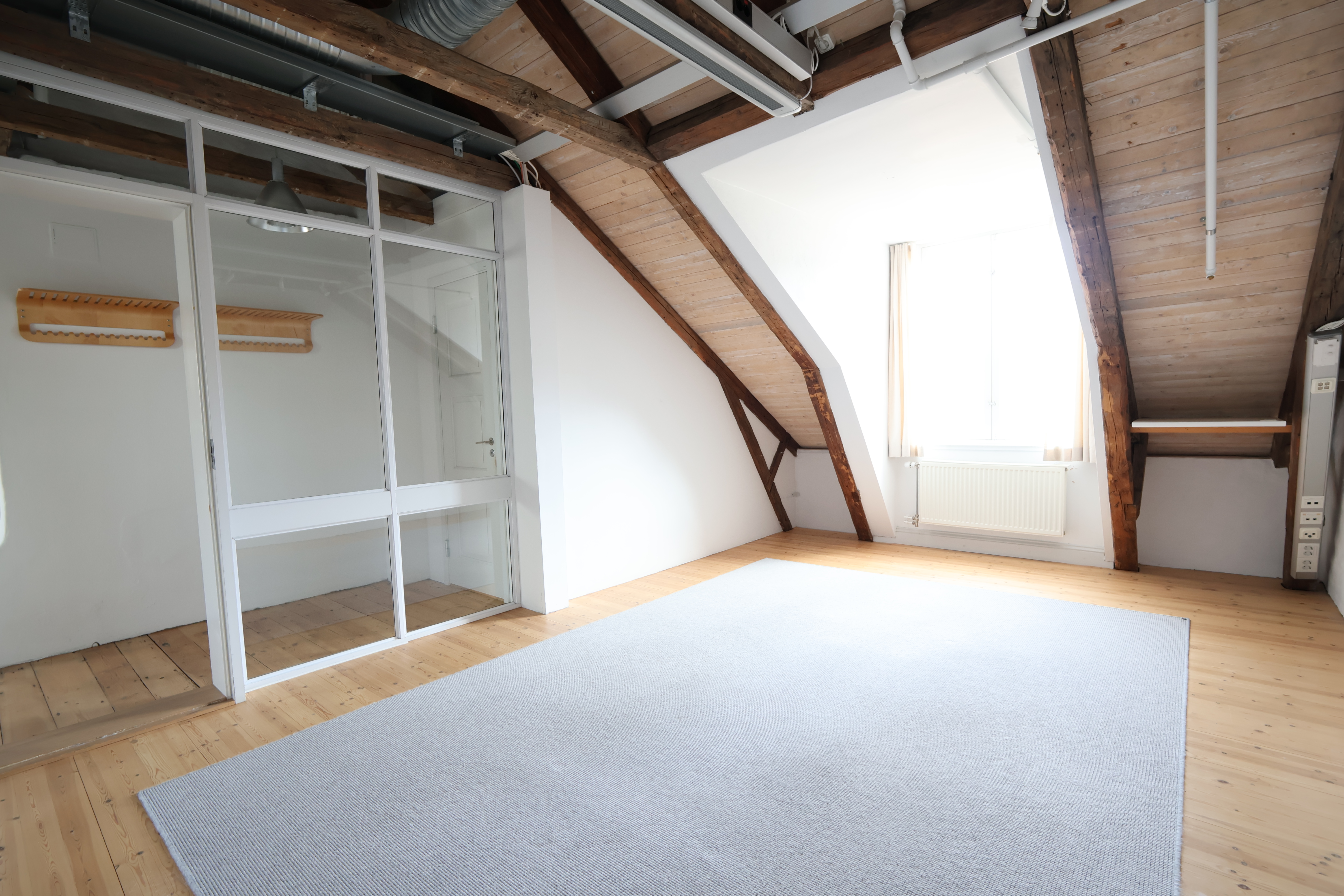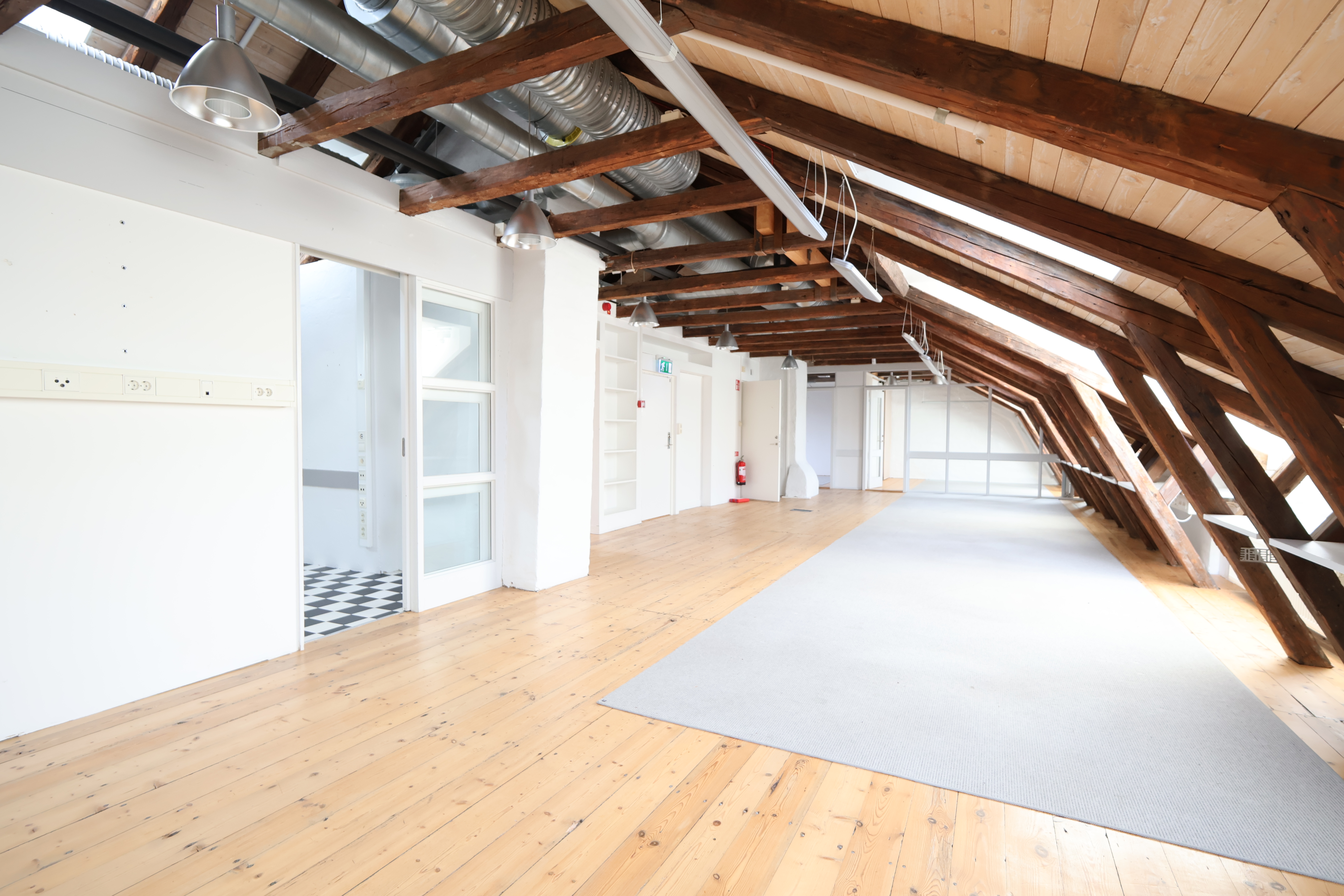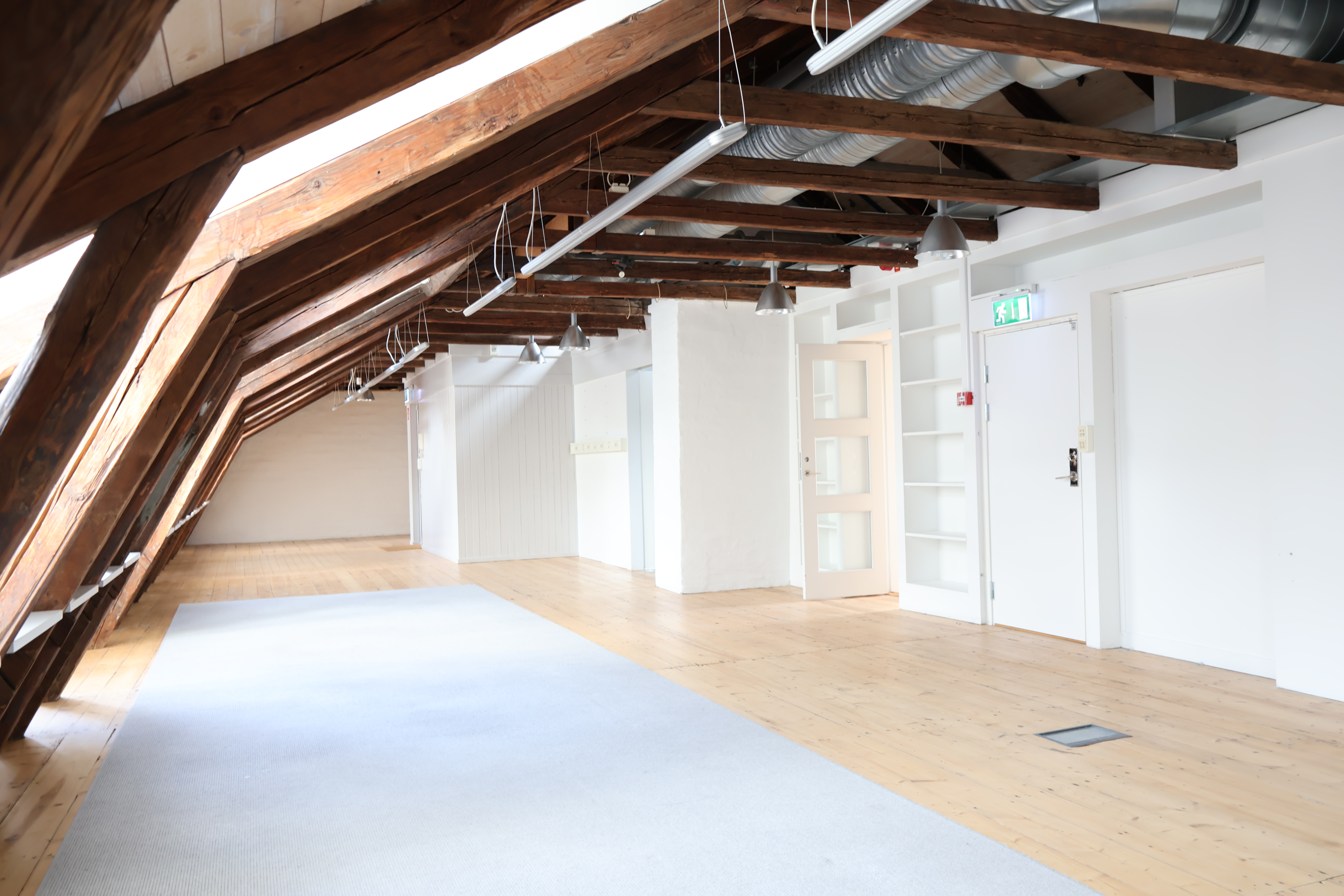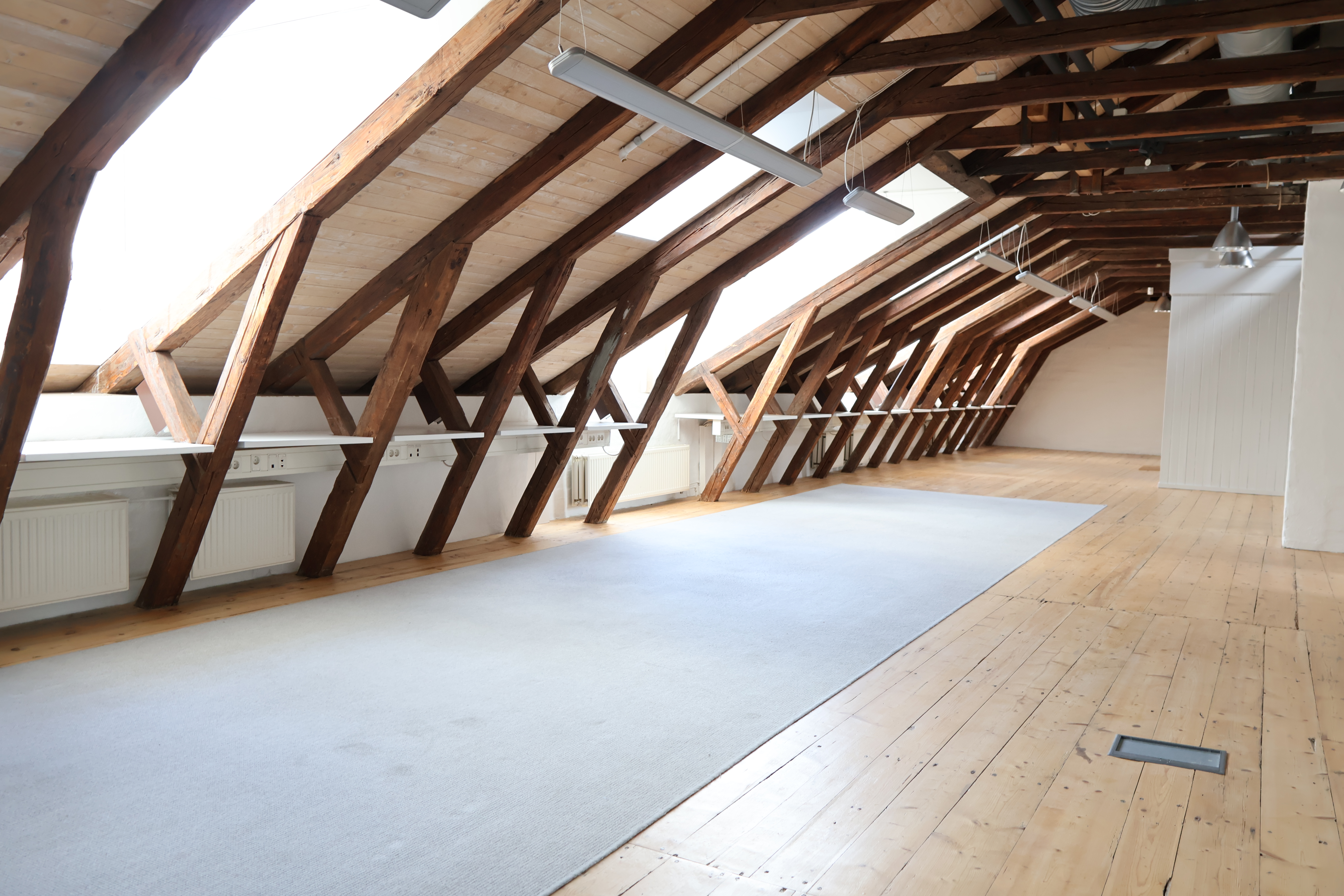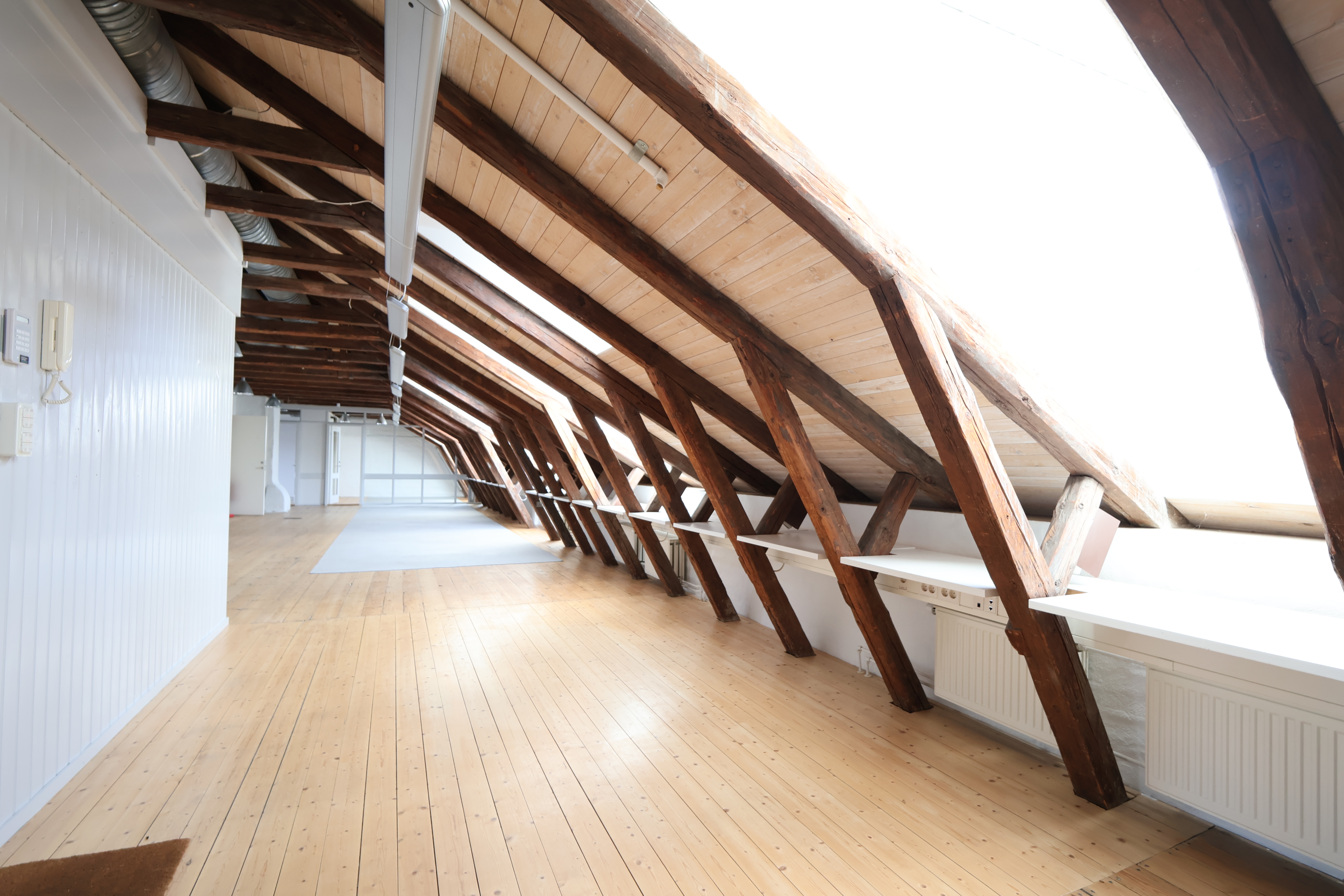 Redan vid första steget in möts du av synliga bjälkar i väggar och tak, brädgolv med naturlig patina och ett fantastiskt ljusinsläpp från takfönster. Den rustika känslan skapar en varm och välkomnande miljö som kombineras med moderna inslag och uppdaterad teknik – perfekt för det moderna kontoret som vill ha något utöver det vanliga.