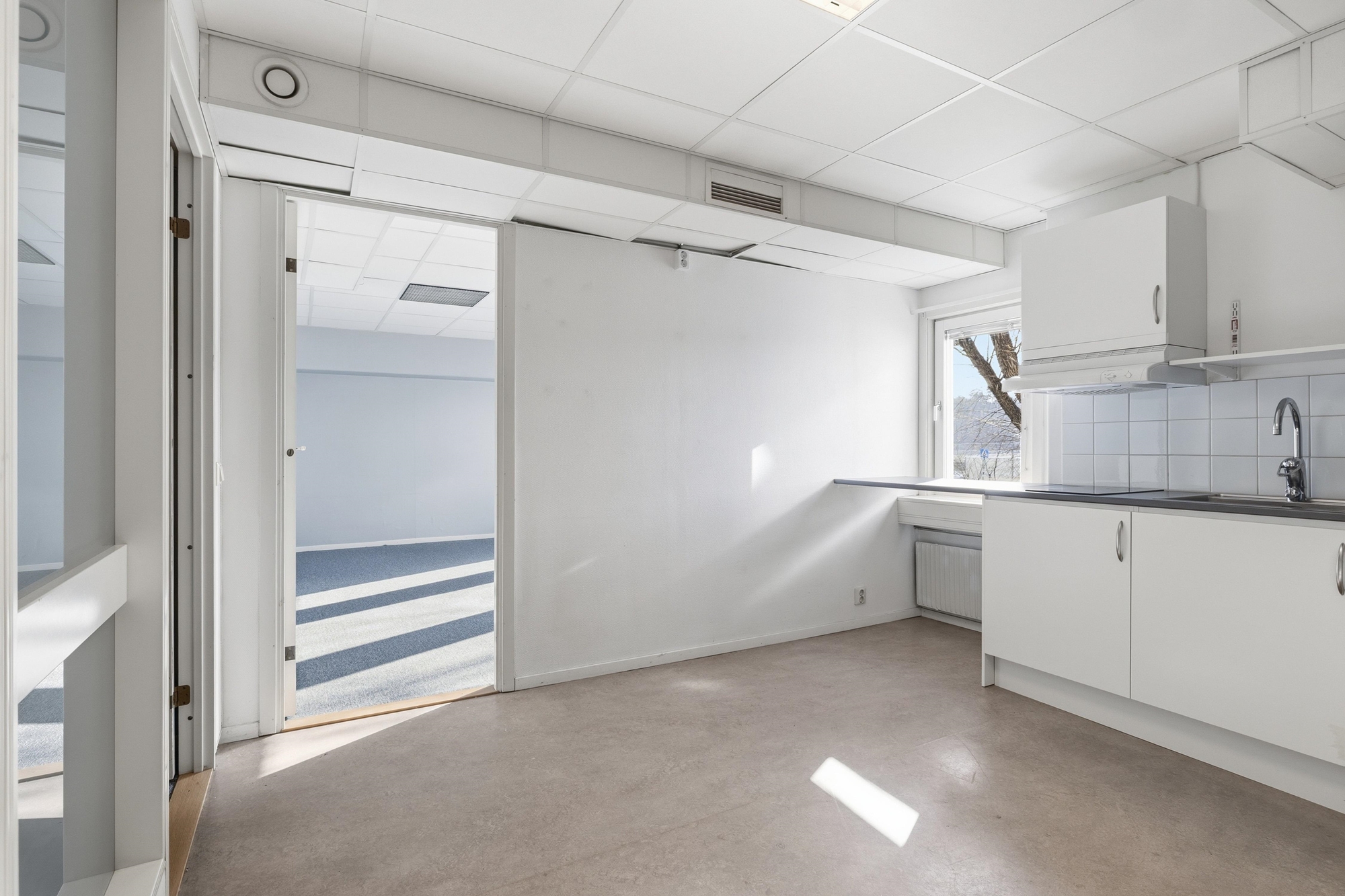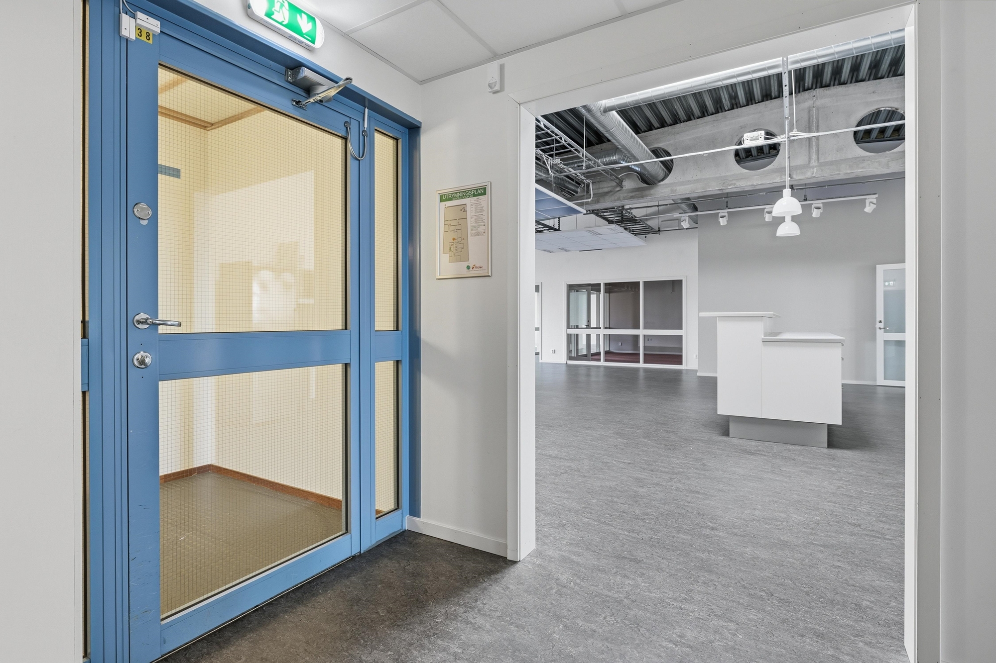 Planlösningen är flexibel och lämpar sig väl för verksamheter som söker en kombination av kontor, showroom med lättare lager. Här finns goda förutsättningar att anpassa ytorna efter just er verksamhets behov.