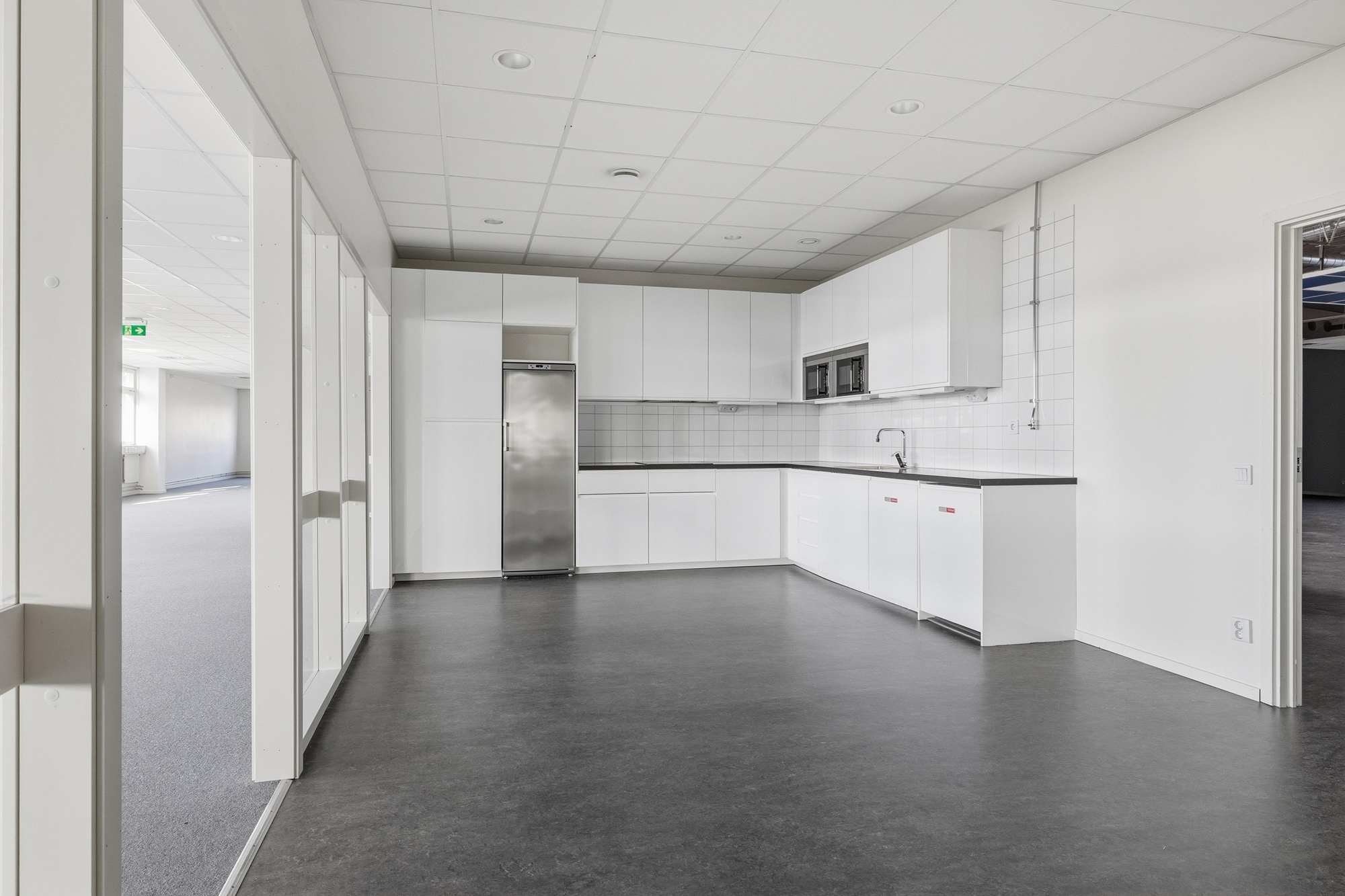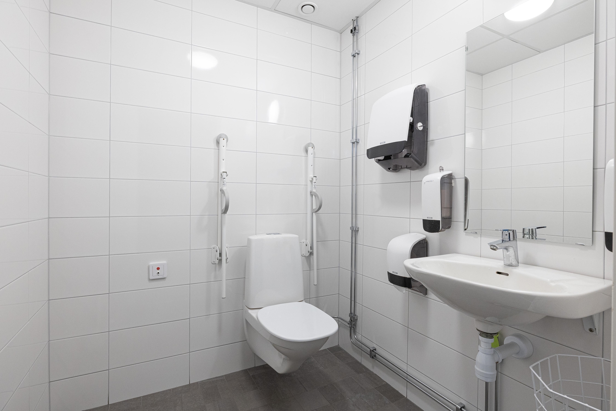 Lokalen håller genomgående hög standard med helkaklade badrum och en väl genomtänkt materialvalsnivå som ger ett stilrent och professionellt intryck.