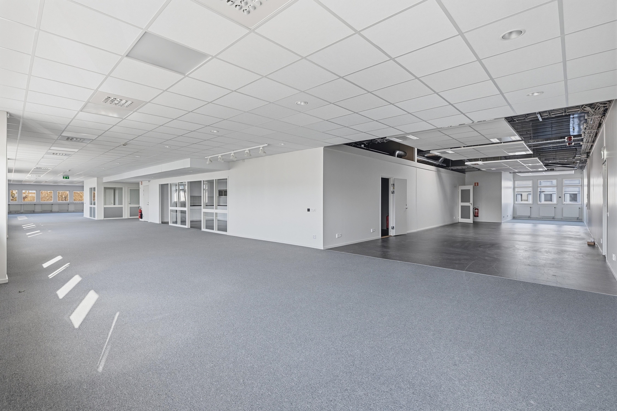 Mestadels öppet landskap, med några kontors/mötesrum.