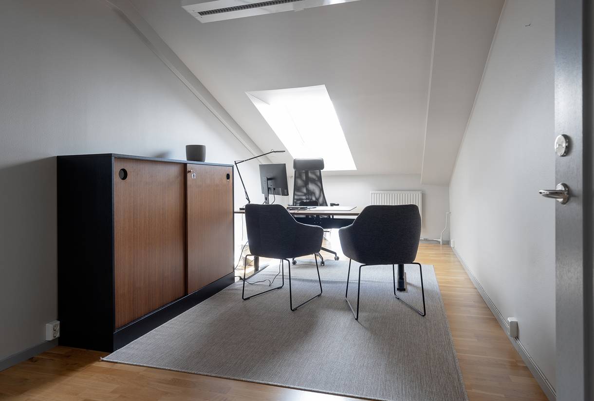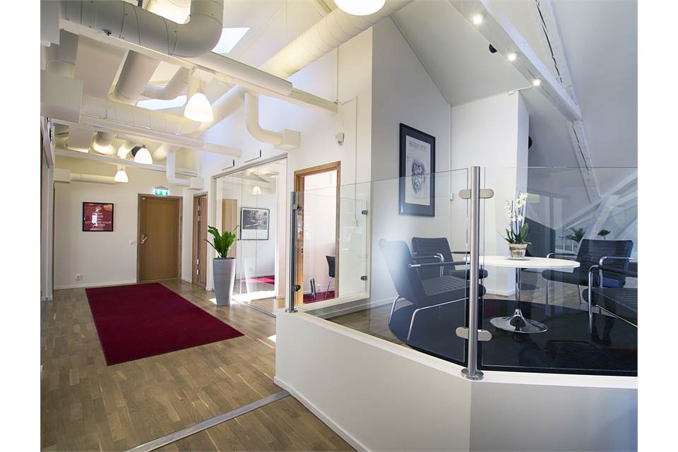 Härlig planlösning med 10 kontorsrum, kök och lounge med pentry. Mötesrum.
