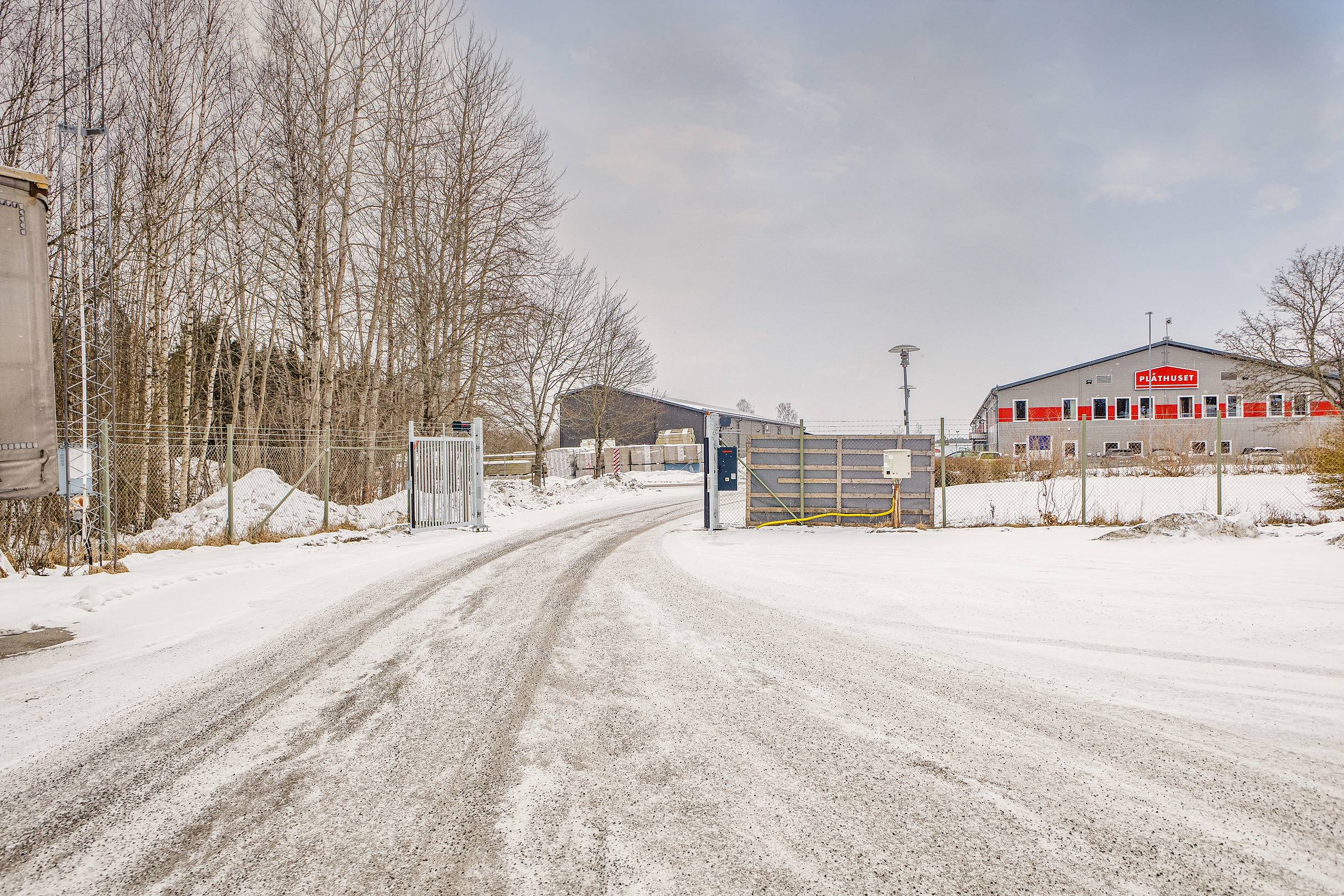 Fastigheten ligger på ett inhägnat område där det även finns rangerytor och parkering i direkt anslutning. Dessutom får man ett mycket bra skyltläge med exponering mot E18, vilket stärker synligheten för verksamheten.