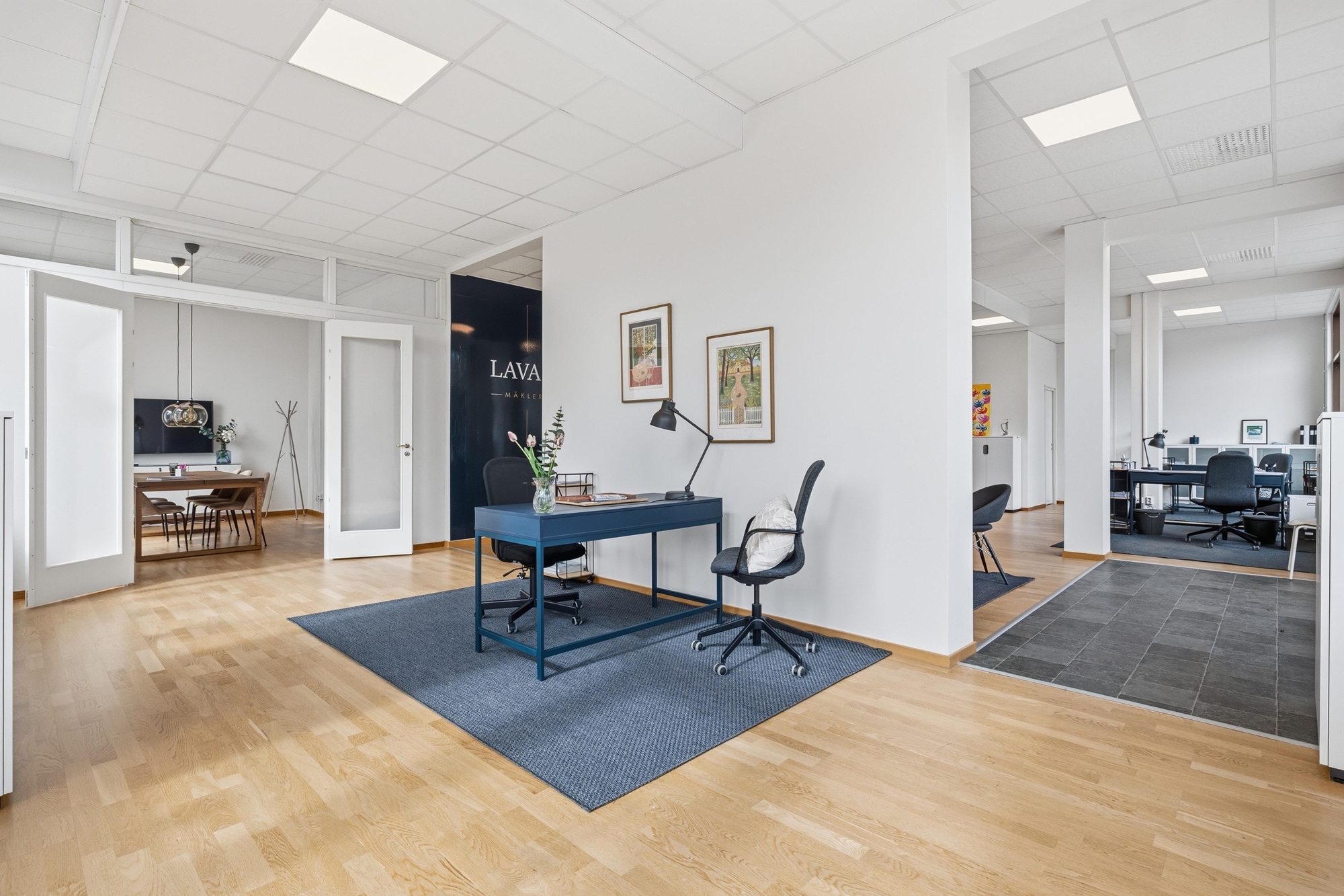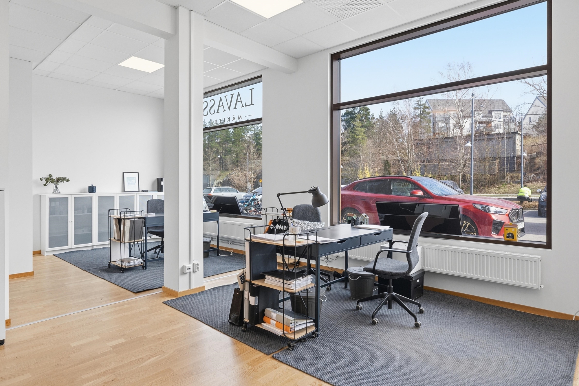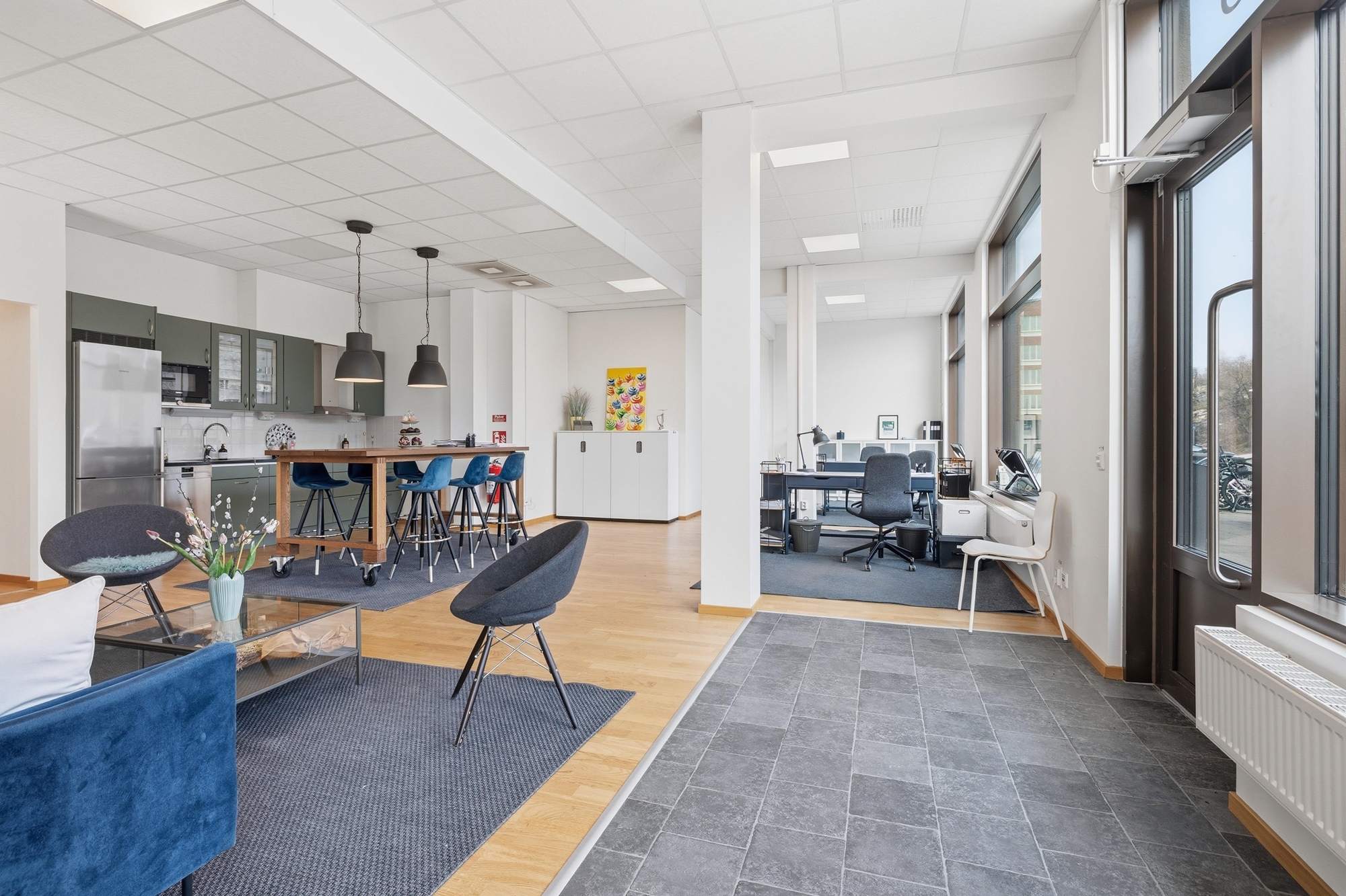 Här möts du av en öppen och flexibel planlösning som enkelt kan anpassas efter verksamhetens behov perfekt för kontor, showroom eller liknande verksamhet. Till det öppna kontorslandskapet hör även ett konferens/mötesrum.