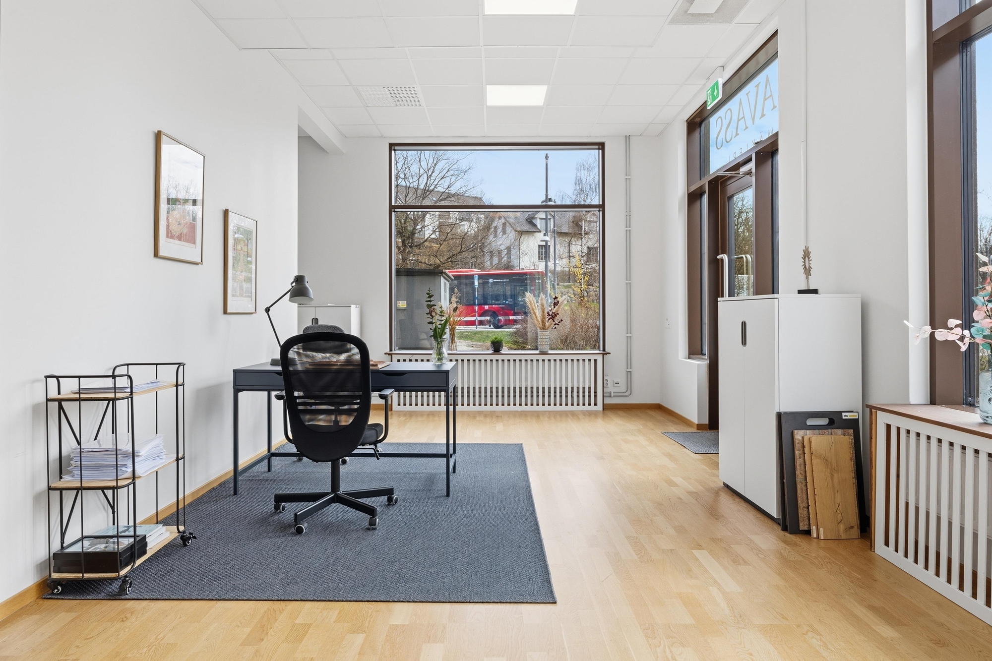 De stora skyltfönstren mot gatan ger ett utmärkt exponeringsläge och bidrar till den ljusa och luftiga känslan i hela lokalen.