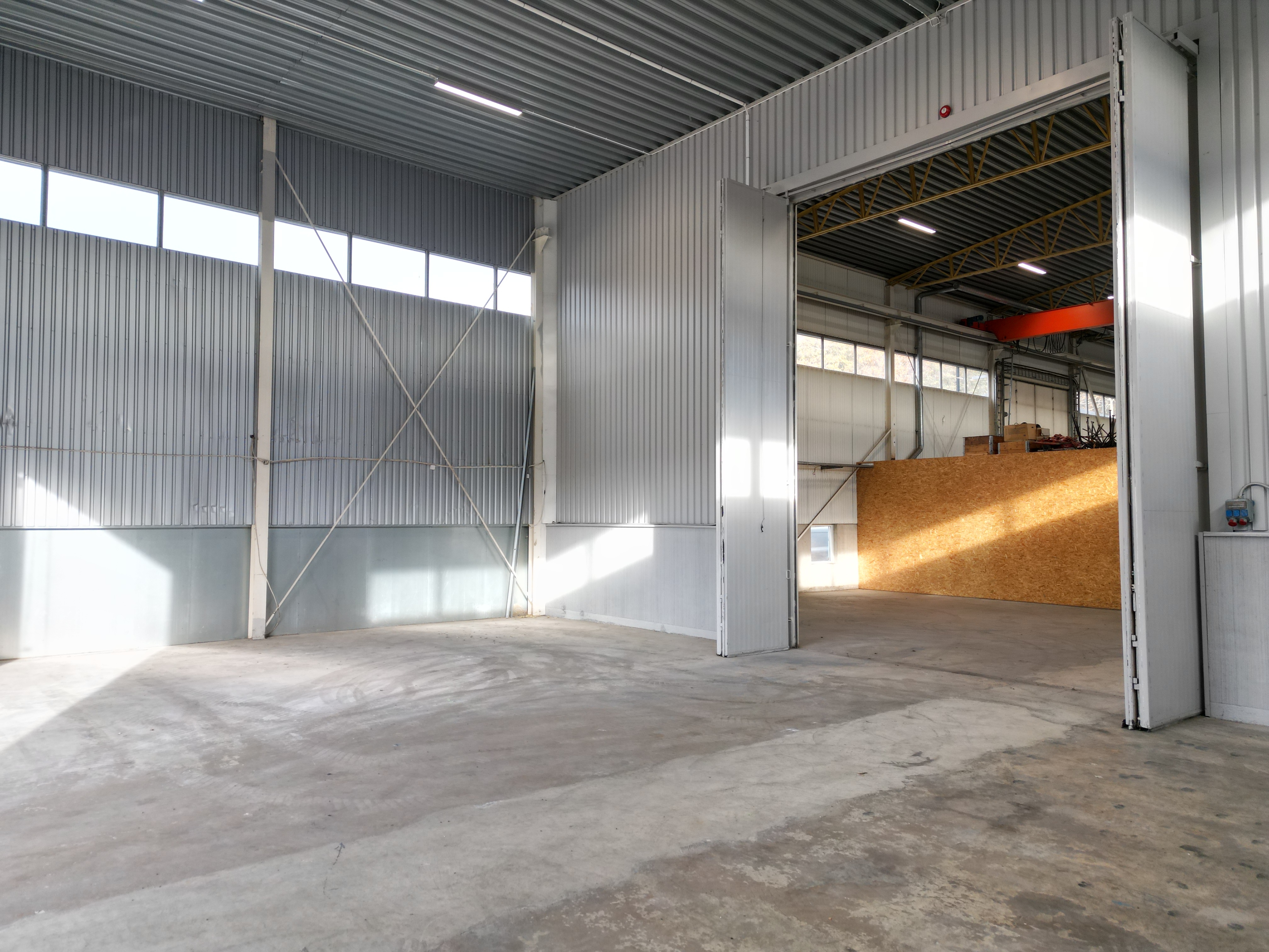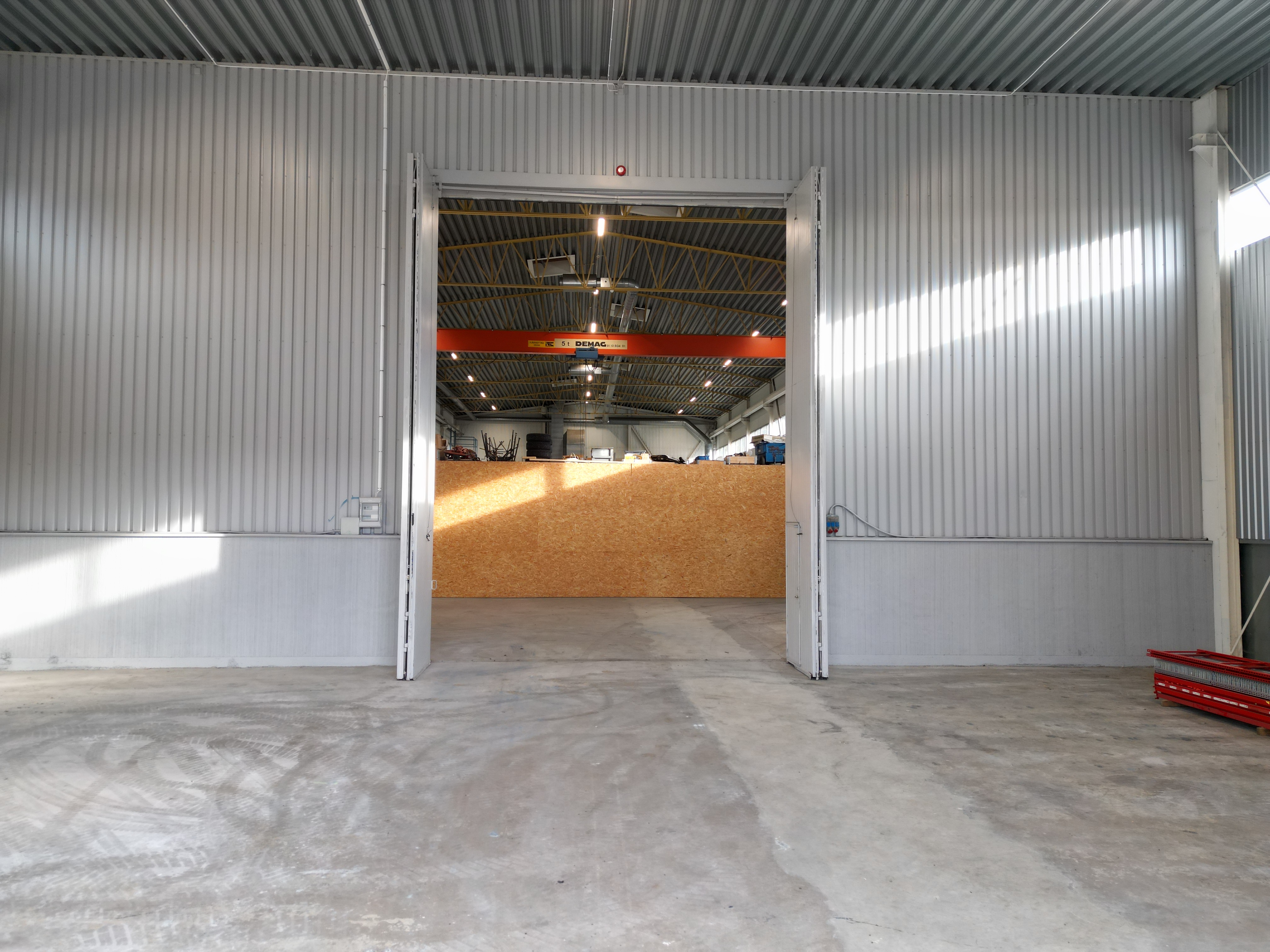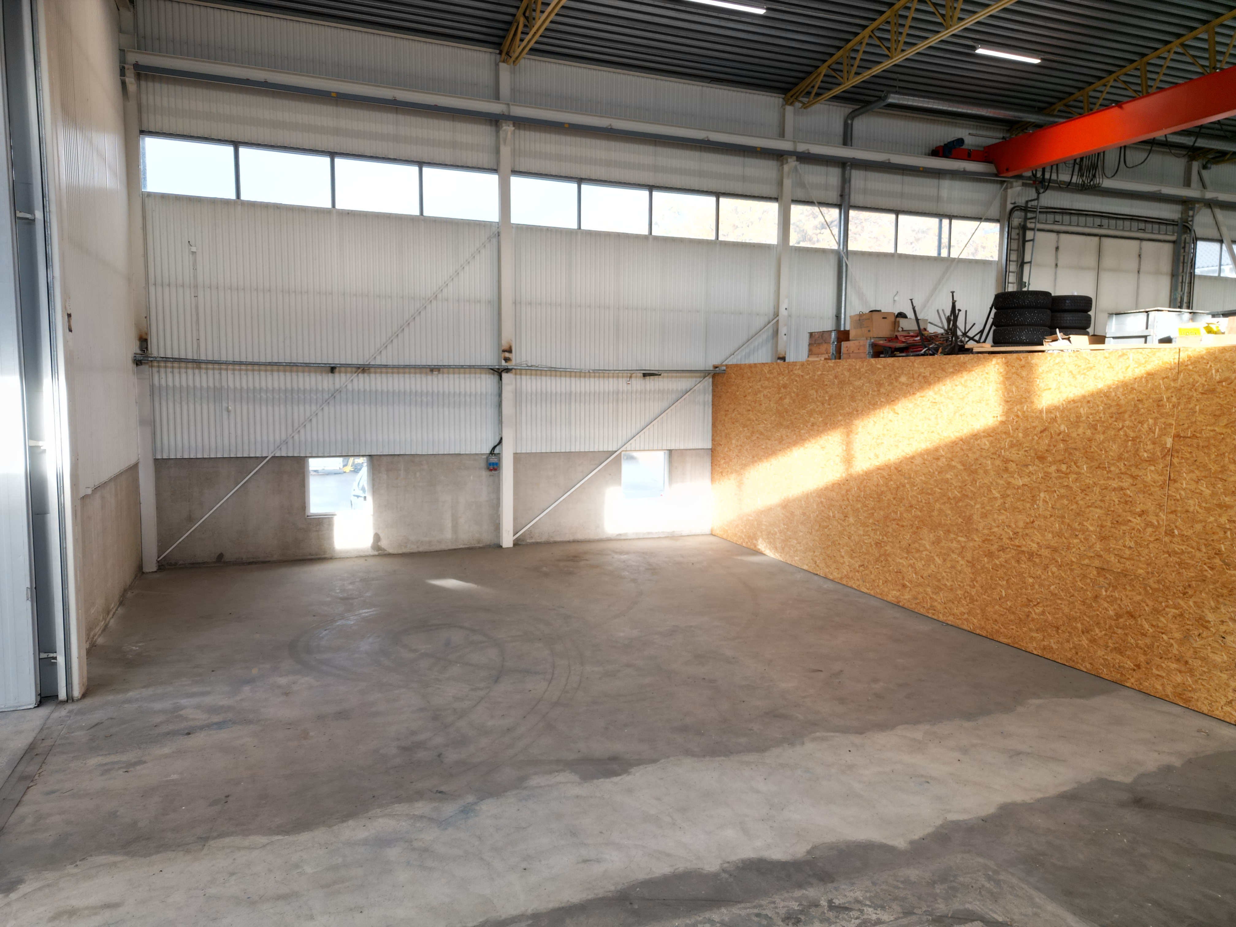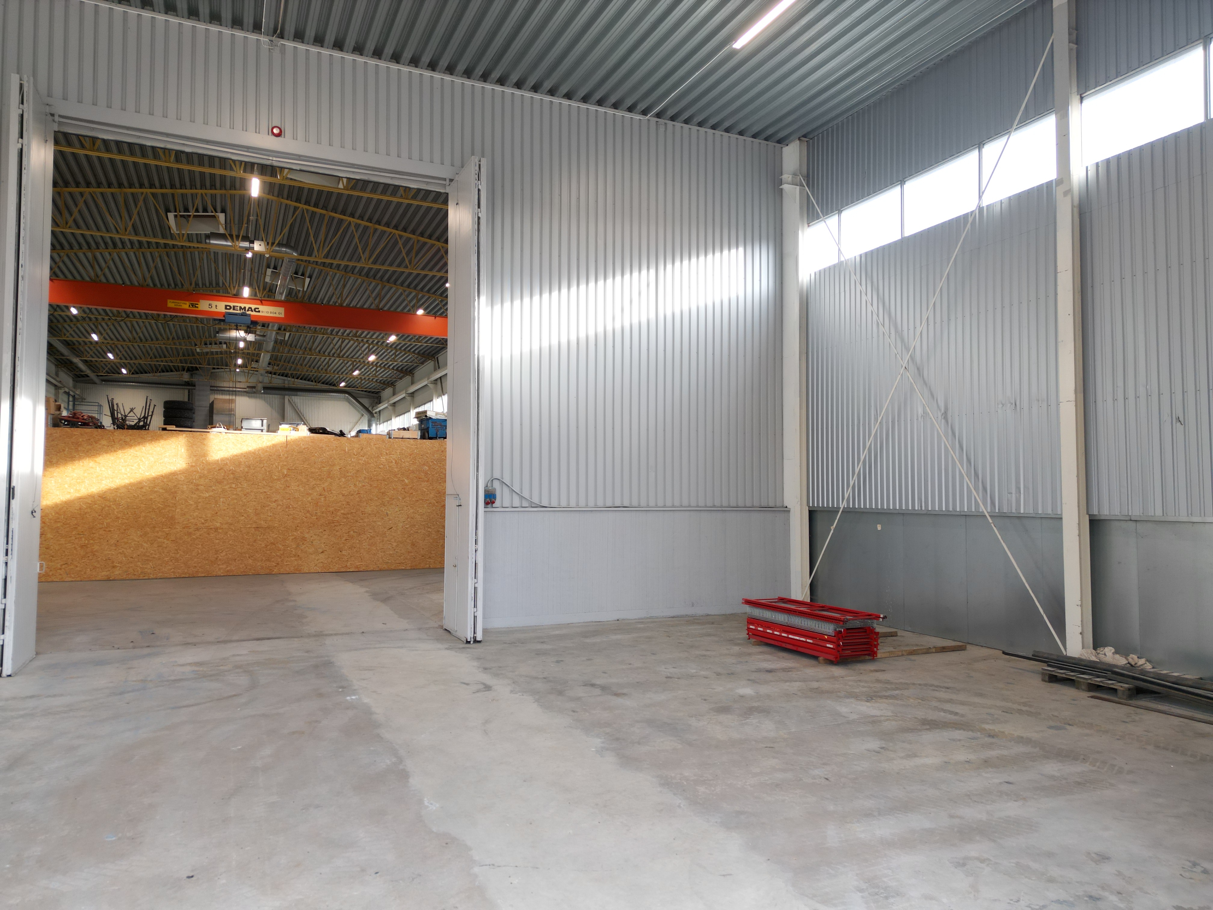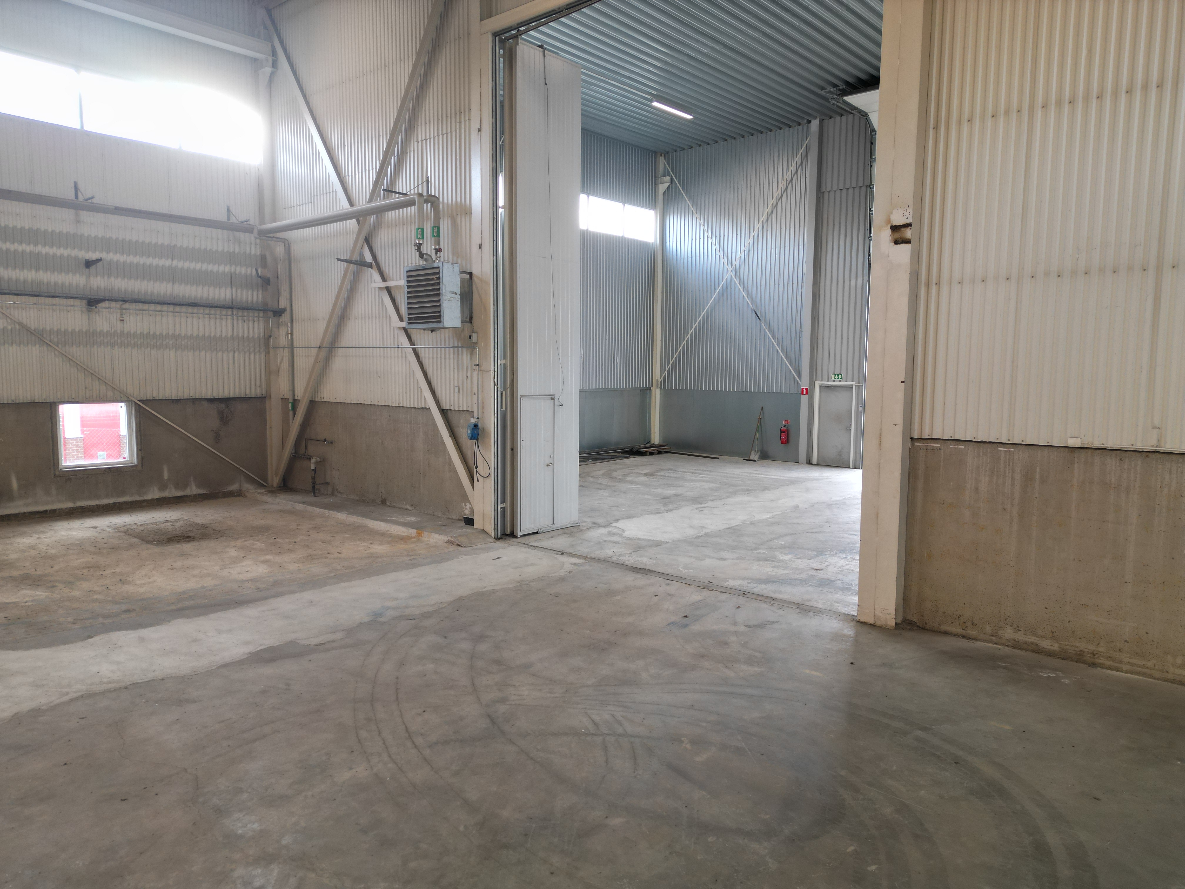 Lagerdelen nås genom en rejäl port med måtten 5 * 5 meter och takhöjden är dryga 8,5 meter. Lokalen är uppdelad i två enheter som länkas samman av en inre port med måtten 5 * 5 meter. Lagerdelen mäter ca 380 kvm.