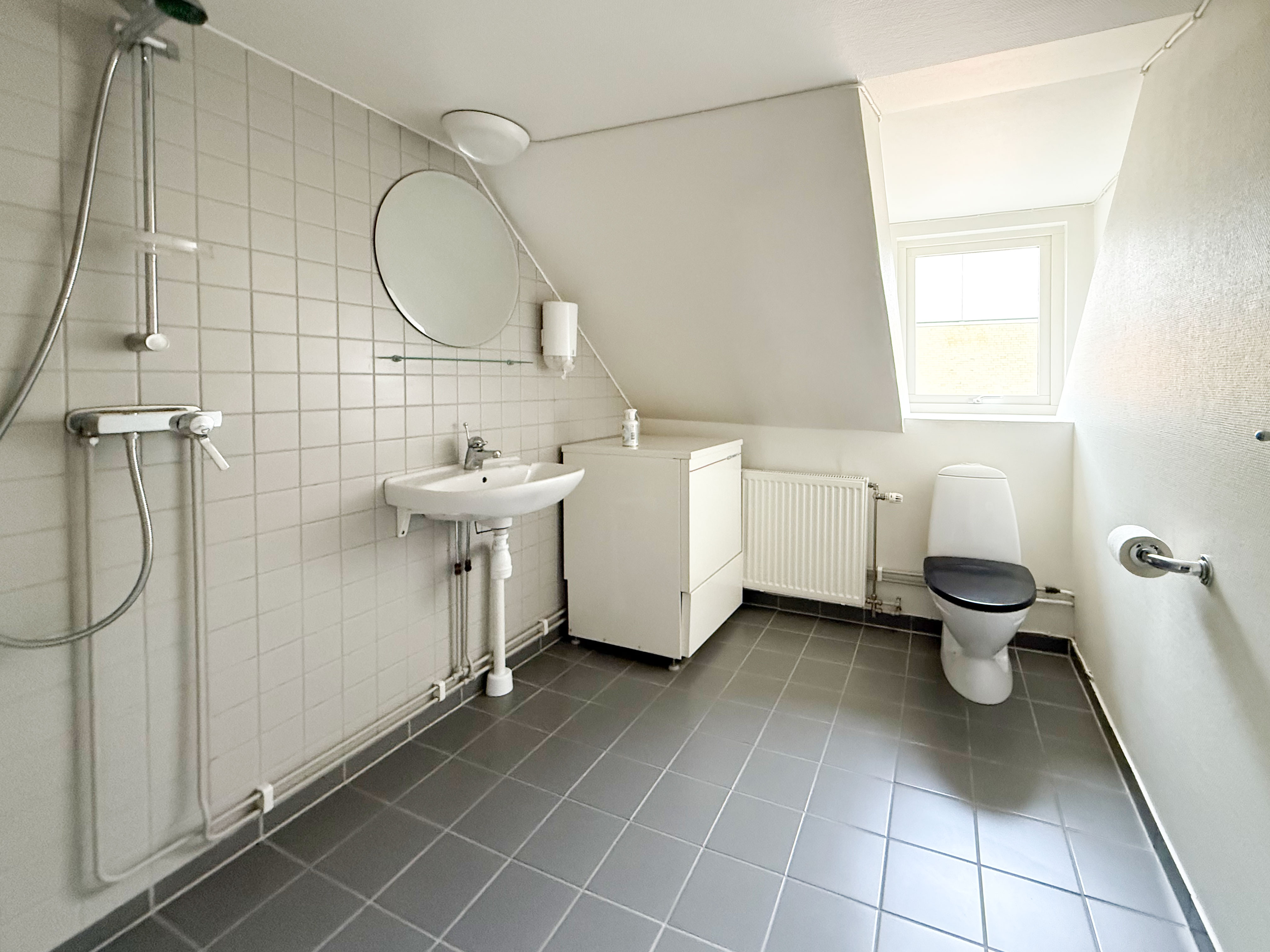 Modernt kontor i äldre miljö för det mindre företaget. Här finns den rätta känslan med takbjälkar och original-stengolv samtidigt som lokalen är utrustad med modern teknik och kyld ventilation. 5 enskilda kontorsrum, pentry/paus, WC med dusch, förrådsutrymme.
