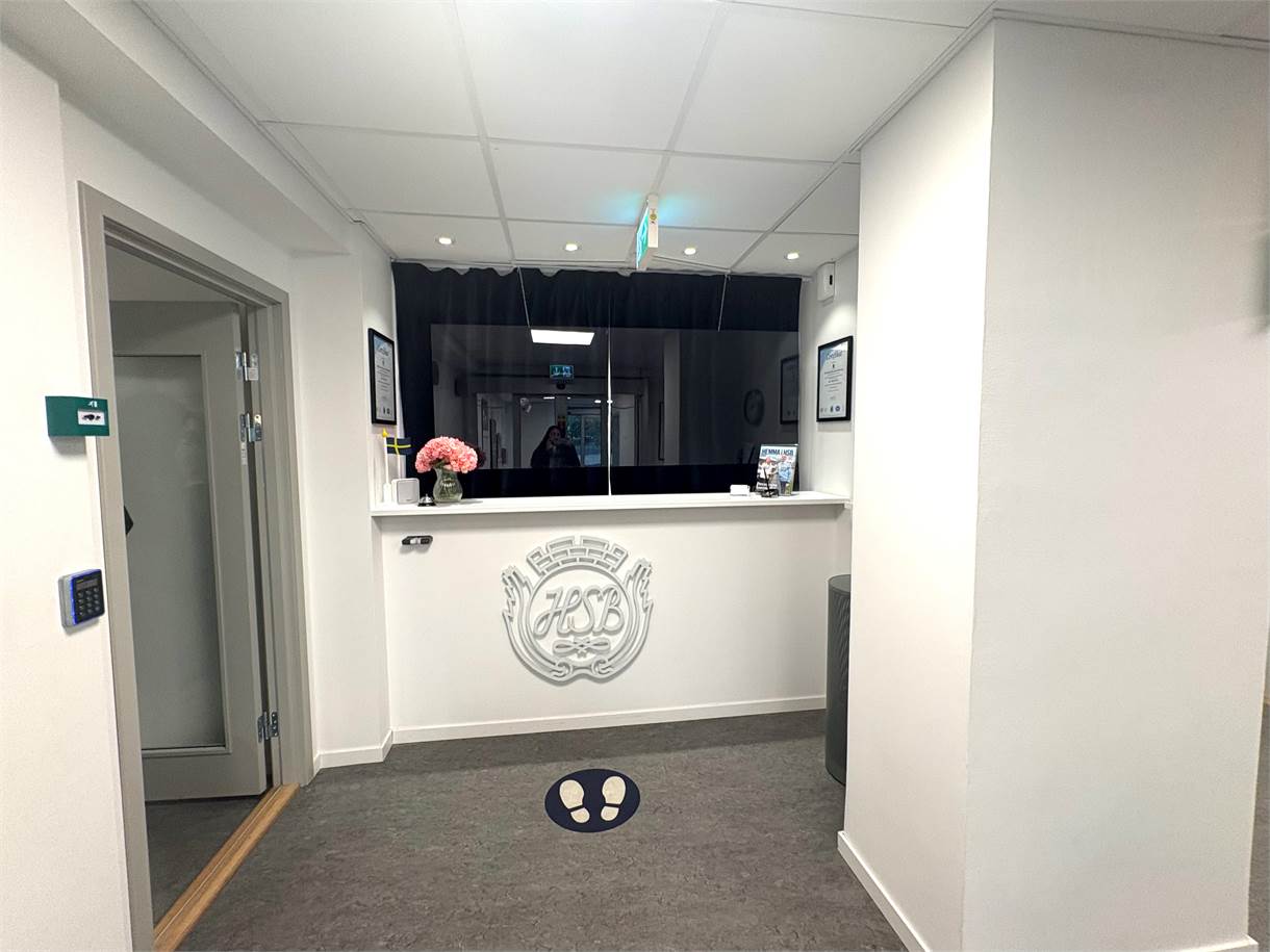 Reception med plats för välkomnande entré