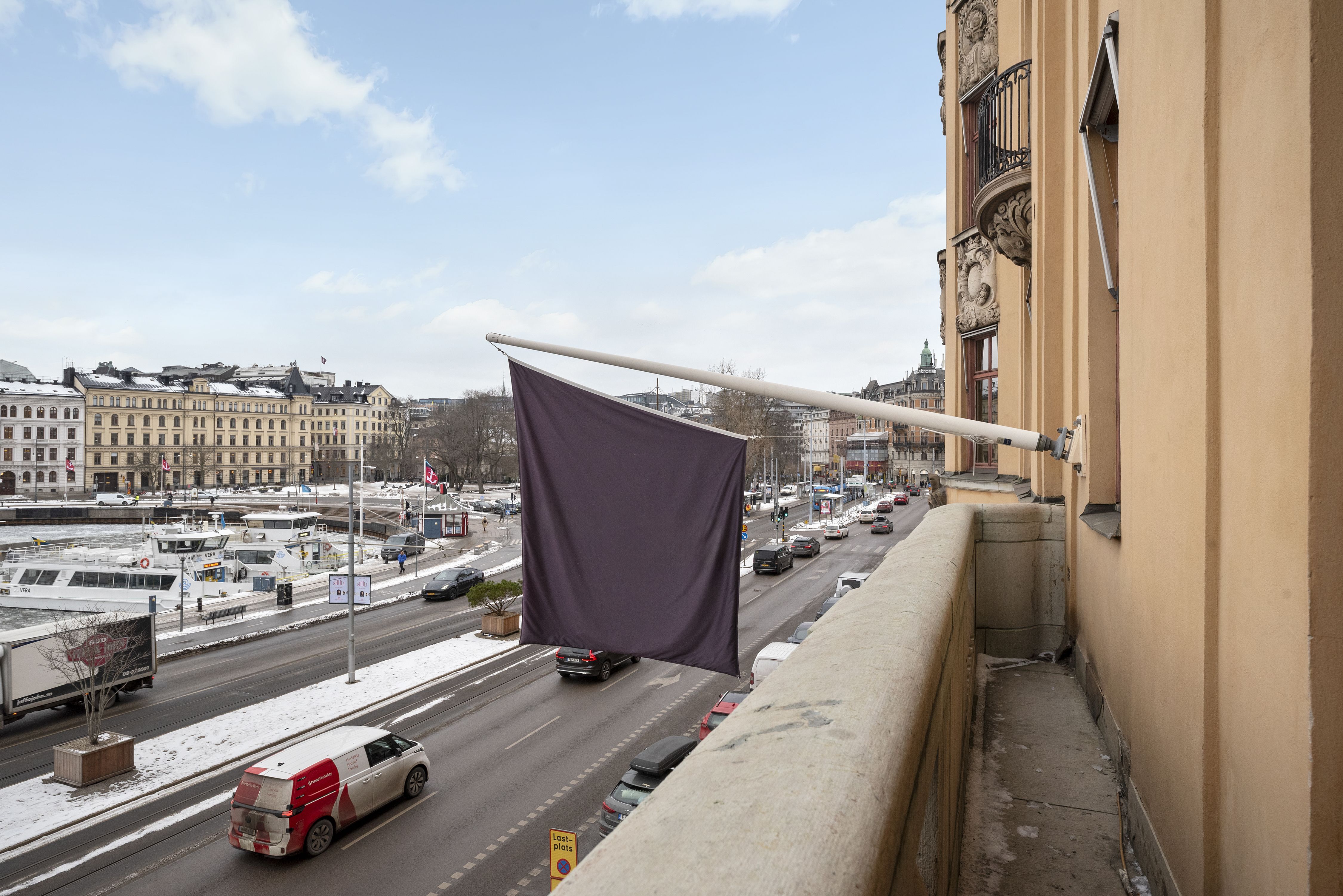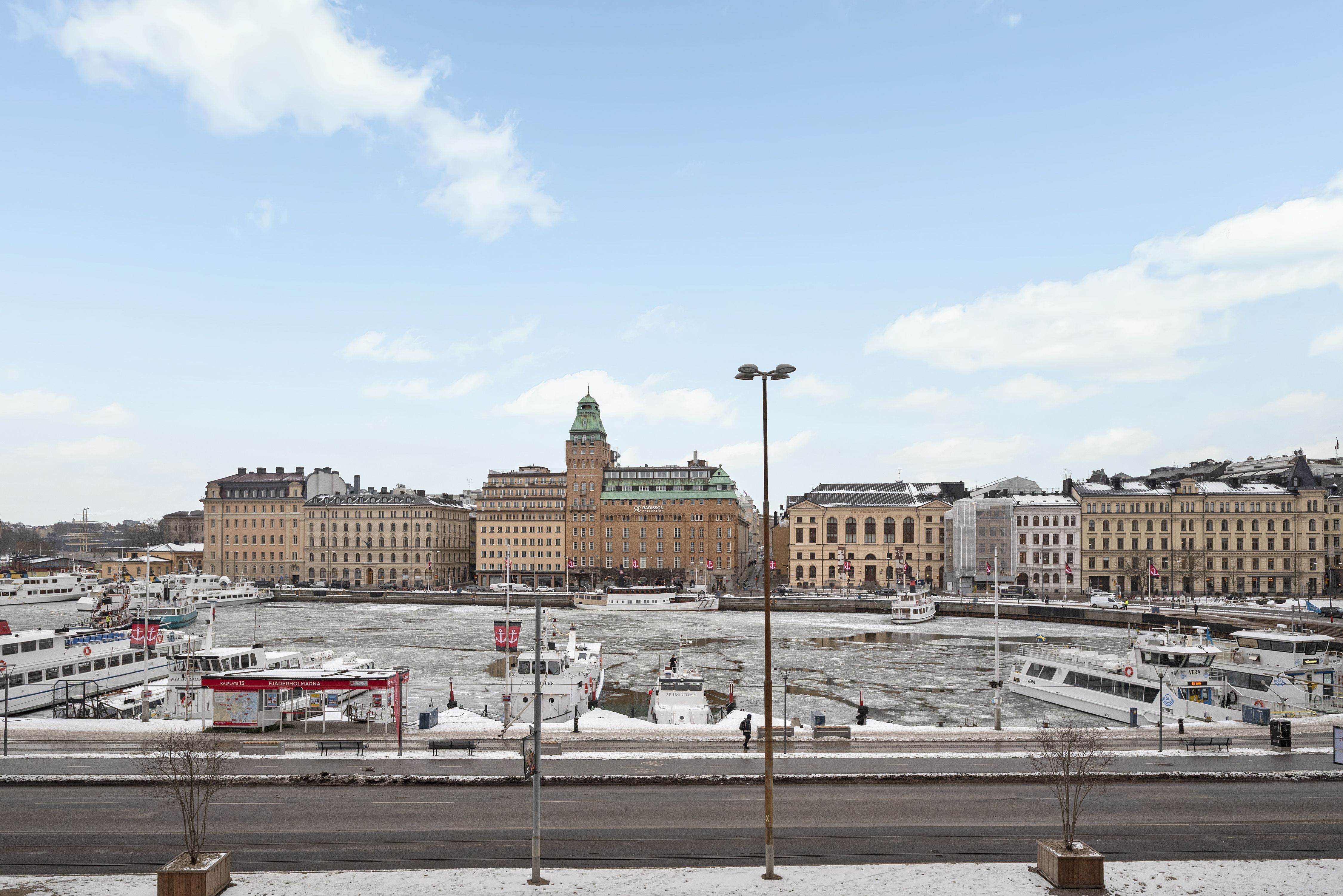 • Panoramautsikt över Nybroviken och egen kungsbalkong mot Strandvägen.
