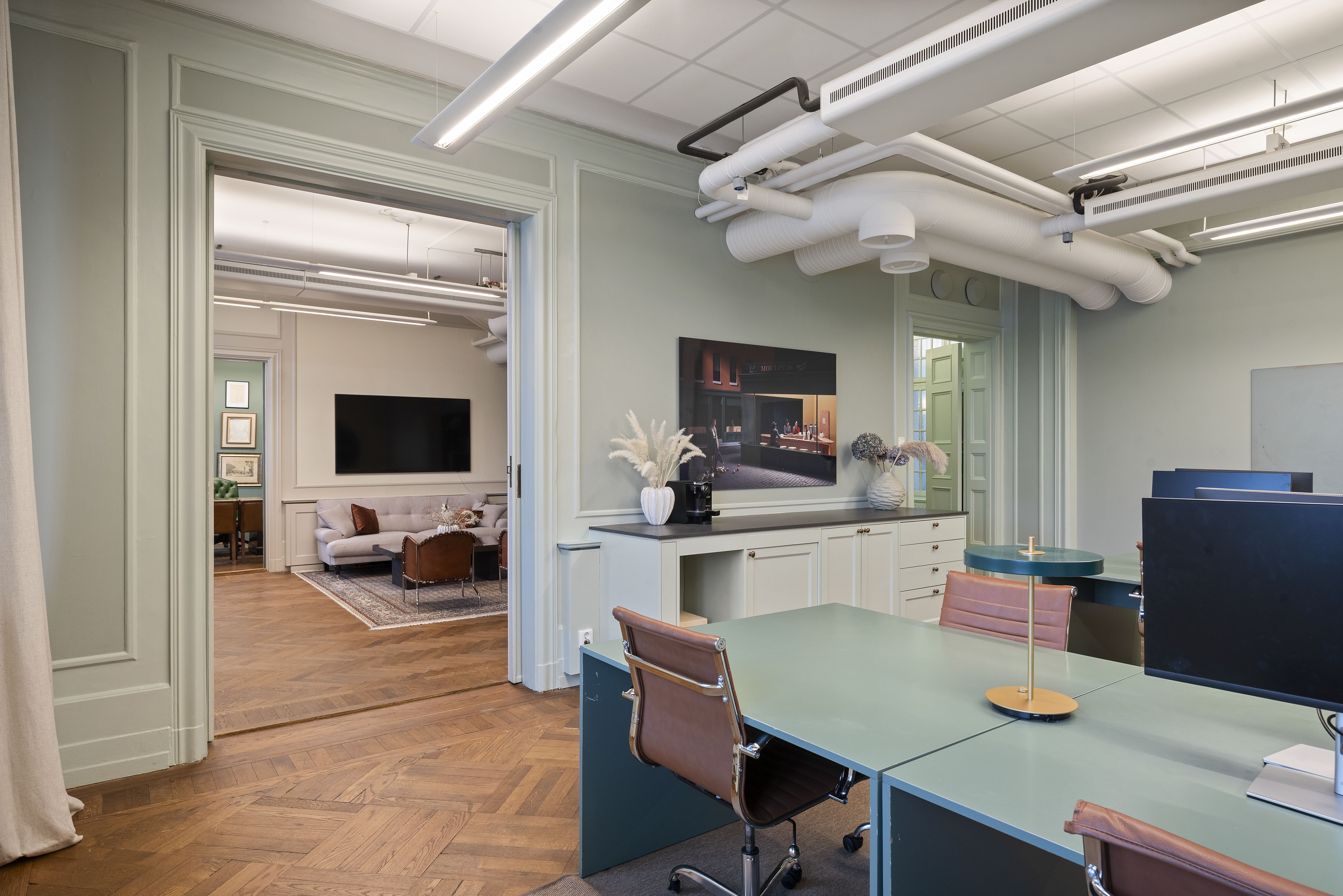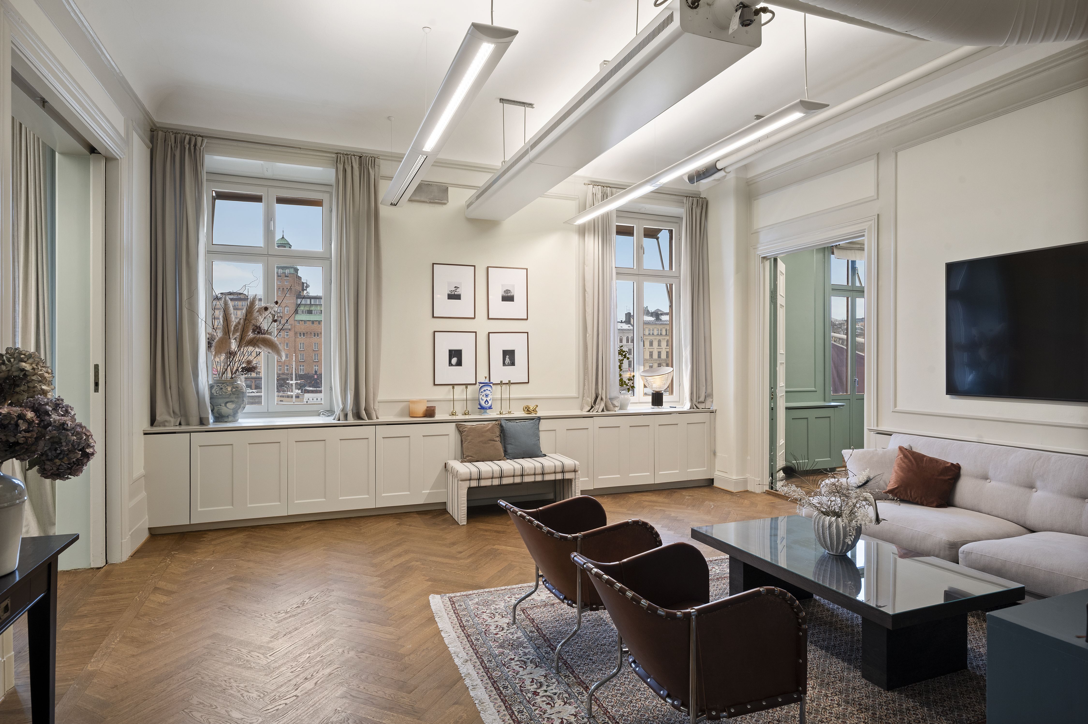 Lokalen genomgick en genomgripande och stilren renovering under 2022. Utöver den effektiva planeringen erbjuder lokalen exklusiva mervärden såsom en kungsbalkong för pauser med utsikt, samt rätten till egen flagga på fasaden – en detalj som markerar närvaro på stadens mest välkända paradgata.