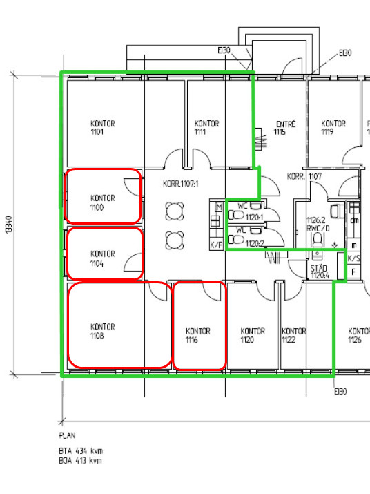 1-4 kontorsrum uthyres. Pentry, fikarum och toaletter finns i anslutning till kontor. Gratis parkering. 1615 - 3230:-/månad
