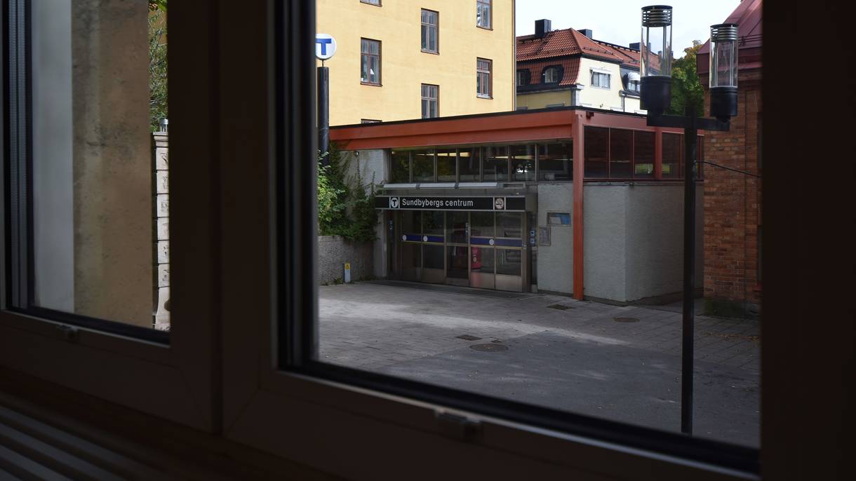 Entré till T-bana precis vid huset bredvid, pendeltåg Sundbybergs Station
