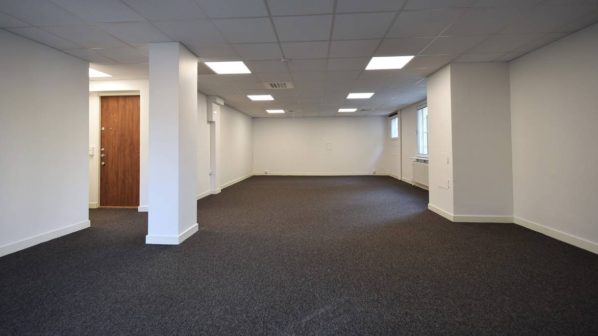 Lokal i öppen planlösning med entré från trapphus D, öppet kontor samt utrymme med stor yta intill pentrydel där plats finns för mötesrum. WC och dusch finns i lokalen.