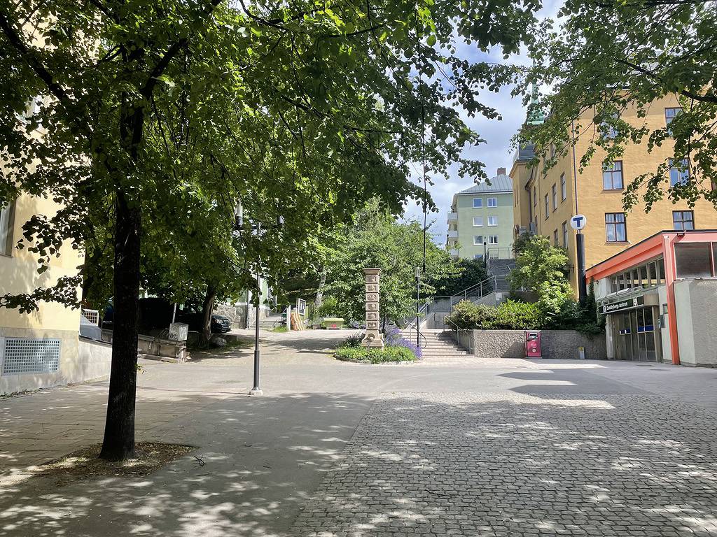 Mitt i Sundbyberg på Sturegatan 20, vägg i vägg med T-baneuppgången.