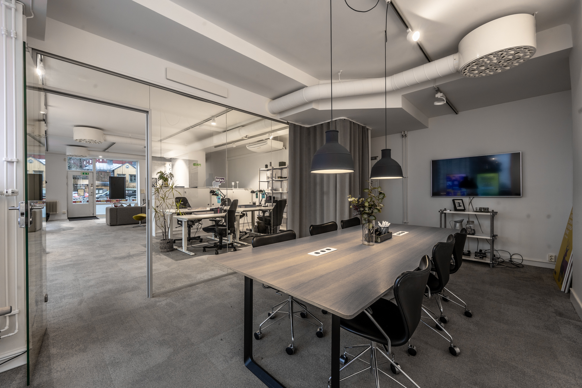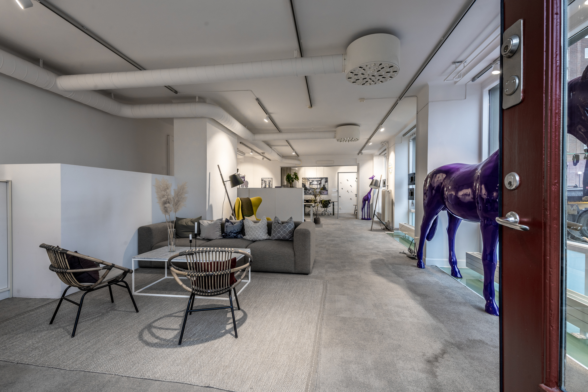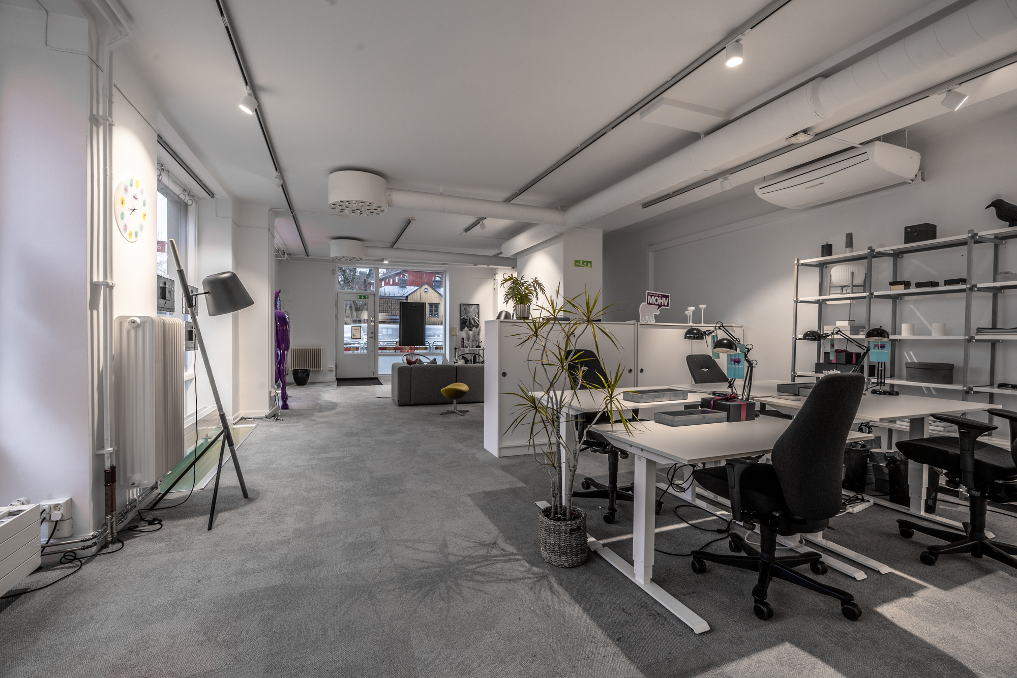 Här finns öppna ytor som passar perfekt för kontor, butik eller showroom, samt praktiska funktioner som badrum och förråd. Ett fullt utrustat kök med diskmaskin, mikrovågsugn, kaffemaskin och diskho gör det enkelt att ha personalmöten eller paus. Matplatsen med bord och flera stolar ger ytterligare komfort och funktionalitet. Detta är en lokal som kombinerar synlighet, flexibilitet och funktion – perfekt för dig som vill etablera eller utveckla din verksamhet i en attraktiv miljö.