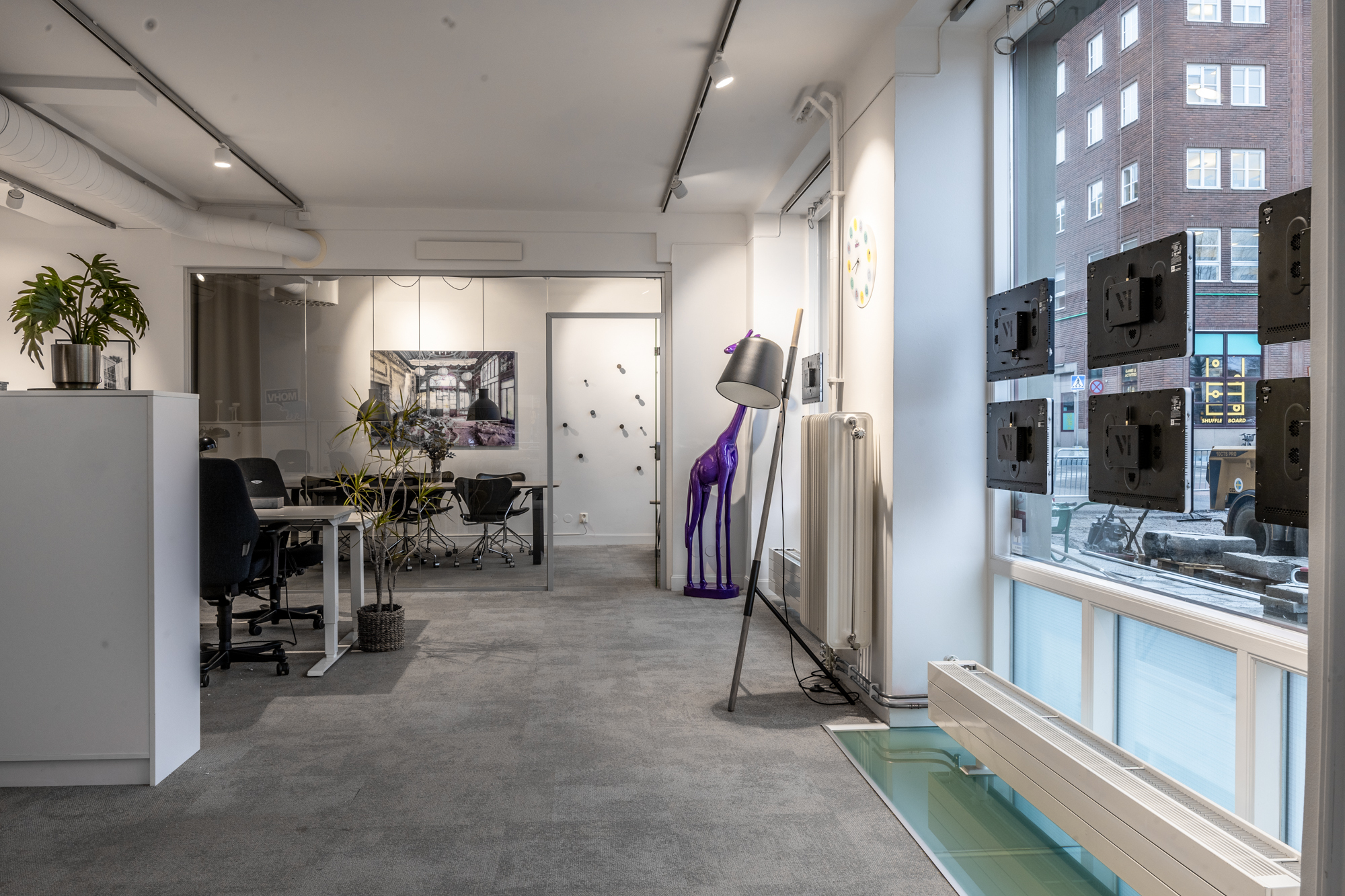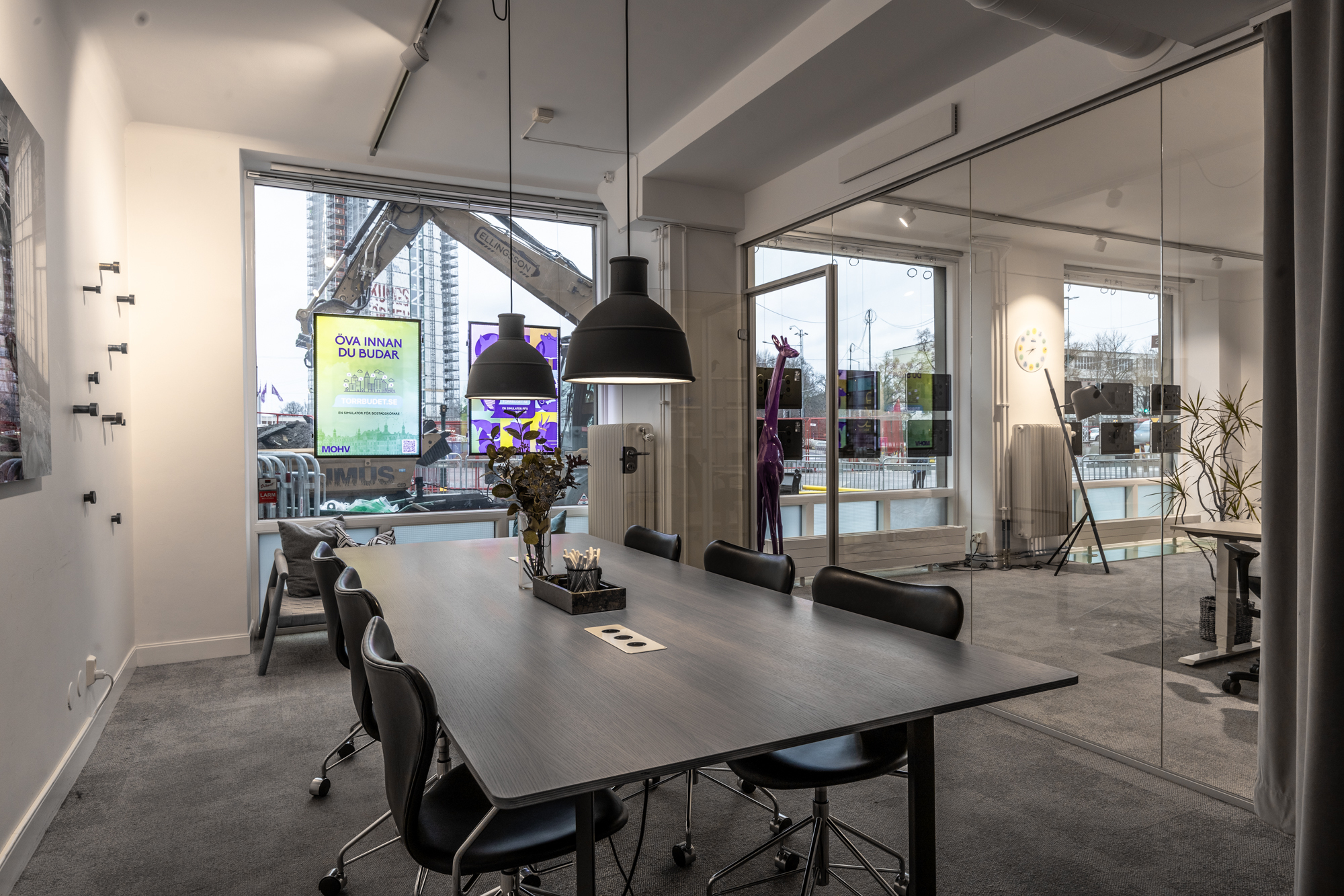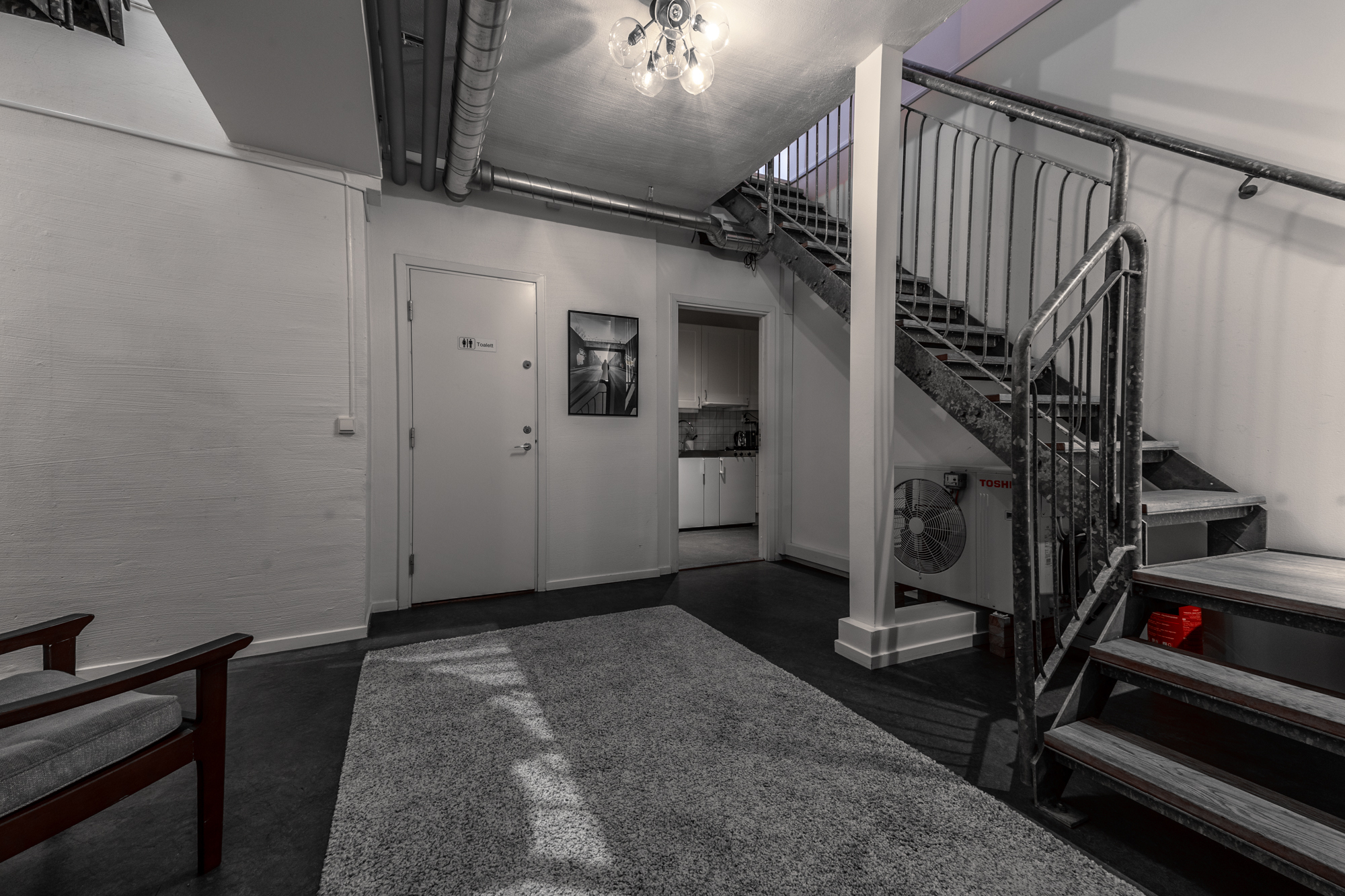 Här finns öppna ytor som passar perfekt för kontor, butik eller showroom, samt praktiska funktioner som badrum och förråd. Ett fullt utrustat kök med diskmaskin, mikrovågsugn, kaffemaskin och diskho gör det enkelt att ha personalmöten eller paus. Matplatsen med bord och flera stolar ger ytterligare komfort och funktionalitet. Detta är en lokal som kombinerar synlighet, flexibilitet och funktion – perfekt för dig som vill etablera eller utveckla din verksamhet i en attraktiv miljö.