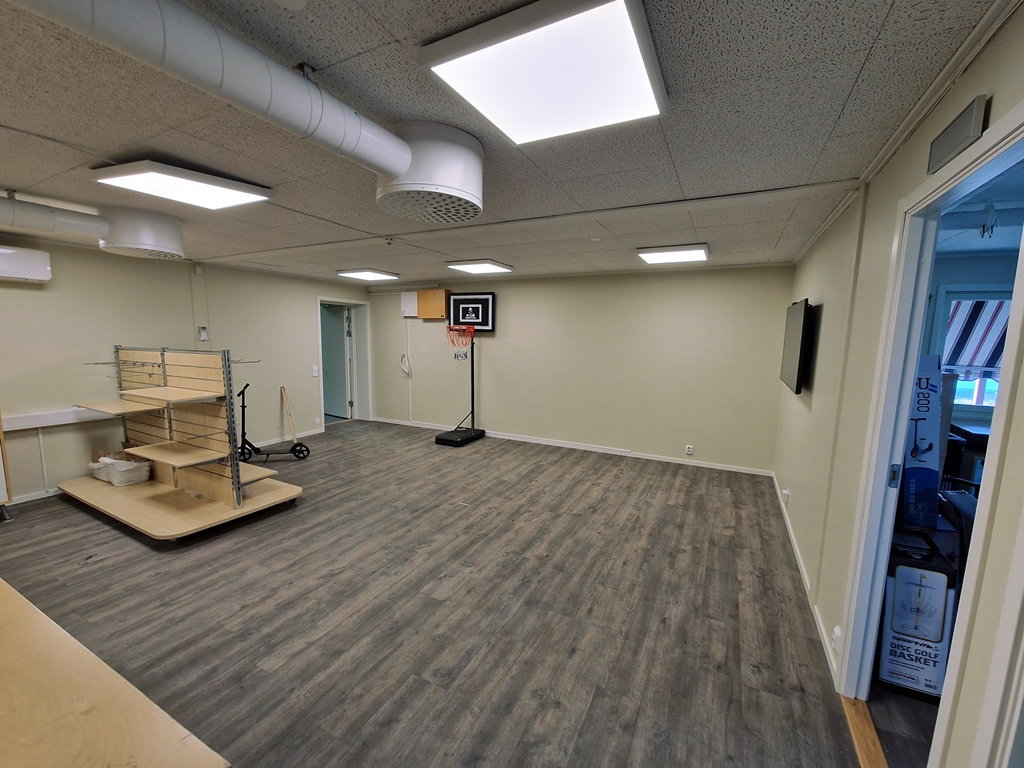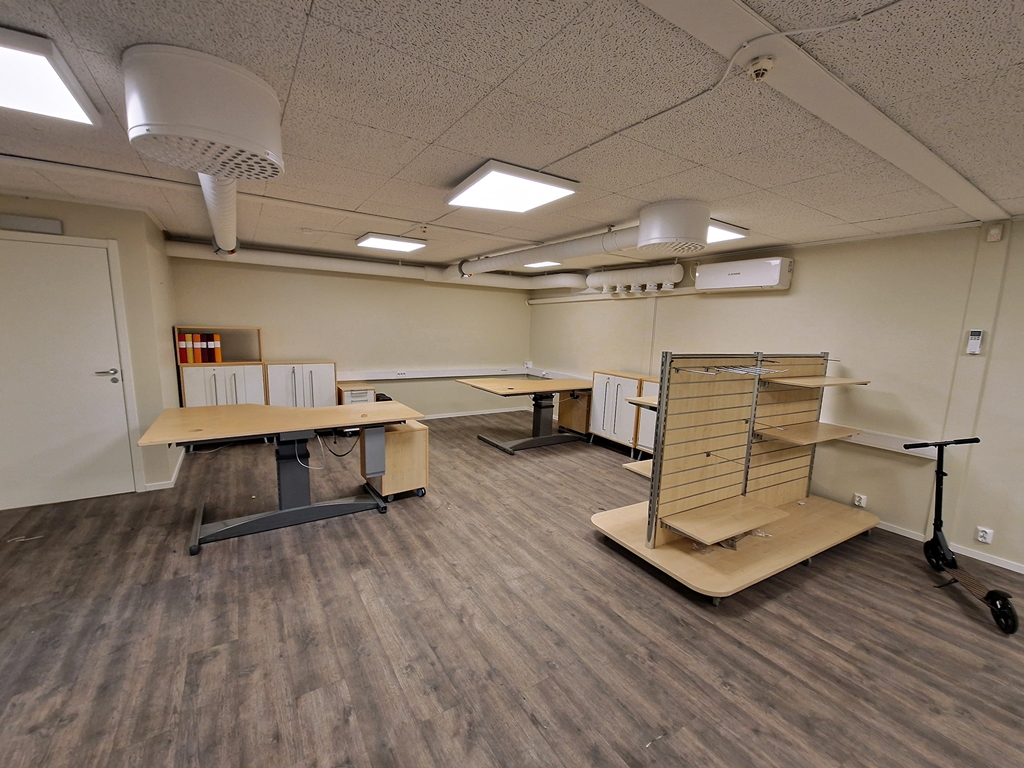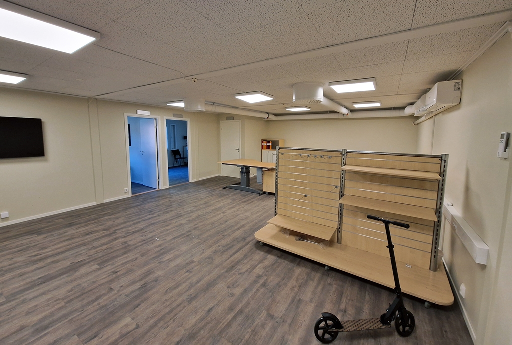 Utöver lagerytorna så har lokalen även kontors- och personalytor om sammanlagt ca 176 kvm, som fördelar sig över två våningsplan. Kontorsytorna är i mycket gott skick och utgörs av bl.a. tre kontorsrum, konferensrum, förråd, kök med pausyta, städskrubb, 3 st wc, omklädningsrum med dusch.